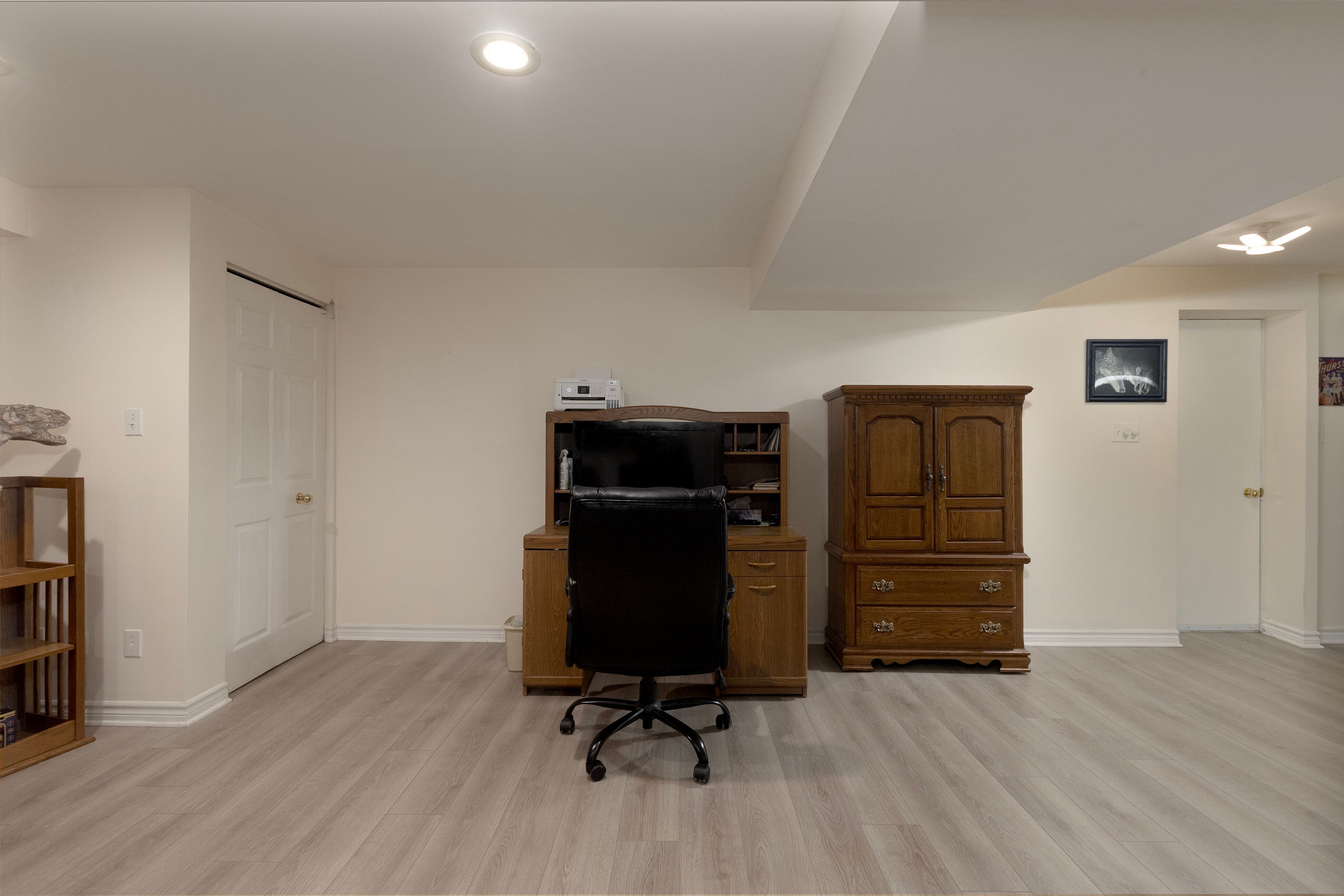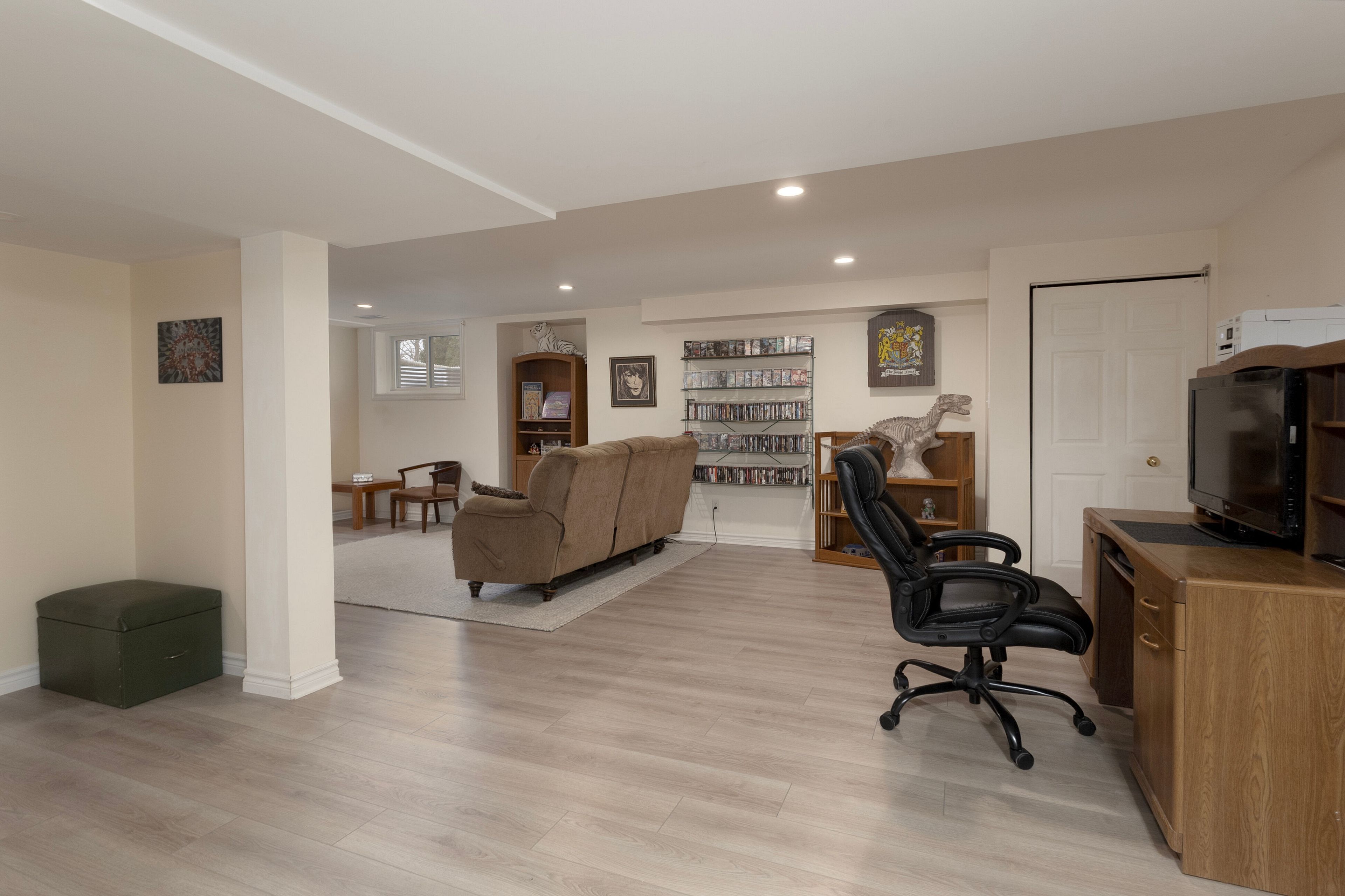 • Finished basement offers recreational space, extra bedroom, and office area.