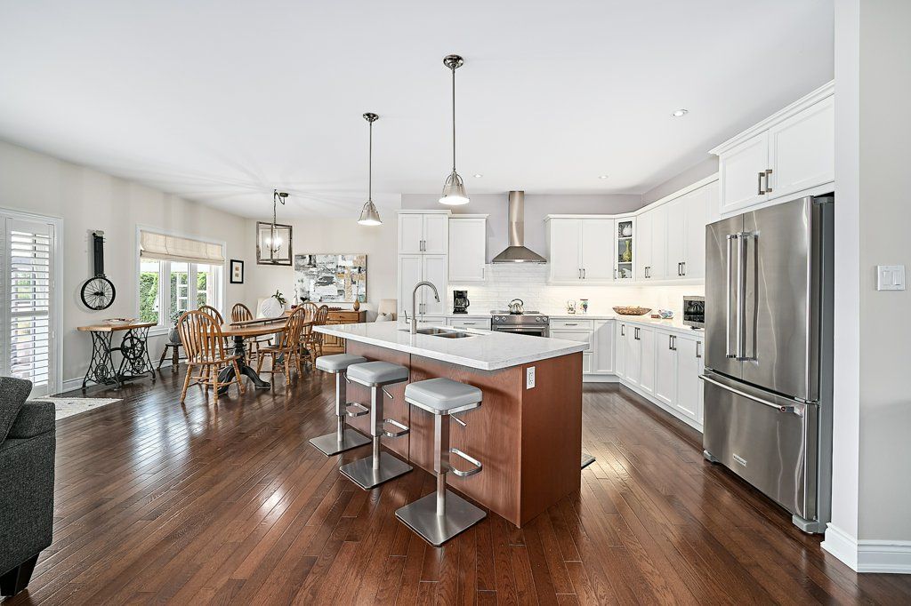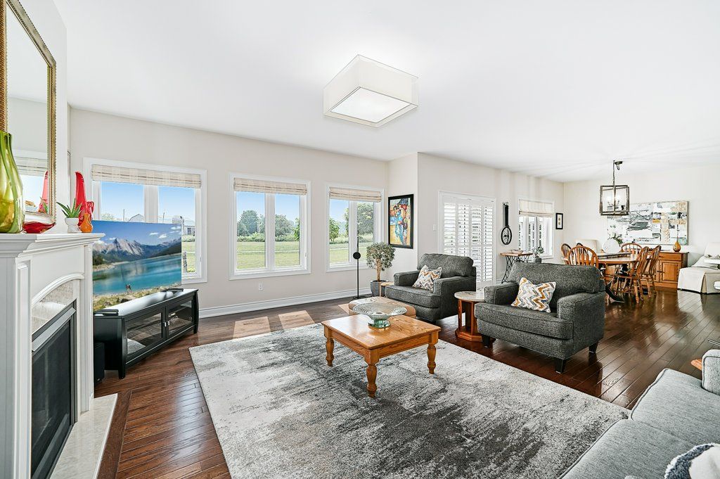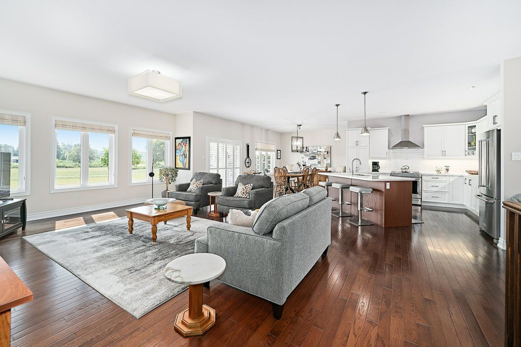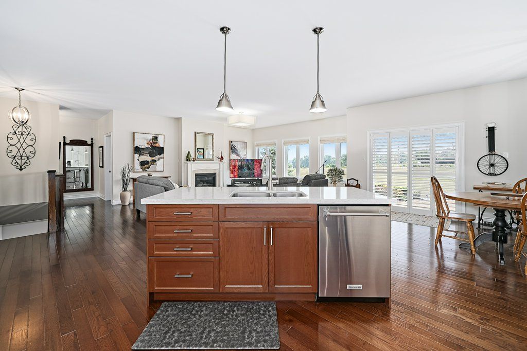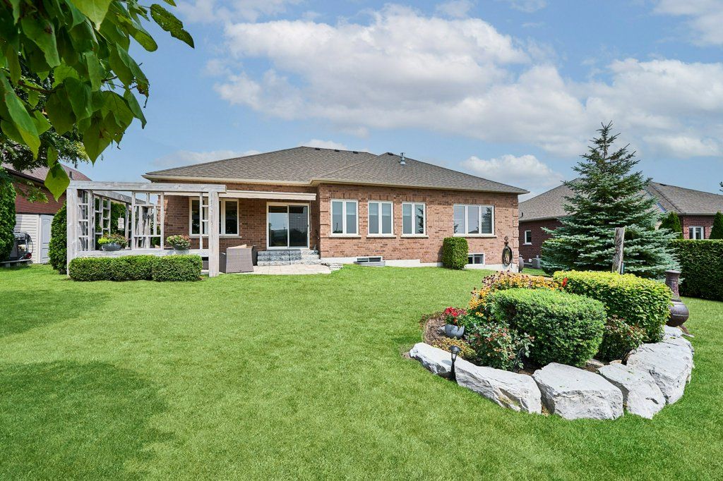 Graceful living, your time has arrived. Step inside and welcome to one of kings bay's finest homes and only 15 mins to port perry. This 1986 sq ft custom, 1 owner 3 bedroom all brick bungalow features modern 9 ft flat ceilings with led lighting and spotless hardwood flooring throughout! A beautiful primary retreat complete with a lavish 5 pce ensuite with double glass shower and soaker tub plus a walk-thru dressing room for quiet comfort. 2 further spacious bedrooms offer double closets and bright picture windows. The classic open plan boasts views of the water from the large dining and great room windows and kitchen. Sliding doors access the western exposure stone patio with pergola and retractable awning for sun shade and bbq's ... Its the sunset spot ! A custom backsplash and under cabinet lighting enhance the quartz countertops and breakfast island in the ample kitchen. A pantry and custom cabinetry plus a full compliment of quality stainless appliances and fume hood will please any chef in the family ... Cook whilst you entertain ! A cozy gas fireplace in a custom hearth anchors this space. The convenient laundry room provides access to the garage directly, which is equipped w/dual liftmaster openers for easy indoor parking. The oak staircase leads you to the lower level for recreating and relaxing in style ! Features include more hardwood flooring over dricore and more led lighting, built-in speakers, another napoleon gas fireplace w/thermo-remote and look-out windows, making this a wonderful warm and bright area of the home . The custom 3pce bath with glass walled double shower is sure to please after a work-out in the exercise area. Nestled in between lake scugog and the nonquon river, this enclave in seagrave enjoys country living with urban amenities. Only 8 minutes north of the town of port perry, and port perry hospital and only 40 mins from whitby. Please visit the virtual tour don't wait to explore this opportunity.