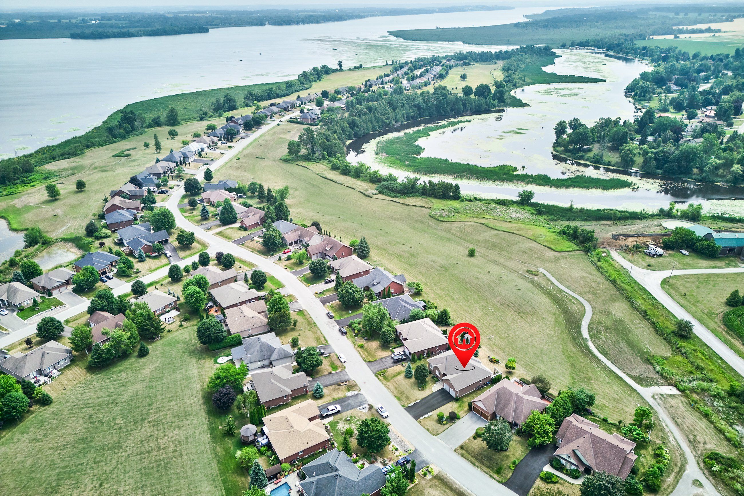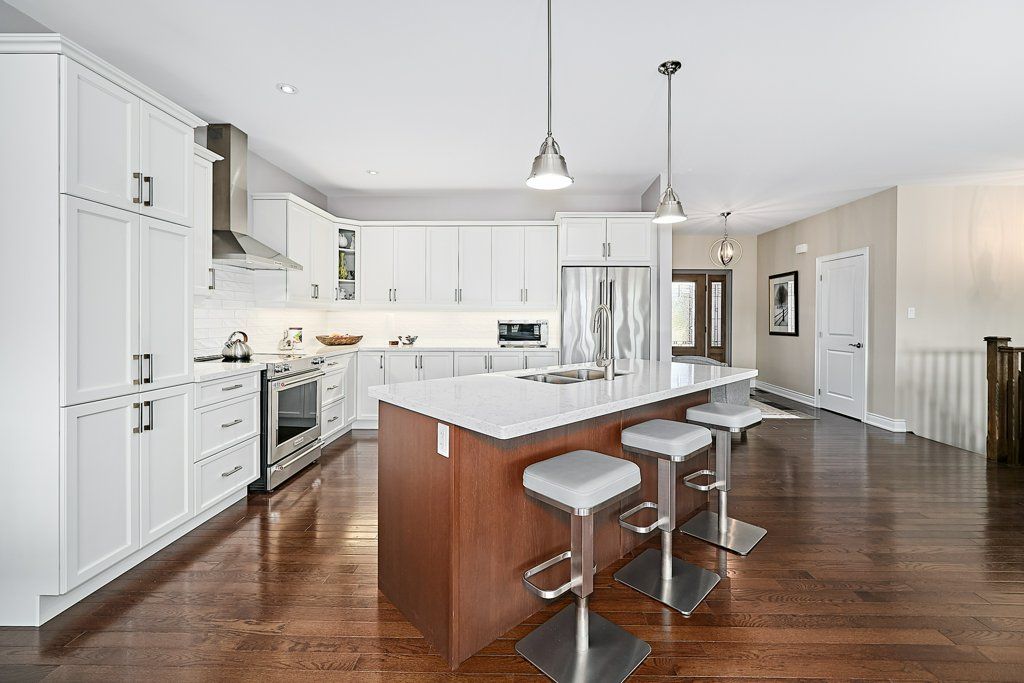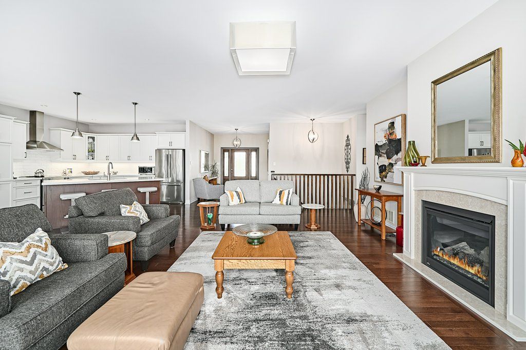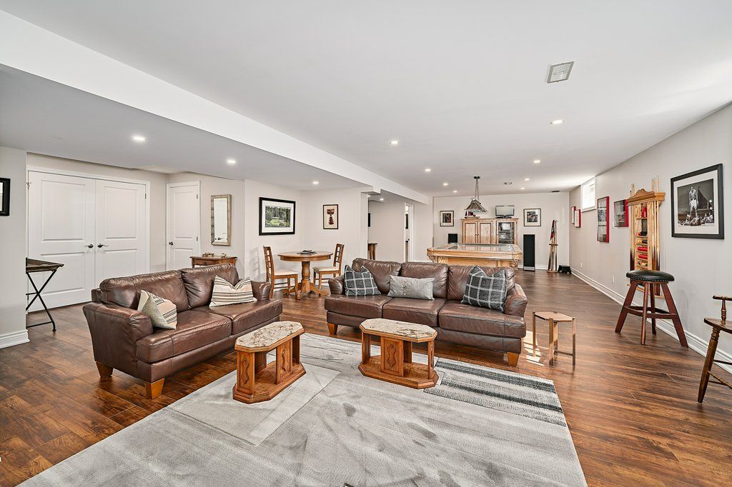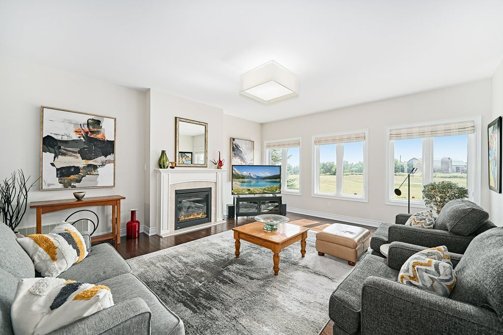 Graceful living, your time has arrived. Step inside and welcome to one of kings bay's finest homes and only 15 mins to port perry. This 1986 sq ft custom, 1 owner 3 bedroom all brick bungalow features modern 9 ft flat ceilings with led lighting and spotless hardwood flooring throughout! A beautiful primary retreat complete with a lavish 5 pce ensuite with double glass shower and soaker tub plus a walk-thru dressing room for quiet comfort. 2 further spacious bedrooms offer double closets and bright picture windows. The classic open plan boasts views of the water from the large dining and great room windows and kitchen. Sliding doors access the western exposure stone patio with pergola and retractable awning for sun shade and bbq's ... Its the sunset spot ! A custom backsplash and under cabinet lighting enhance the quartz countertops and breakfast island in the ample kitchen. A pantry and custom cabinetry plus a full compliment of quality stainless appliances and fume hood will please any chef in the family ... Cook whilst you entertain ! A cozy gas fireplace in a custom hearth anchors this space. The convenient laundry room provides access to the garage directly, which is equipped w/dual liftmaster openers for easy indoor parking. The oak staircase leads you to the lower level for recreating and relaxing in style ! Features include more hardwood flooring over dricore and more led lighting, built-in speakers, another napoleon gas fireplace w/thermo-remote and look-out windows, making this a wonderful warm and bright area of the home . The custom 3pce bath with glass walled double shower is sure to please after a work-out in the exercise area. Nestled in between lake scugog and the nonquon river, this enclave in seagrave enjoys country living with urban amenities. Only 8 minutes north of the town of port perry, and port perry hospital and only 40 mins from whitby. Please visit the virtual tour don't wait to explore this opportunity.