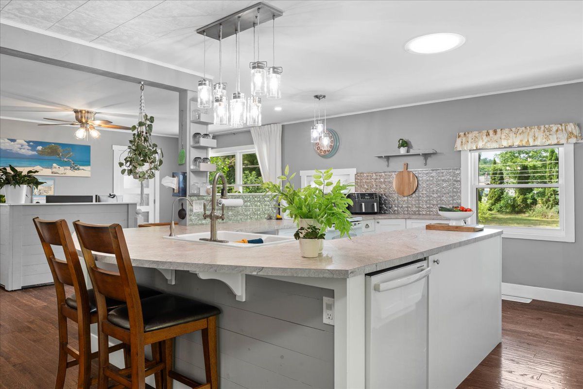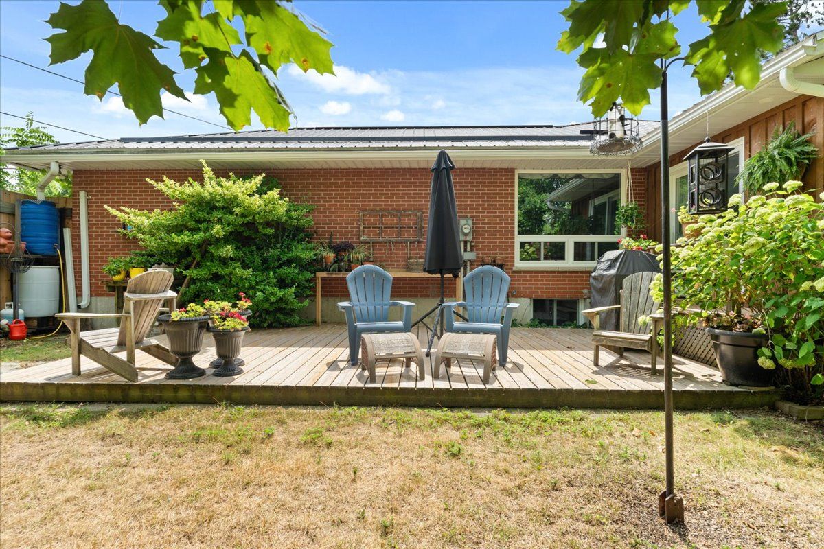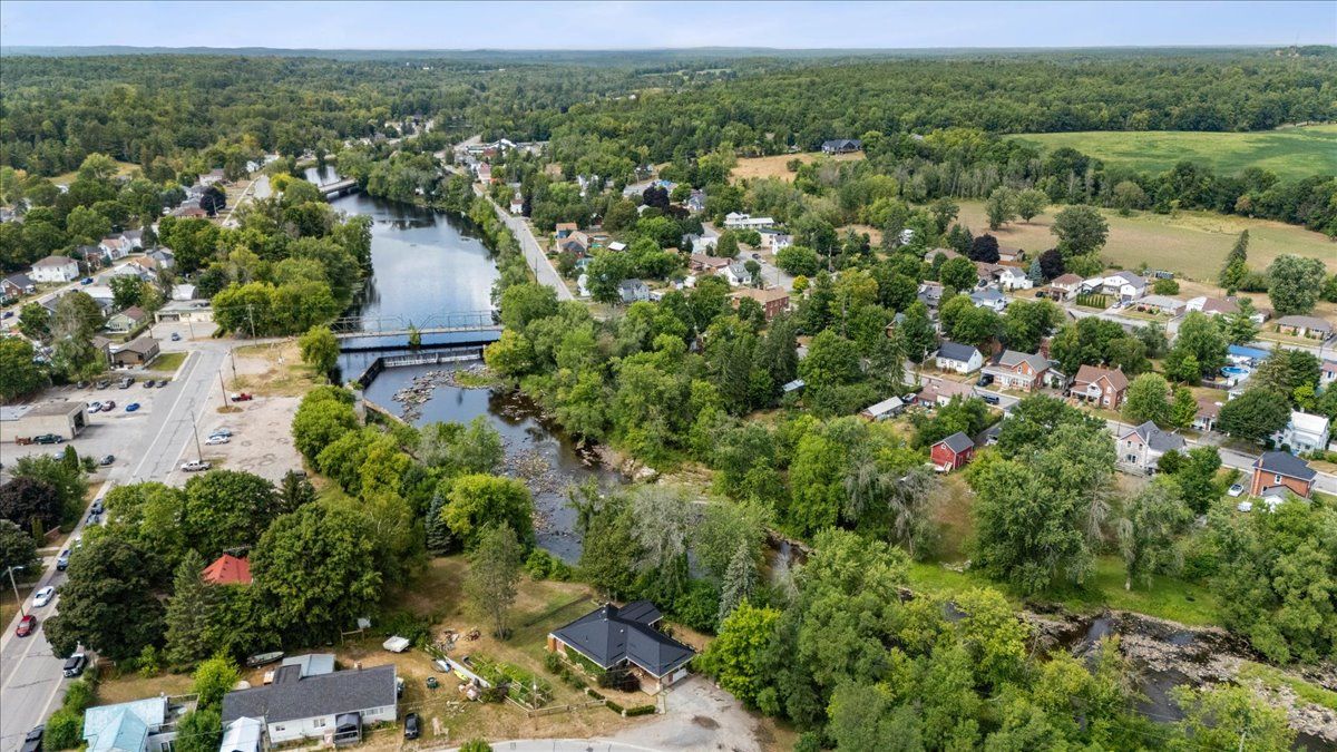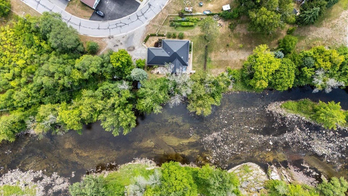 Tucked away on a quiet back street in the lovely village of tweed, this well appointed bungalow offers a rare opportunity for privacy, charm and riverfront living. Backing onto the moira river, the property features an attached garage and a four season sunroom with a cozy natural gas fireplace, perfect for enjoying the view year round. Patio doors open to a private courtyard overlooking the water creating an ideal spot for morning coffee or evening relaxation. The backyard is a true extension of the home with ample space for gardening in the raised beds, hosting summer gatherings or enjoying a game of lawn darts with friends. Inside, the main floor offers an open concept living and dining area with a flexible layout, a main floor bedroom, a 3 piece bathroom and laundry. Numerous updates enhance comfort and efficiency including hot water on demand, a metal roof (2017), updated windows and doors (within the last 6 years), and upgraded electrical panel (2025) and owned reverse osmosis and water softener systems (2025). Downstairs the fully finished basement adds impressive living space with three additional bedrooms, a large rec room warmed by a cozy gas stove and a luxurious 3 piece bathroom. This is a home where comfort meets lifestyle offering both the peaceful feel of county living and the convenience of being in town.