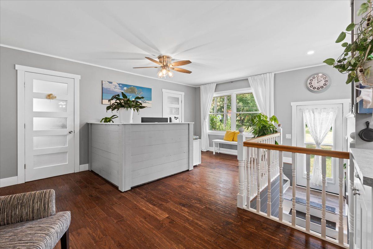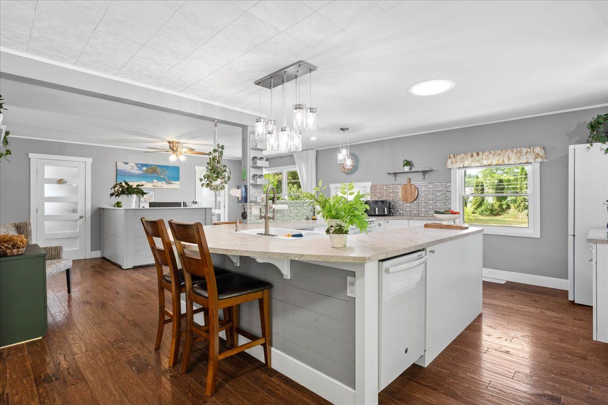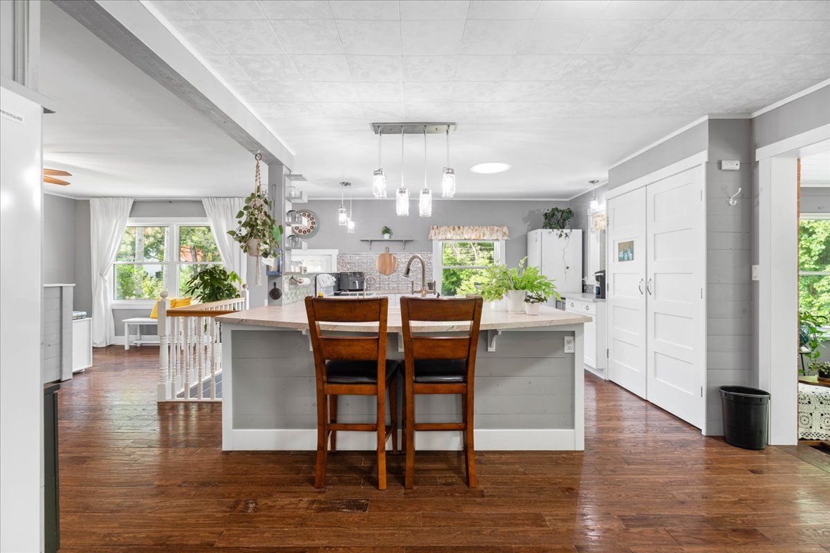Tucked away on a quiet back street in the lovely village of tweed, this well appointed bungalow offers a rare opportunity for privacy, charm and riverfront living. Backing onto the moira river, the property features an attached garage and a four season sunroom with a cozy natural gas fireplace, perfect for enjoying the view year round. Patio doors open to a private courtyard overlooking the water creating an ideal spot for morning coffee or evening relaxation. The backyard is a true extension of the home with ample space for gardening in the raised beds, hosting summer gatherings or enjoying a game of lawn darts with friends. Inside, the main floor offers an open concept living and dining area with a flexible layout, a main floor bedroom, a 3 piece bathroom and laundry. Numerous updates enhance comfort and efficiency including hot water on demand, a metal roof (2017), updated windows and doors (within the last 6 years), and upgraded electrical panel (2025) and owned reverse osmosis and water softener systems (2025). Downstairs the fully finished basement adds impressive living space with three additional bedrooms, a large rec room warmed by a cozy gas stove and a luxurious 3 piece bathroom. This is a home where comfort meets lifestyle offering both the peaceful feel of county living and the convenience of being in town.