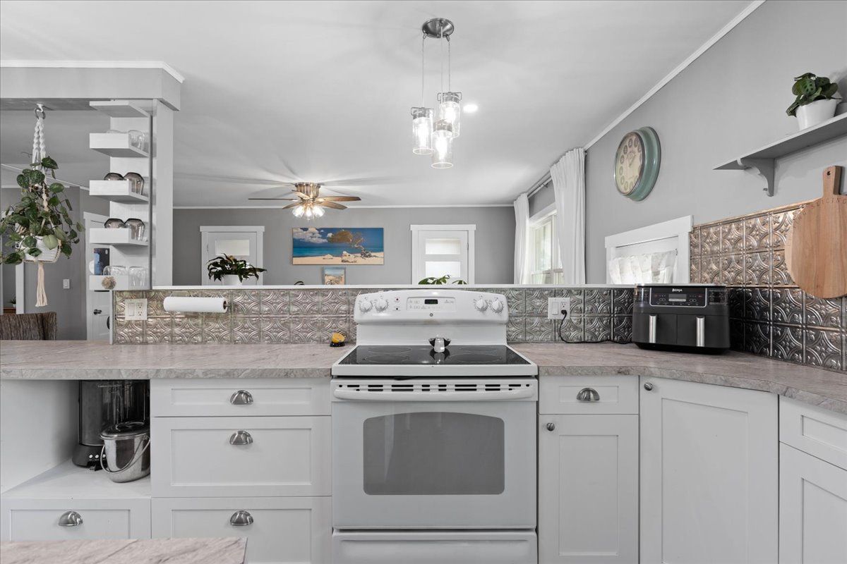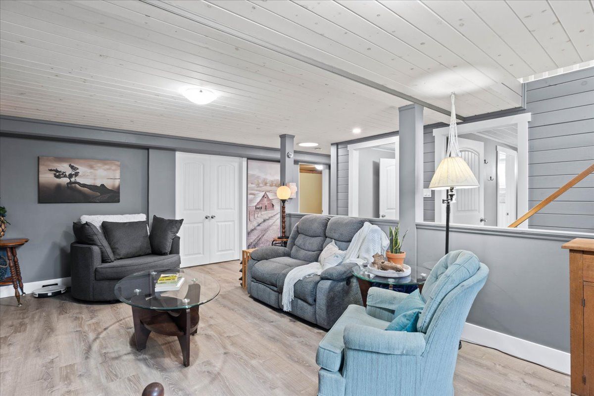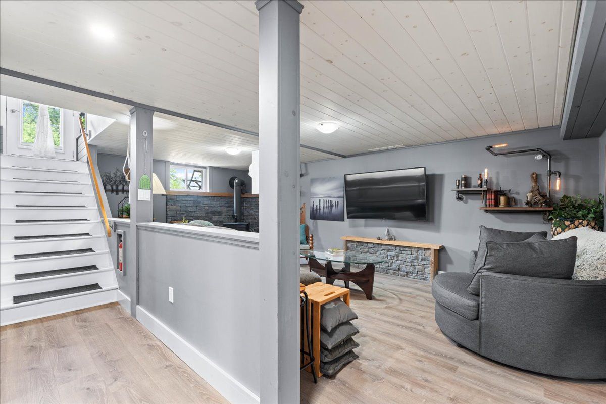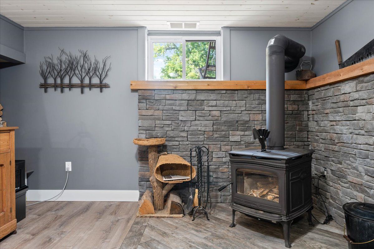 • Fully finished basement with additional bedrooms and rec room featuring a gas stove.