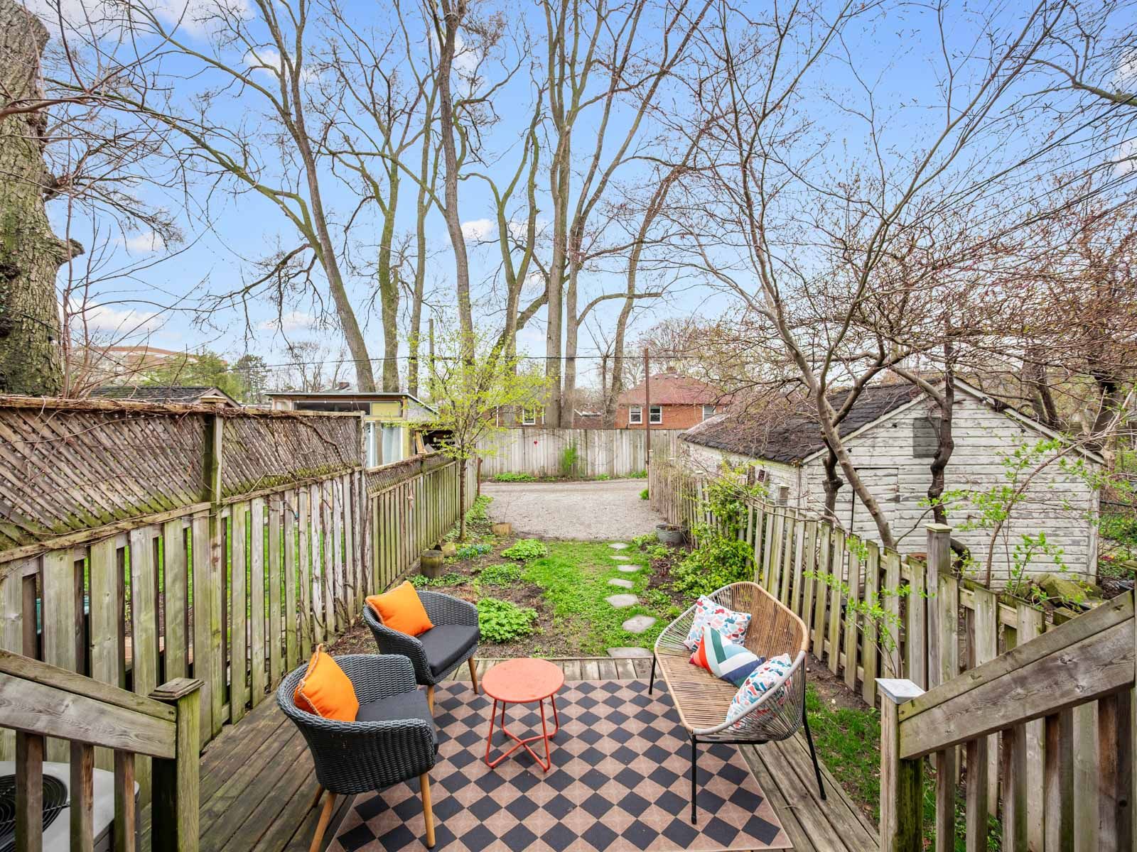 • Private backyard feels like a hidden retreat for outdoor relaxation.
