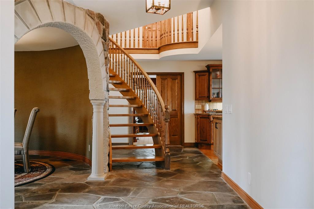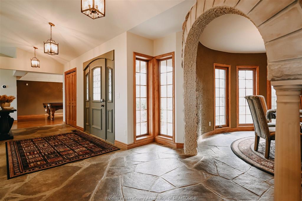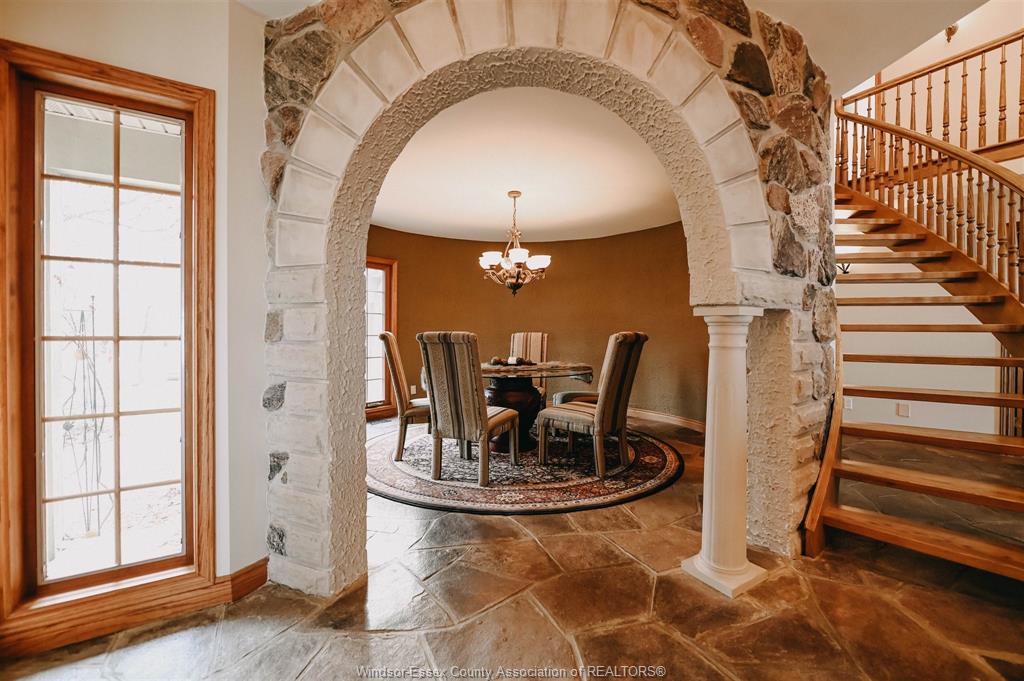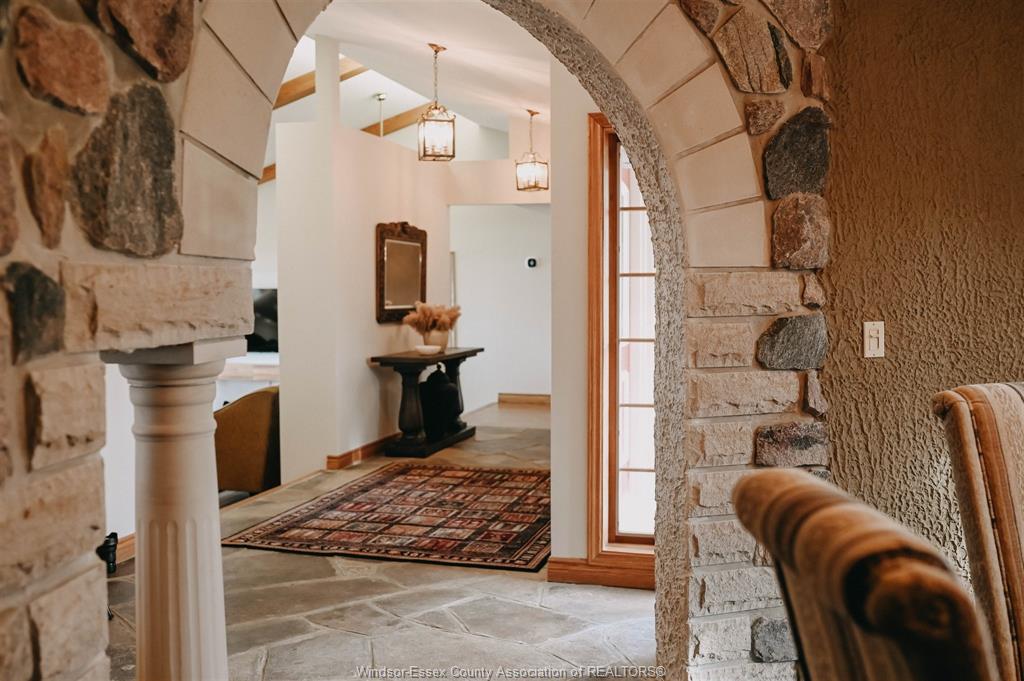 This enchanting 5 bedroom, 3. 5 bath custom-built home rests on 100 foot waterfront lot on the shores of lake st. Clair, wrapped by peaceful grounds with mature trees. Extending 3637 square feet this gem features 2 main floor bedrooms, primary with ensuite and walk-in-closet, intimate dining room, breakfast nook, kitchen with wet bar and wood-burning fireplace. Architectural details define the space with natural stone floors, dramatic beams, italian oak staircase, turret bedroom, wrought-iron gates and big windows throughout showcasing lake & sunset views. Nestled on an executive dead-end street, less than 5 minutes from marinas and golf course and woodlands ’ruscom river conservation area’ at your front door. This home is great for enjoying nature, seclusion, and entertaining. Truly one-of-a-kind! Reach out to listing agent for updates and inclusions.