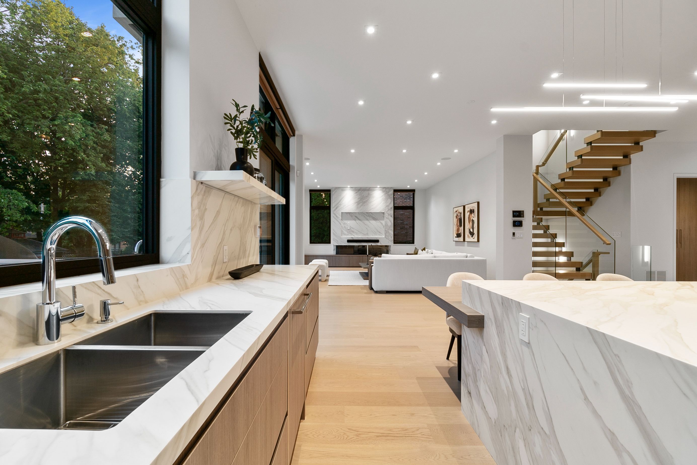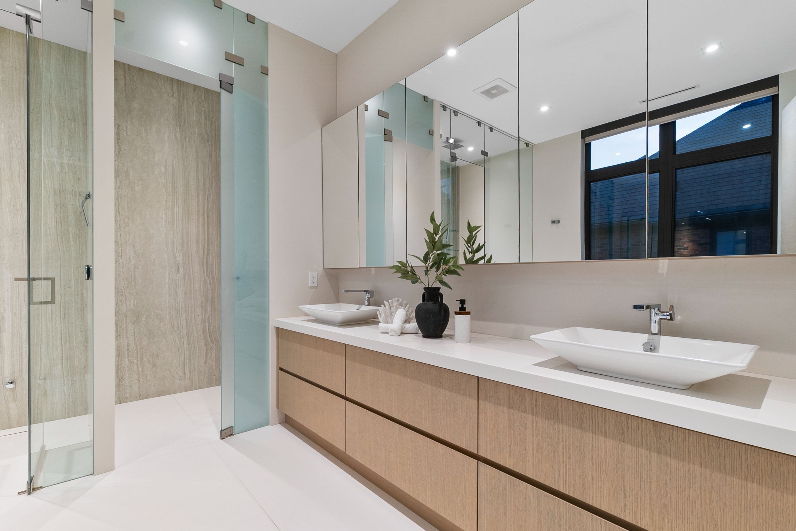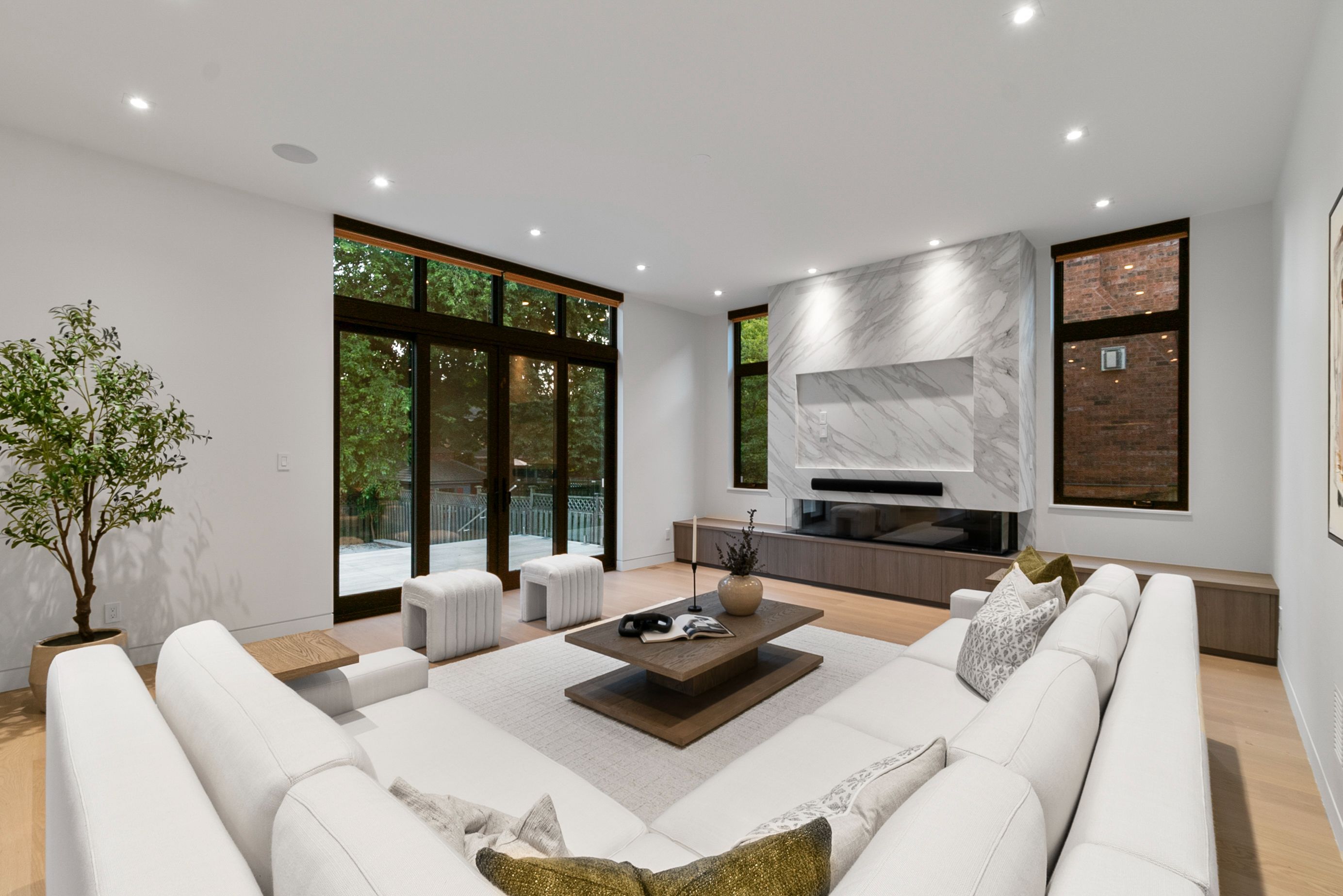 Introducing quiet luxury in this meticulously curated lorne park residence, crafted by renowned architect david small. This modern masterpiece embodies refined sophistication, defined by clean lines, layered natural finishes & showcases exceptional quality & a lifestyle designed for entertaining, wellness, & effortless family living. Spanning an approx. 7000 sf, the home welcomes you with a dramatic two-storey foyer, anchored by a striking 23-foot neolith feature wall, setting the tone for the architectural elegance that unfolds throughout the space. Open living & dining rooms lined with builtin servery, glass display cabinetry, & ceiling speakers create an elegant entertainment hub. Family room with regency fireplace & integrated storage. Powder room with floating vanity. The chefs kitchen is a sleek culinary haven: subzero 48 panelled fridge & freezer, wolf induction cooktop, dual wolf ovens (convection + steam), warming drawer, panelled miele dishwasher, coffee machine, microwave, & insinkerator disposal with instant-hot & pot-filler faucets. Modern chandelier, under-cabinet & base strip lighting, & dual sinks (large single + double) complete the kitchen. Master suite boasts a 12. 6ft ceiling, cove lighting, walk-in closet with builtin safe, & electronic lock for privacy. Spacious master ensuite offers steam shower with pressure massager, rain & hand showers, dual vanities, floor heating, & soaking tub. Three additional bedrooms all with ensuites & closets; one features a private balcony overlooking the front yard. The walkout basement is flooded w/ natural light, ceiling speakers, & another fireplace. Bar room & spa room offer complete relaxation: saunacore infrared + traditional sauna, steam room with massage/rain showers, changing area, storage, spa vanity, mirrored gym w/ antislip flooring, glass wall, & tv mount. Guest room with ensuite & heated floors, organized mechanical room, snowmelt driveway, new fence, limestone, stucco & neolith exterior.