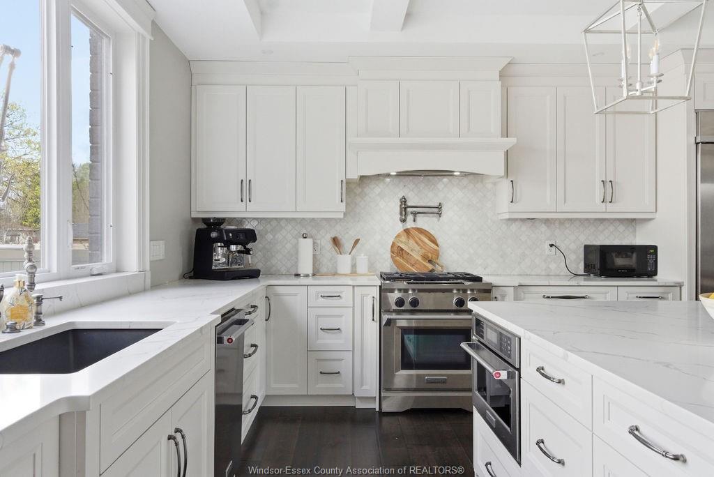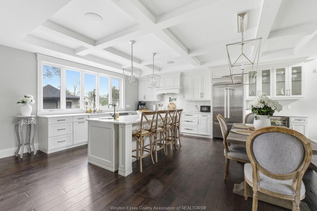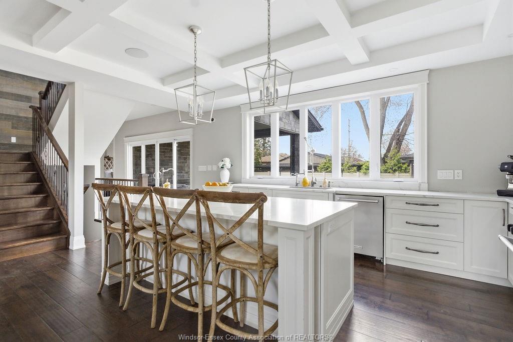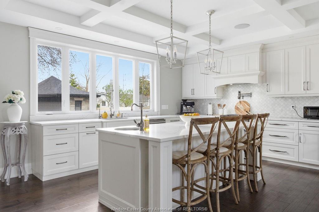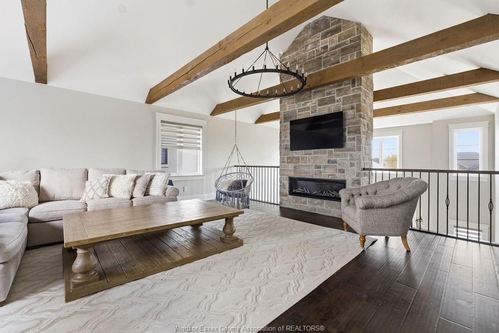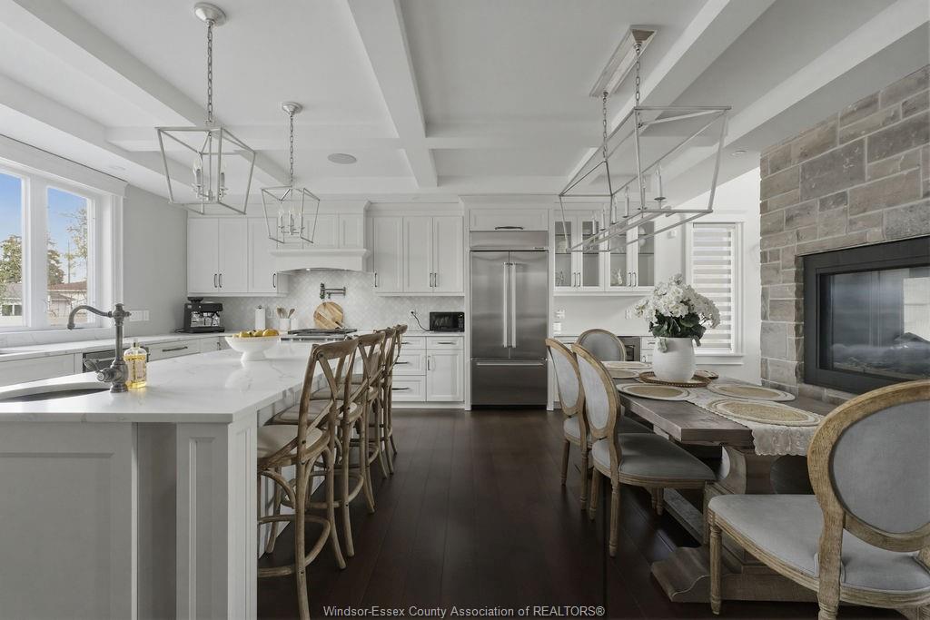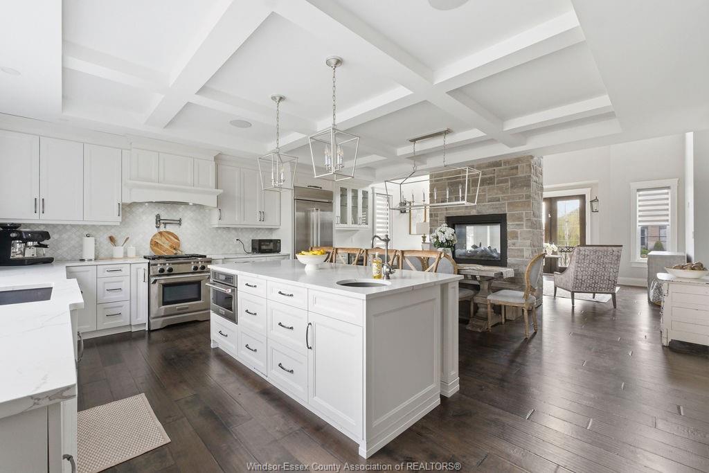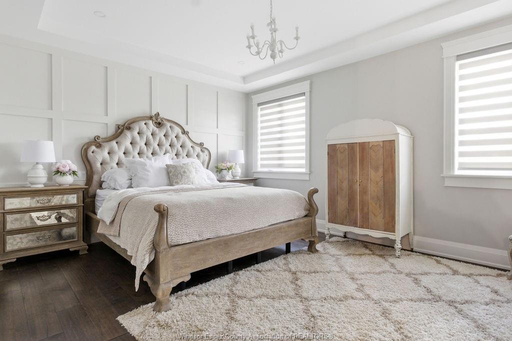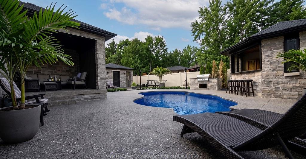 Custom built in 2018, this exceptional two-storey in naccarato estates is like no other, offering approx. 3,500 sq ft above grade (mpac) with 6 beds and 6 baths. A grand entry with soaring ceilings leads into expansive, well-designed living spaces, highlighted by a floor-to-ceiling stone two-way fireplace connecting the living room and custom kitchen. The main floor hosts a primary suite and powder room. Upstairs features a loft-style living area, office space, 3 bedrooms, 2 full baths, and laundry. The fully finished basement with grade entrance includes a kitchen, full bath, and bedrooms, ideal for multi-generational living. The backyard is designed for lifestyle with an in-ground pool, outdoor bar and bbq, pool house with bath, and screened-in patio. Located in a prime lasalle neighbourhood near ambassador golf club.