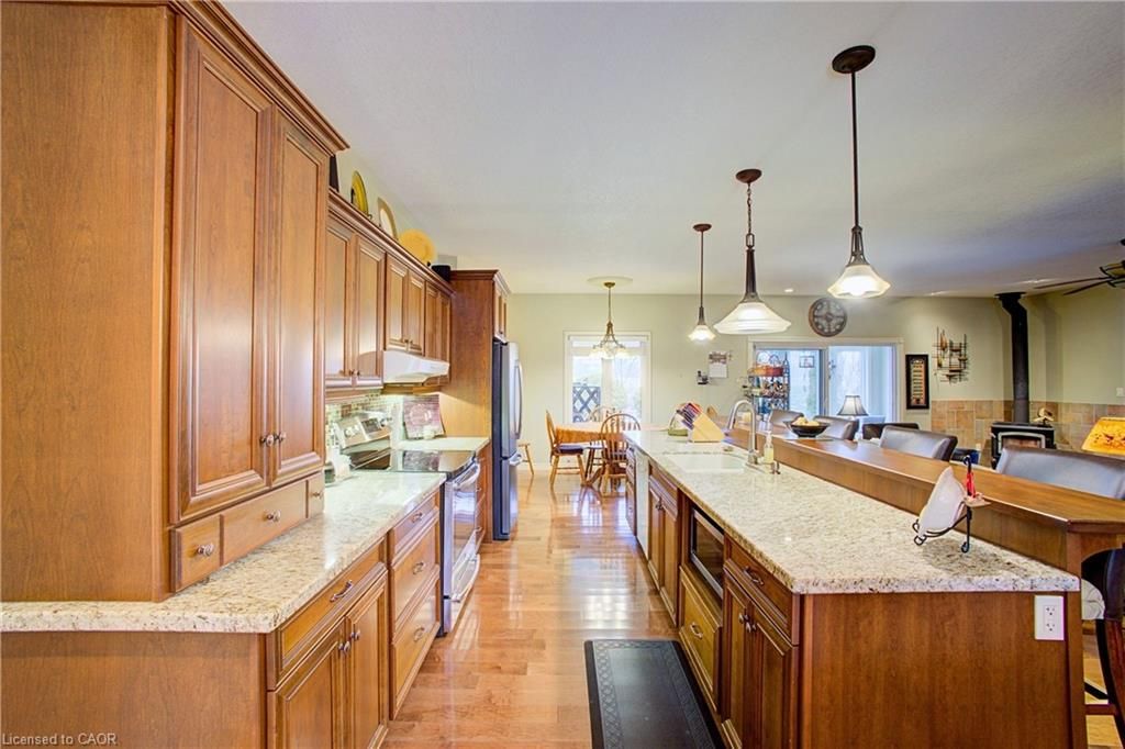 20 acres, geothermal heating/cooling, custom-built brick bungalow, original owner, and workable land. Set on a beautifully maintained property in west grey, this one-owner home reflects true pride of ownership throughout. The open-concept main floor offers a functional and inviting layout, featuring a bright living space that flows seamlessly into a four-season sunroom. The kitchen is both timeless and practical, complete with solid cherry cabinetry and granite countertops, while the spacious primary suite includes a walk-in closet and a 4-piece ensuite with a glass shower and soaker tub. The lower level provides excellent additional living space with a large rec room and full bath, offering flexibility for extended family or future use. Outside, the property features a desirable mix of mature bush and workable acreage, ideal for those seeking space, privacy, or hobby farming potential. Located in a quiet rural setting just 15 minutes to mount forest and with convenient access to major routes, this property offers the perfect balance of peaceful country living and everyday convenience.