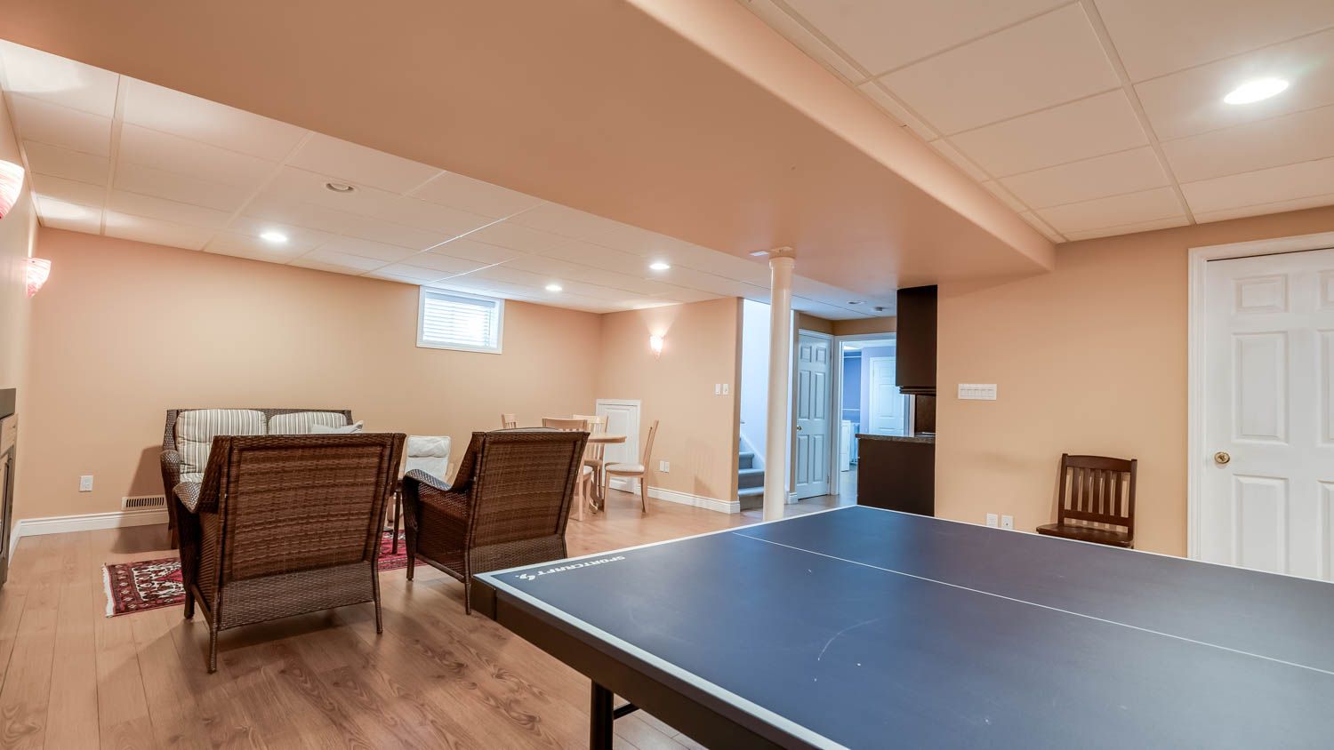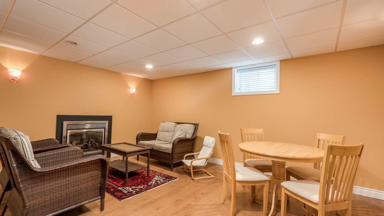 • Professionally finished lower level includes a cozy fireplace and home theatre setup.