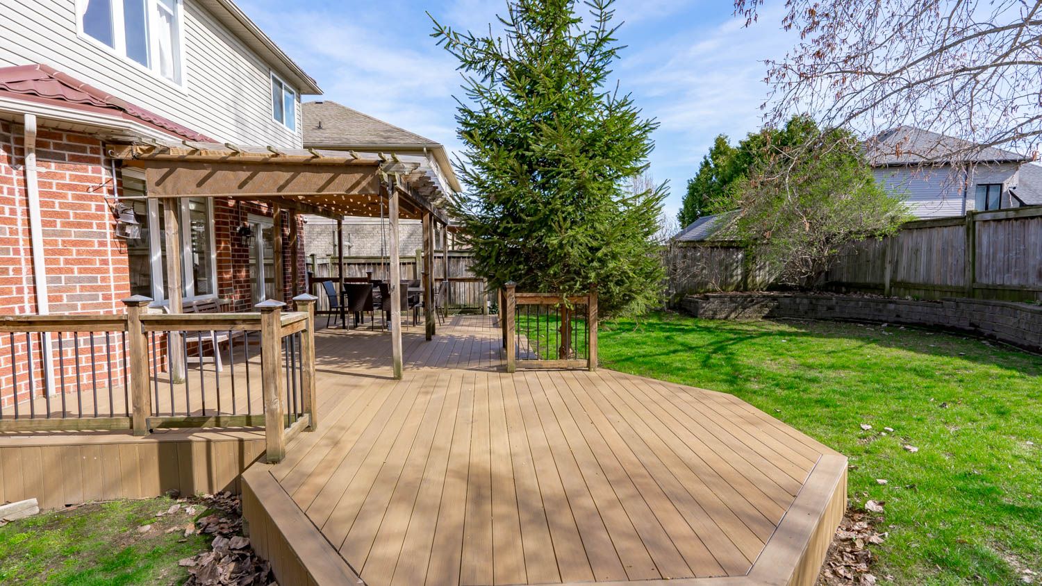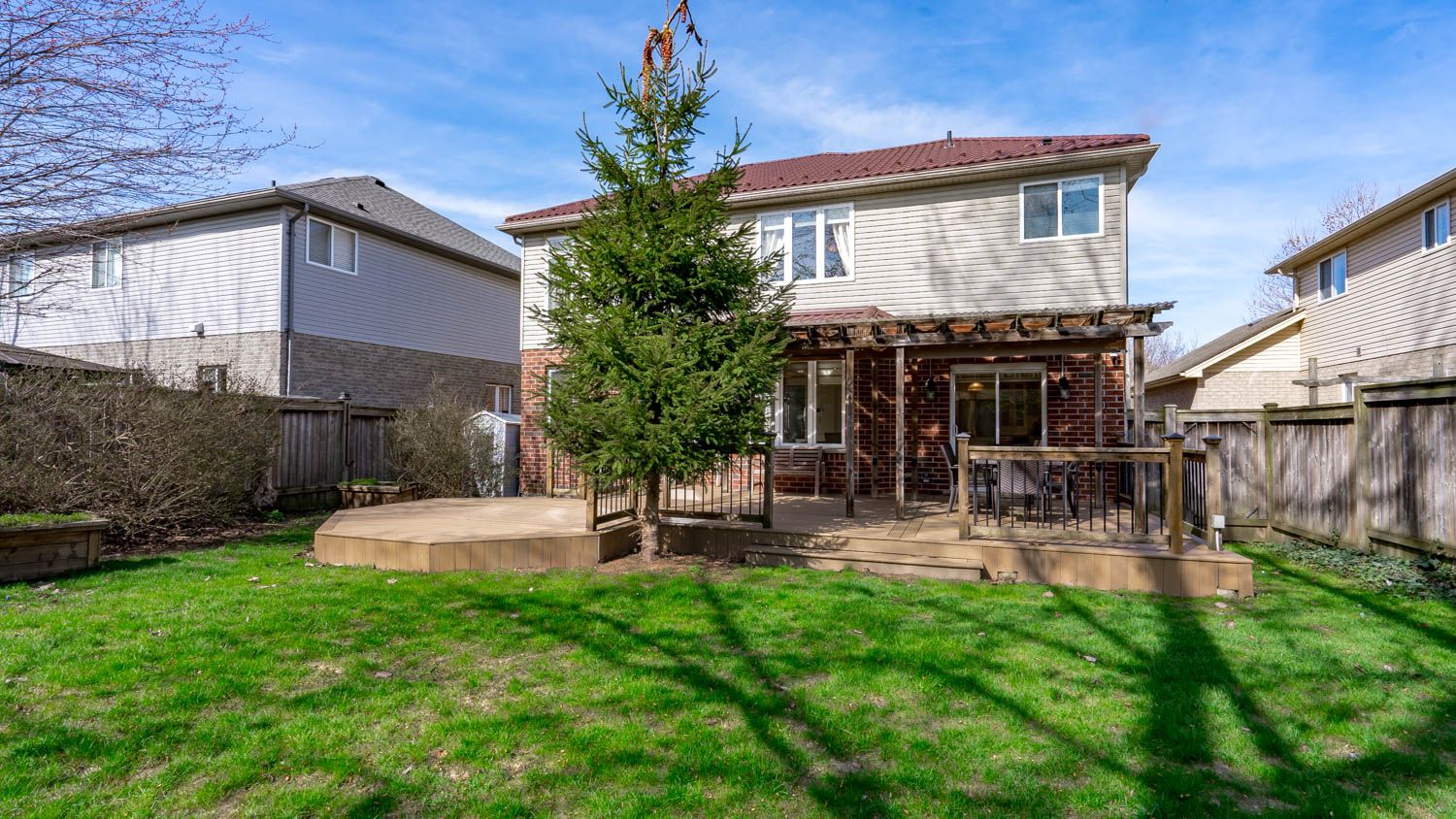 • Beautifully landscaped yard features tiered gardens and a large deck for outdoor dining.