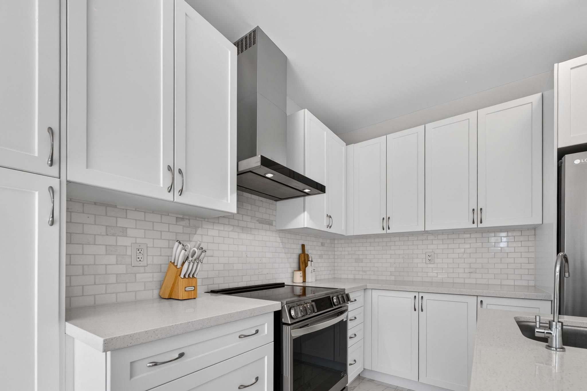 • Upgraded kitchen with quartz counters, stainless steel appliances, and breakfast bar.