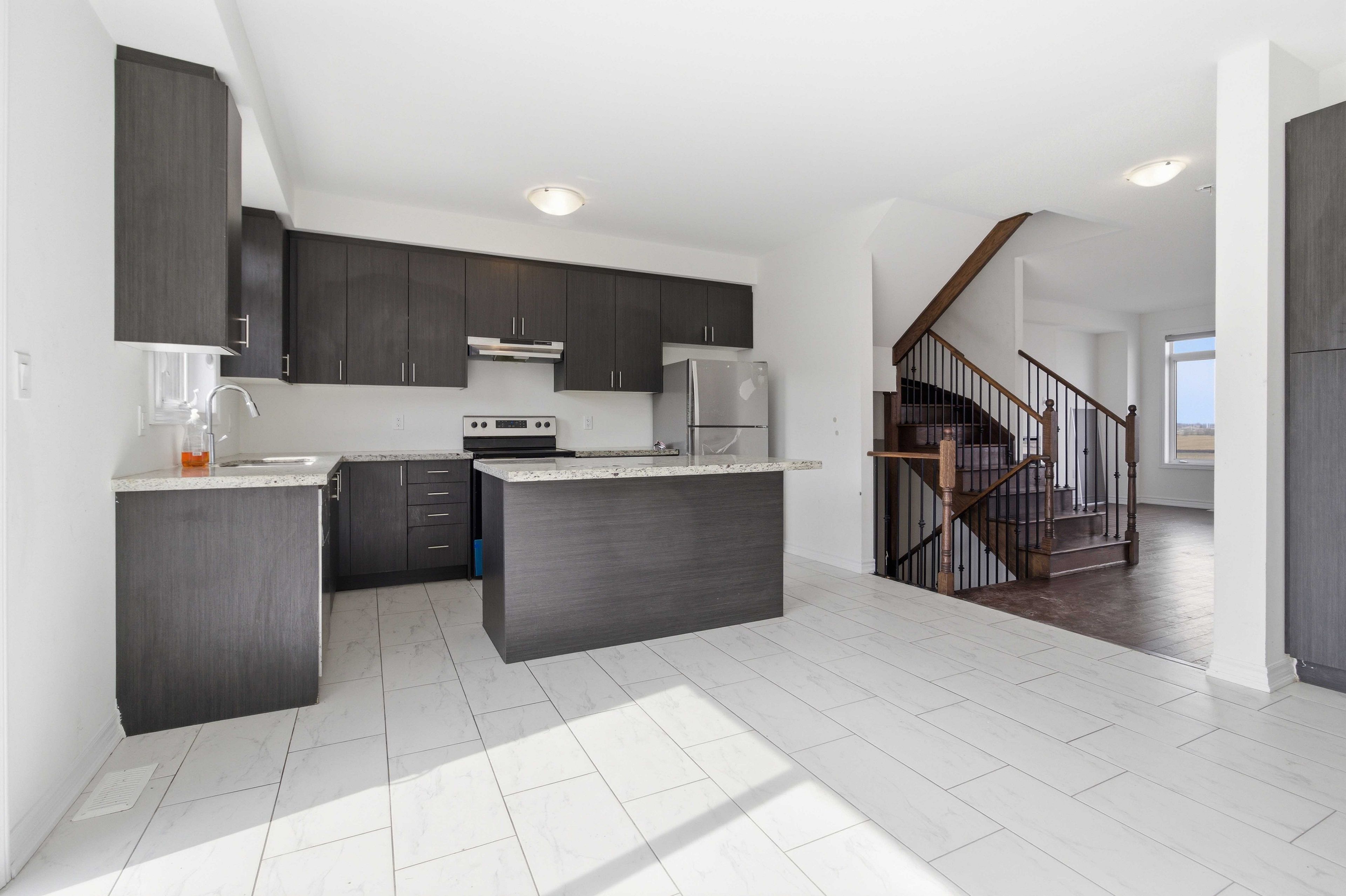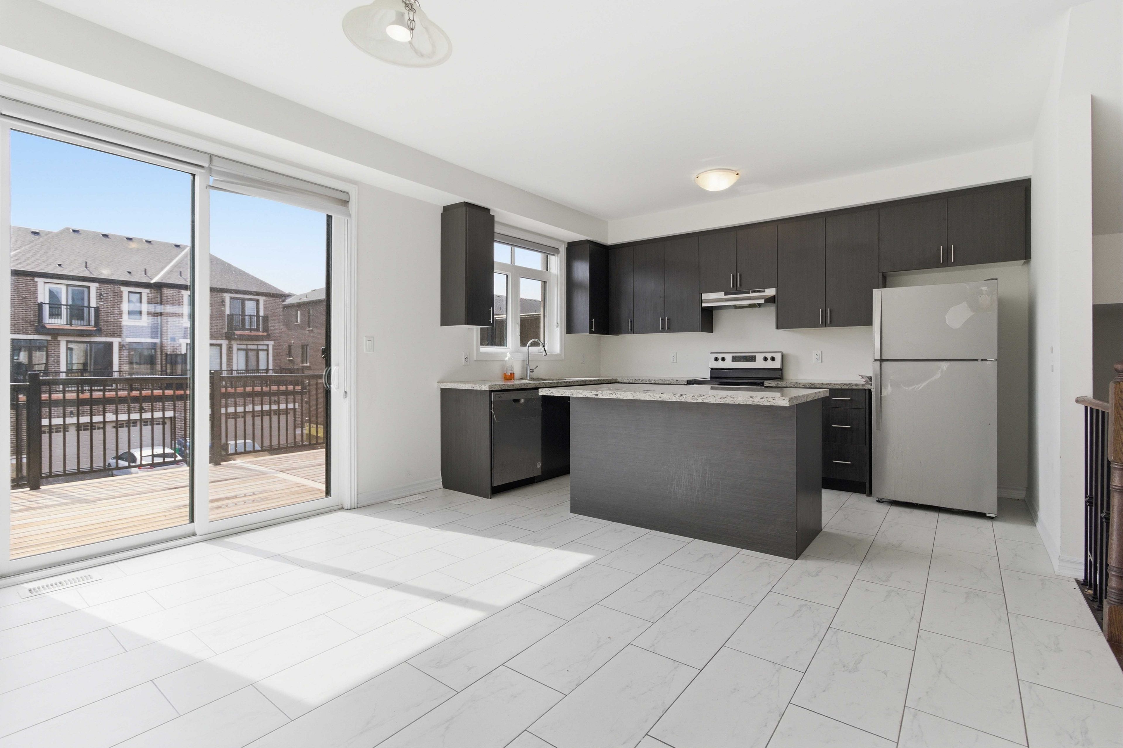 • Open-concept kitchen and dining space with access to a terrace.