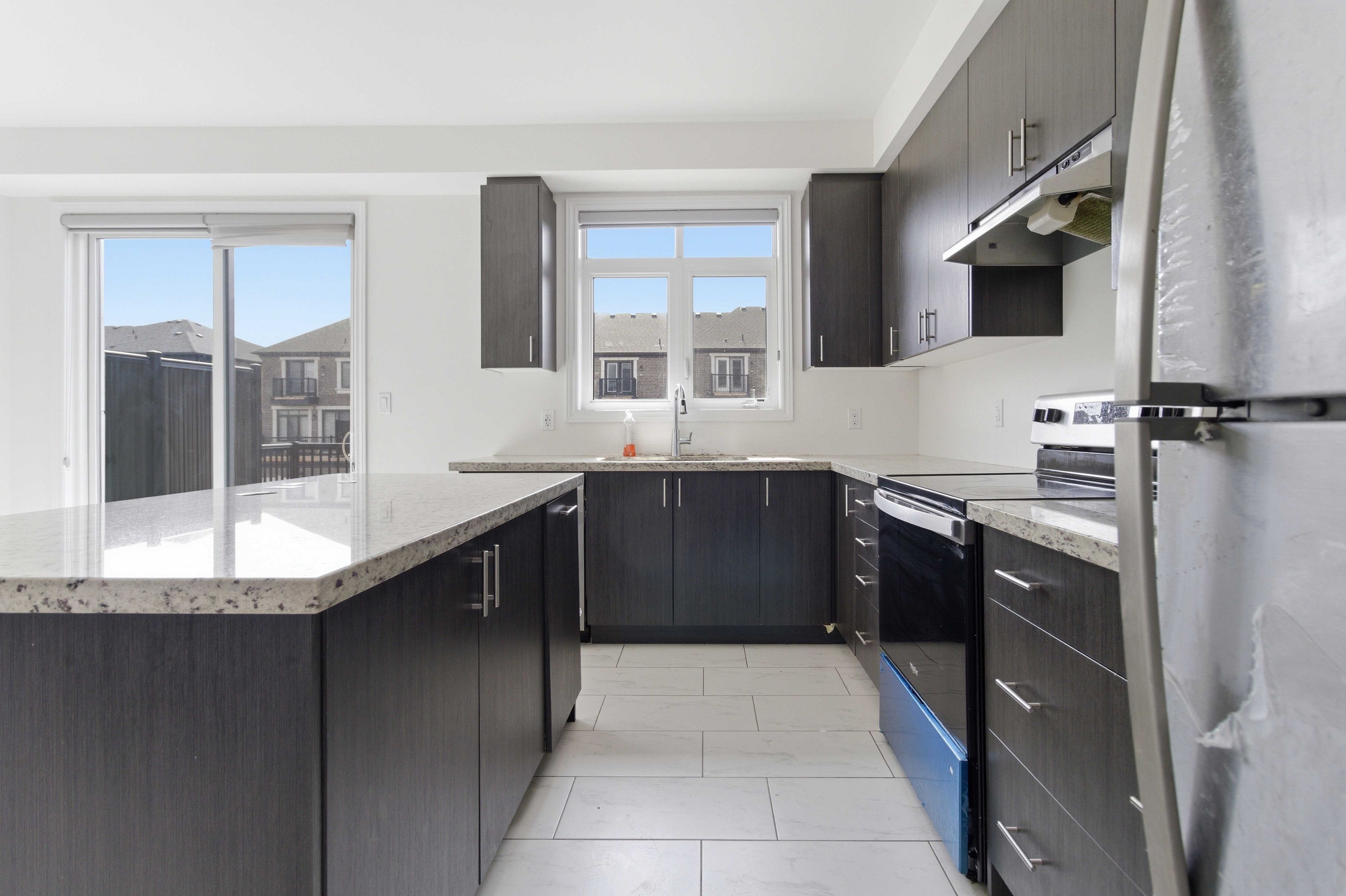 • Bright living areas with large windows and tall ceilings throughout.