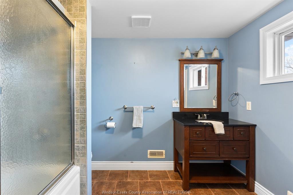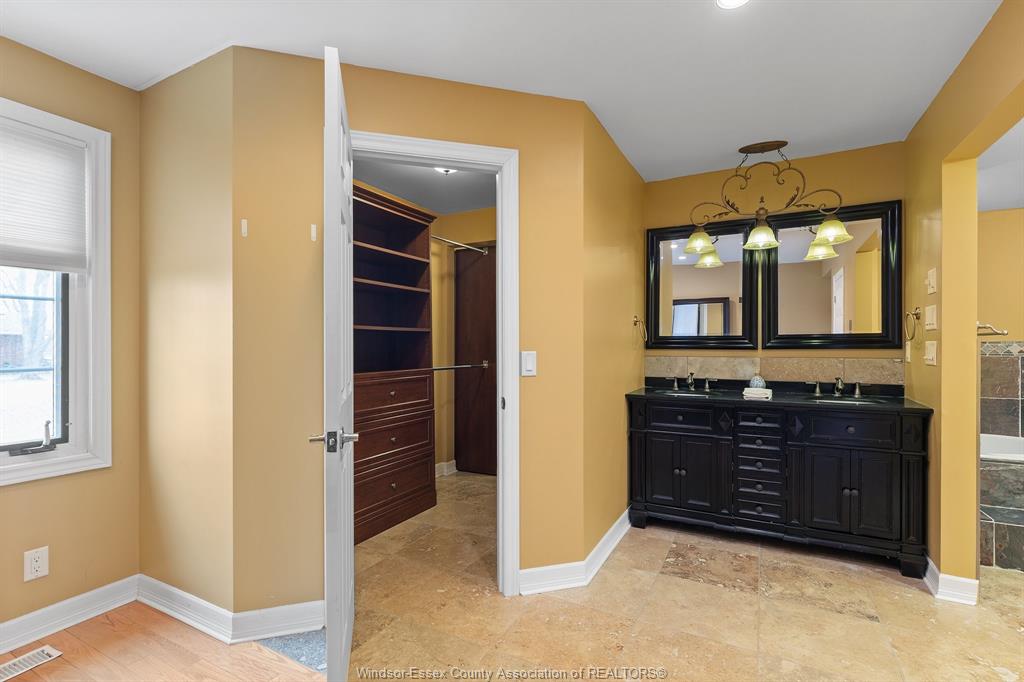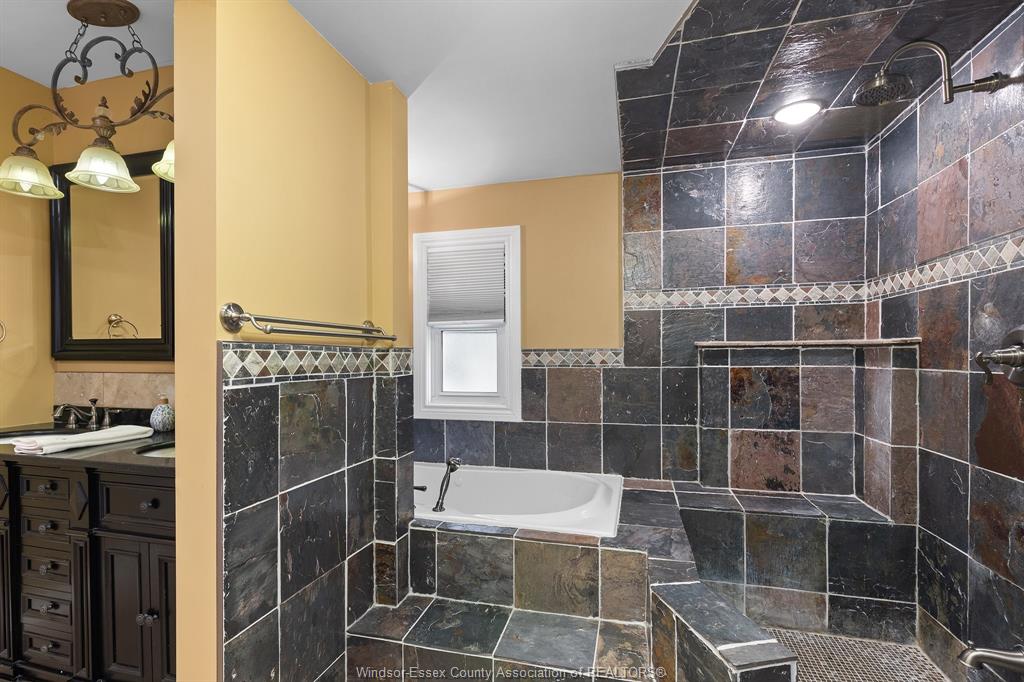 • Custom ensuite featuring a jet tub, slate shower, and heated floors.
