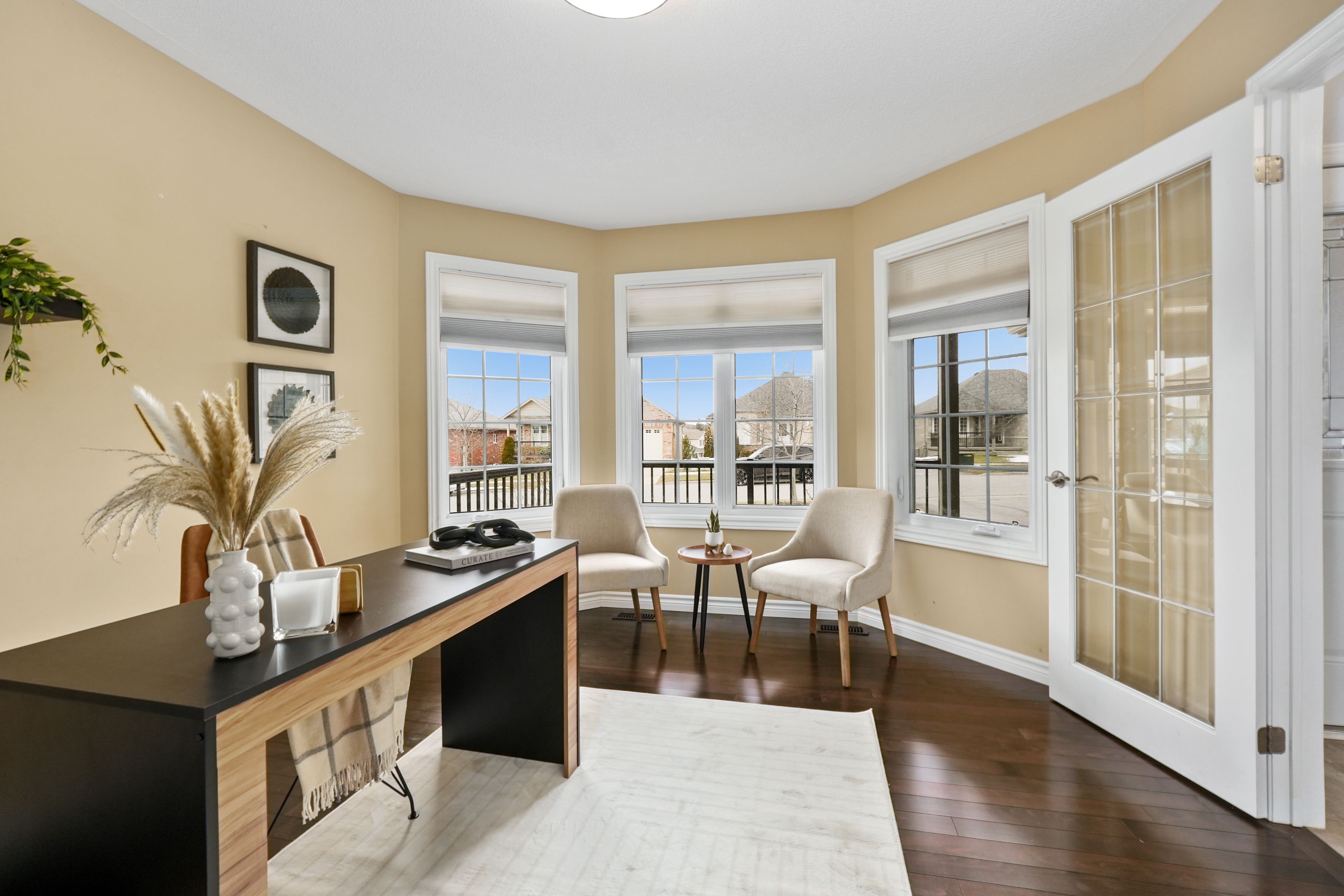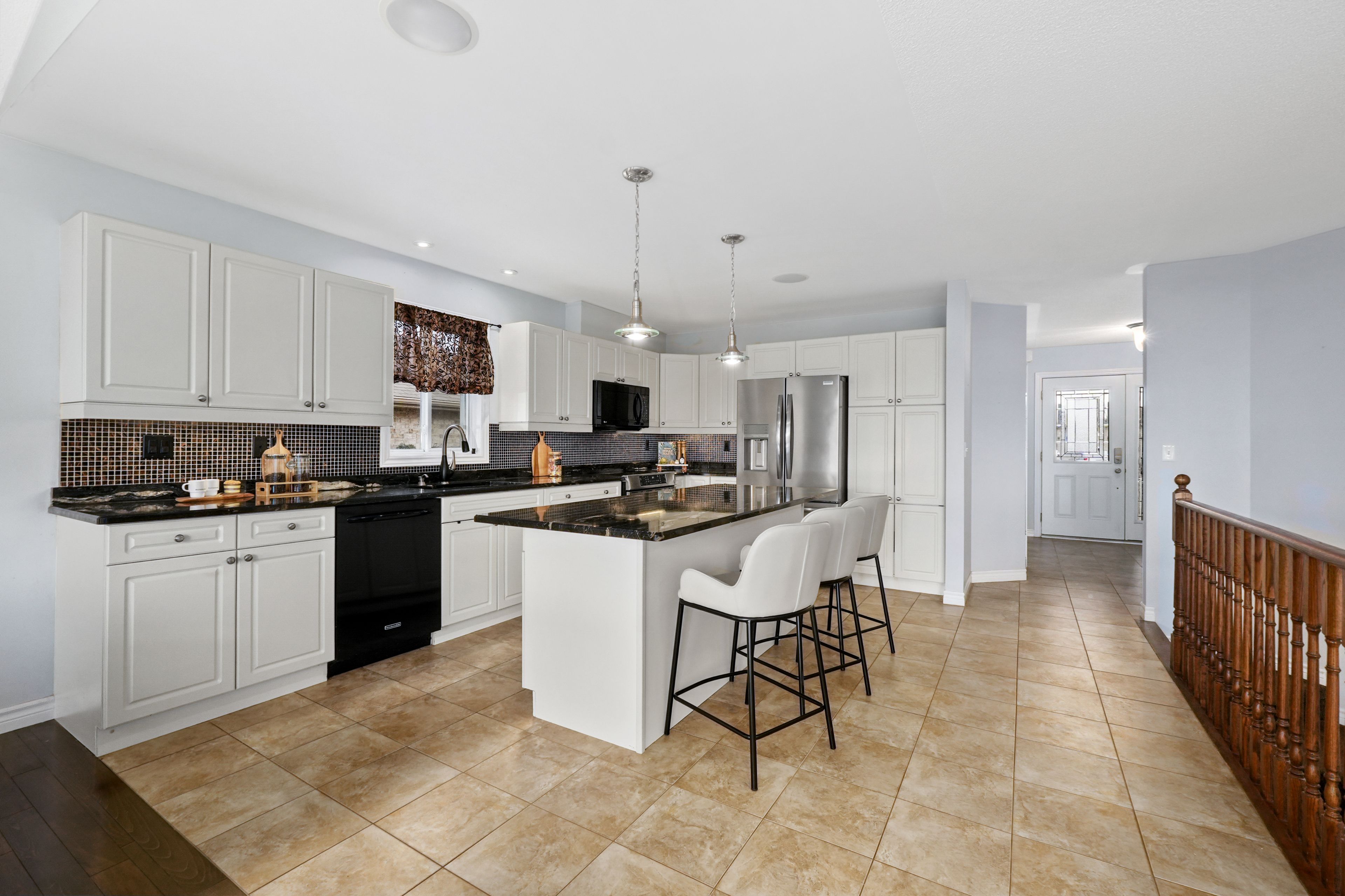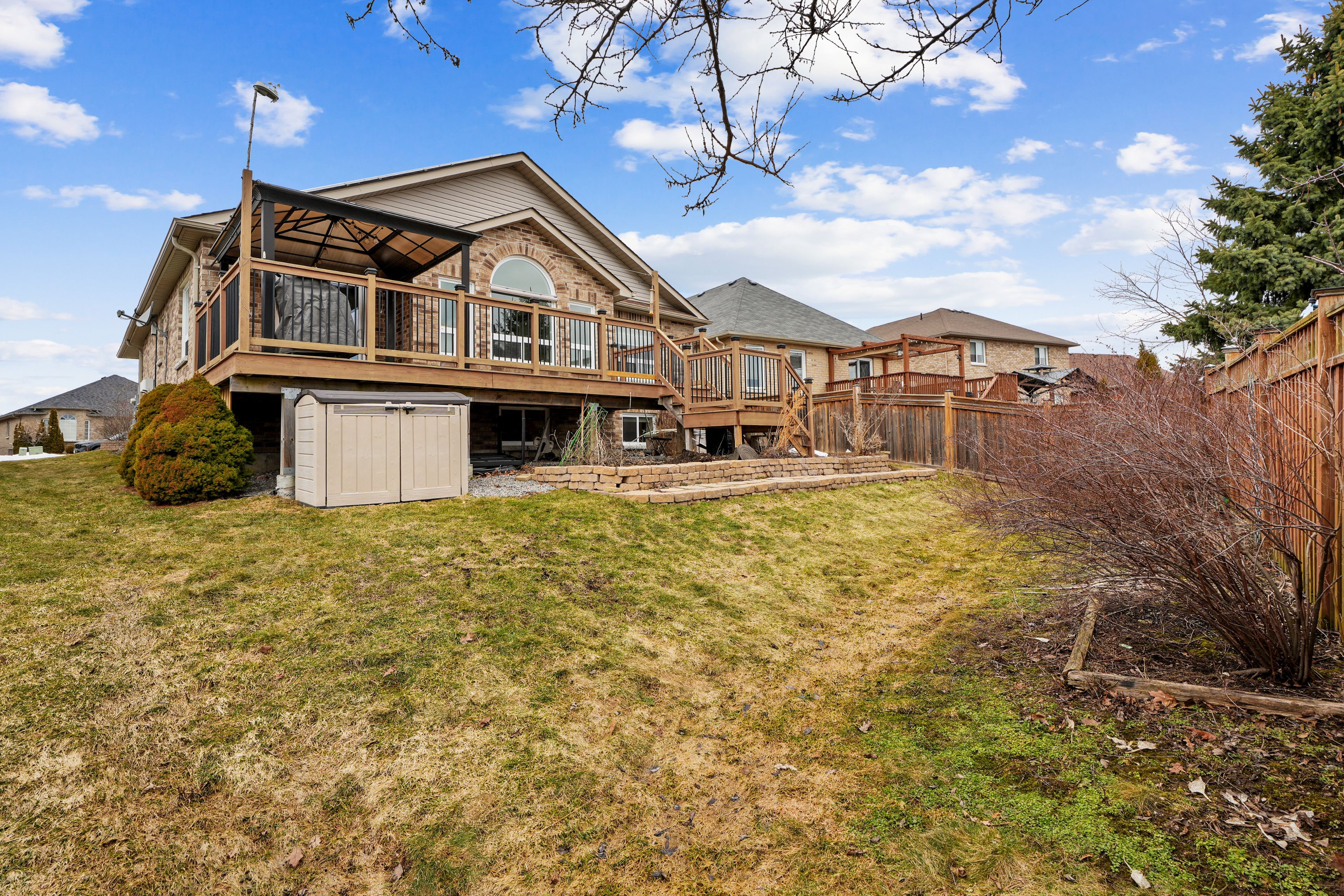Located in the sought-after parkview hills community in cobourg, just steps to st. Mary's catholic secondary school and nearby amenities, this family-friendly bungalow offers convenient main-level living with the added benefit of a fully finished lower level. A spacious covered front porch leads into a welcoming foyer with ample storage for the whole family. At the front of the home, an office with glass french doors is filled with natural light, perfect for working from home. The open-concept principal living space is highlighted by a cathedral ceiling with a bright, airy feel. The living room features a wall of windows, built-in shelving, and an electric fireplace, seamlessly connecting to the dining area with modern lighting and a walkout to the back deck, ideal for extending your living space and entertaining. The kitchen is both stylish and functional, offering sleek countertops, a double undermount sink, tile backsplash, stainless steel appliances, and a large island with pendant lighting. Ample cabinetry and prep space make it perfect for everyday living. The main floor primary suite features a large window, walk-in closet, and a private ensuite with a glass shower enclosure and separate tub. Completing the level is a second bedroom, bathroom, and convenient main floor laundry. The finished lower level provides a spacious rec room with a gas fireplace, two additional well-appointed bedrooms, and a full bathroom, perfect for guests or growing families. Outside, enjoy a generous deck, mature gardens, green space, and the added benefit of solar panels on the roof. Ideally located close to amenities with easy access to highway 401, this home offers comfort, space, and convenience in a desirable neighbourhood.