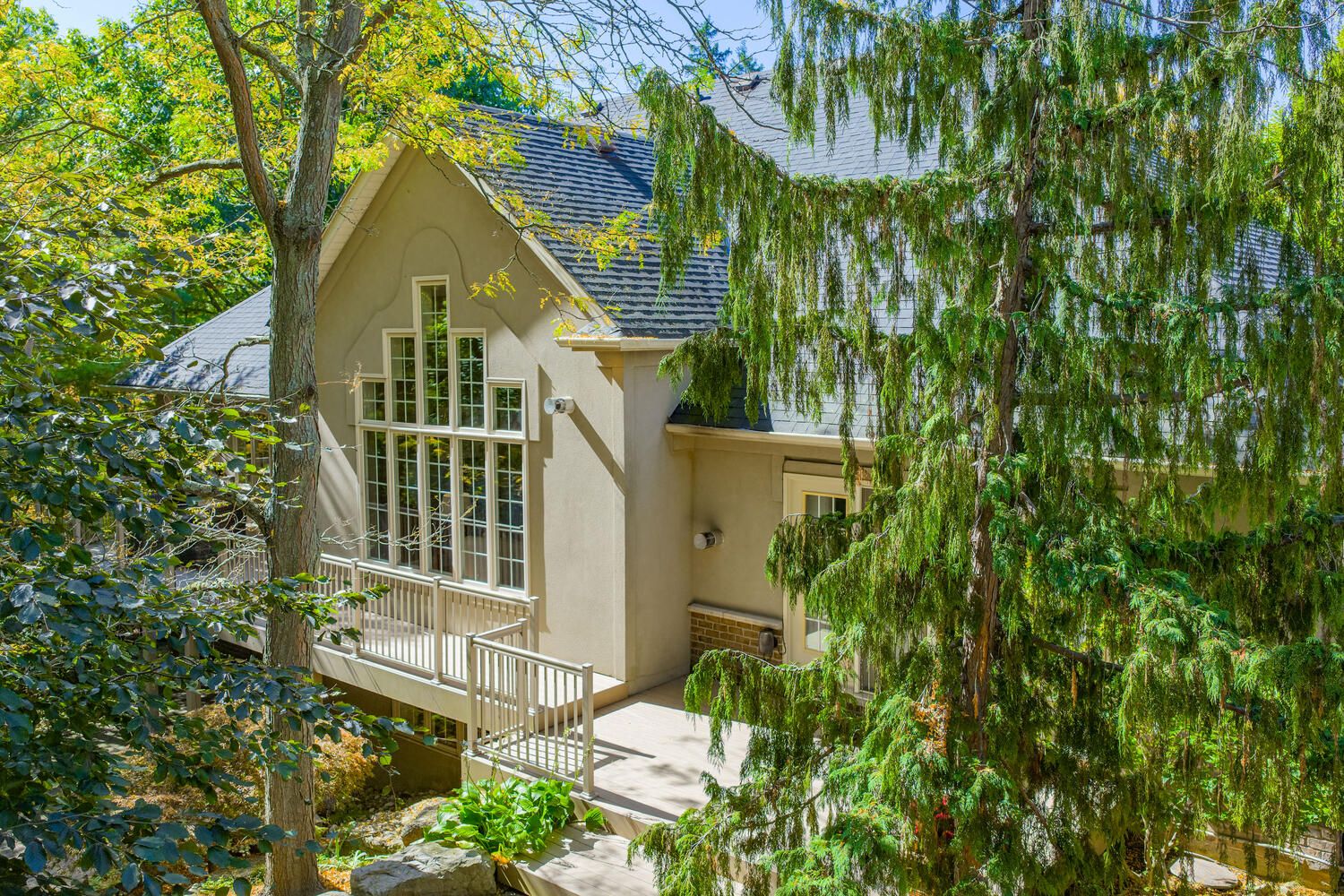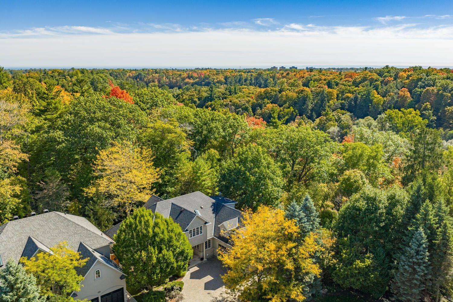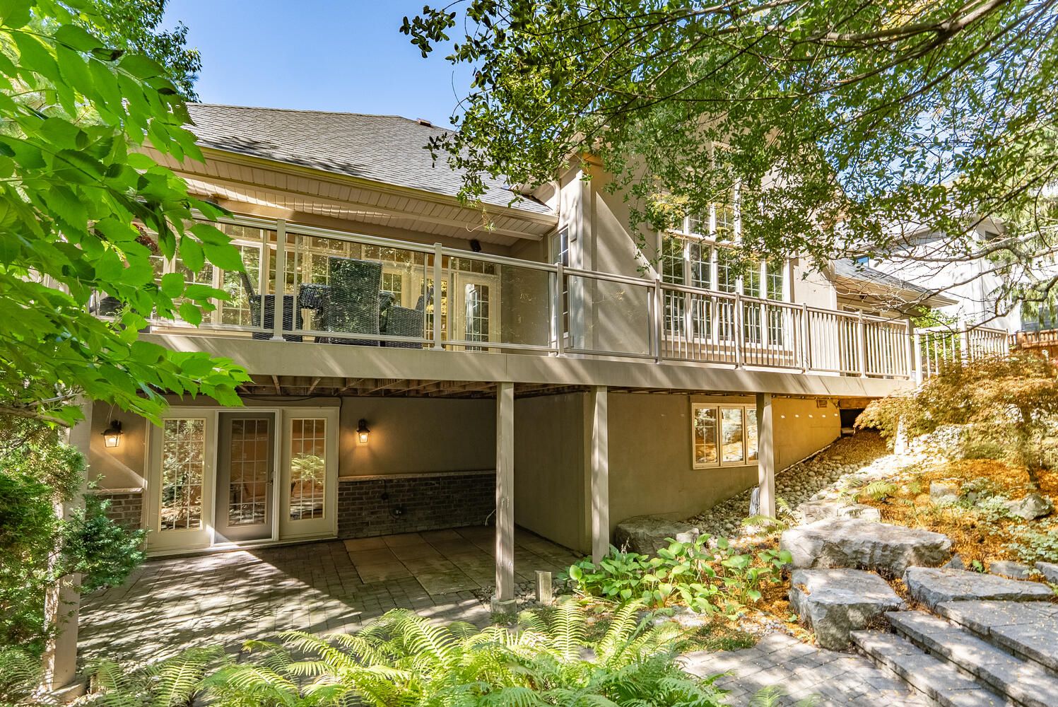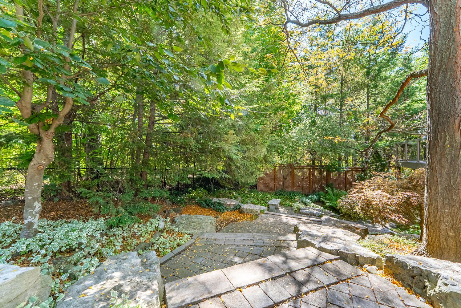Architectural masterpiece in oakville - muskoka living on the ravine! Welcome to the exclusive enclave of riverbank way, where bespoke homes overlook lush wooded ravines & back onto sixteen mile creek conservation. At the very end of this quiet cul-de-sac, the trail ends & tranquil home life begins. This custom-built 6,160 sq. Ft. Residence blends elegance, functionality & luxury. Sun-filled interiors are framed by picturesque forest views through expansive custom windows w/transoms. Grand living room w/soaring 16' high open-beam ceilings & gas fp forms the heart of this home. Entertain in the dining room designed for 12 guests. Enjoy downsview kitchen featuring granite counters, marble backsplash, centre island w/2nd sink w/filtered water, gas stove, led pot lights, b/i speakers & walk-in pantry. The breakfast room opens to a composite deck with glass railings, perfect for morning coffee, or glass of wine. The main floor primary suite boasts 10' high vaulted ceilings, fp, w/o to the deck, w/i closet & spa-inspired bath w/5-jet jacuzzi, separate shower & stained-glass window. Convenient main floor laundry, inside garage entry & private staircase 2 ll complete this floor. Upstairs are 2 spacious bedrooms & a skylit bath. The walk-out lower level offers a separate entrance, billiards room, media room, office, 4th bedroom, large family room ideal for entertaining or multi-generational living. Granite rocks, multitier patios, lawn, stone benches in the amazing backyard. Dutch clean home. Updates: roof shingles (2018), 2nd floor hardwood (2018), finished lower-level rms (2018), furnace & ac (2023), epoxy garage flrs (2023). Lifestyle perks: miles of interconnected trails@ the doorstep, nearby lions valley with red cliffs, hospital, health science village, new regional courthouse, 16 mile sports complex, library, community centre, shopping, dining access hwy 407, qew&go train. The epitome of sophistication & elegance, set in oakville's most breathtaking natural landscape.