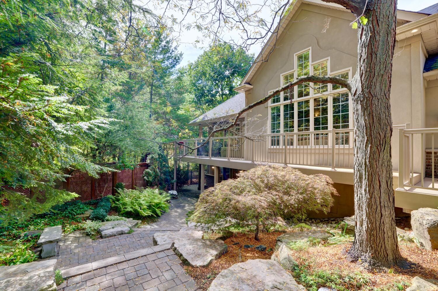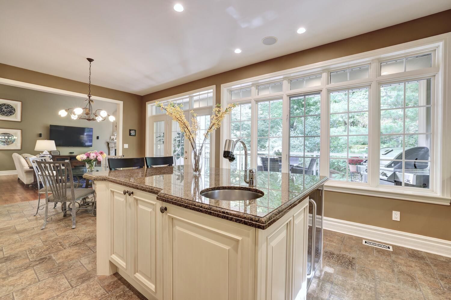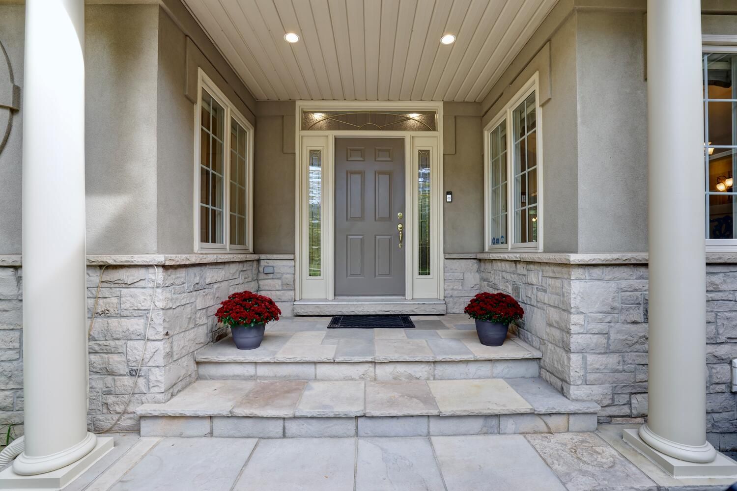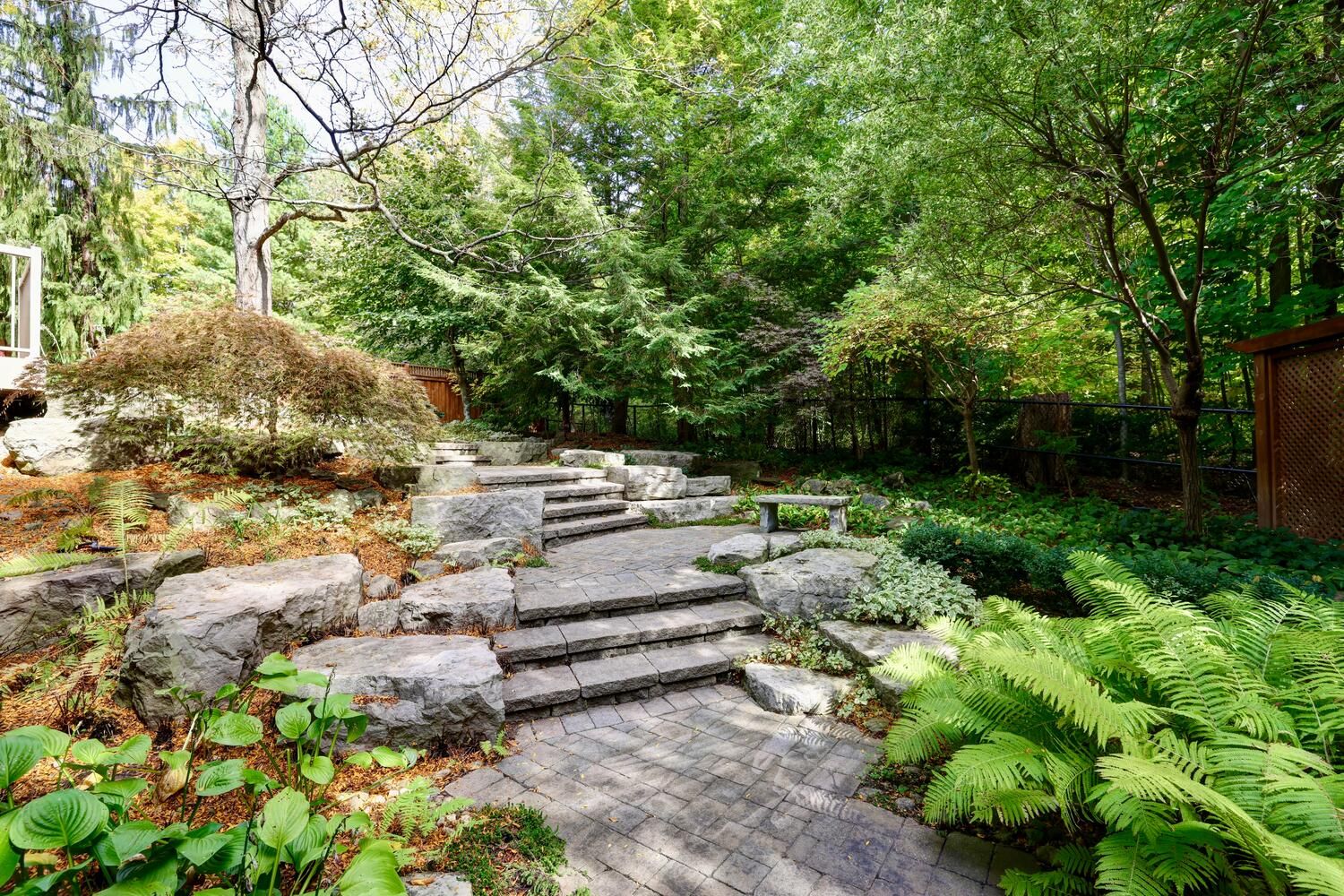 Architectural masterpiece in oakville - muskoka living on the ravine! Welcome to the exclusive enclave of riverbank way, where bespoke homes overlook lush wooded ravines & back onto sixteen mile creek conservation. At the very end of this quiet cul-de-sac, the trail ends & tranquil home life begins. This custom-built 6,160 sq. Ft. Residence blends elegance, functionality & luxury. Sun-filled interiors are framed by picturesque forest views through expansive custom windows w/transoms. Grand living room w/soaring 16' high open-beam ceilings & gas fp forms the heart of this home. Entertain in the dining room designed for 12 guests. Enjoy downsview kitchen featuring granite counters, marble backsplash, centre island w/2nd sink w/filtered water, gas stove, led pot lights, b/i speakers & walk-in pantry. The breakfast room opens to a composite deck with glass railings, perfect for morning coffee, or glass of wine. The main floor primary suite boasts 10' high vaulted ceilings, fp, w/o to the deck, w/i closet & spa-inspired bath w/5-jet jacuzzi, separate shower & stained-glass window. Convenient main floor laundry, inside garage entry & private staircase 2 ll complete this floor. Upstairs are 2 spacious bedrooms & a skylit bath. The walk-out lower level offers a separate entrance, billiards room, media room, office, 4th bedroom, large family room ideal for entertaining or multi-generational living. Granite rocks, multitier patios, lawn, stone benches in the amazing backyard. Dutch clean home. Updates: roof shingles (2018), 2nd floor hardwood (2018), finished lower-level rms (2018), furnace & ac (2023), epoxy garage flrs (2023). Lifestyle perks: miles of interconnected trails@ the doorstep, nearby lions valley with red cliffs, hospital, health science village, new regional courthouse, 16 mile sports complex, library, community centre, shopping, dining access hwy 407, qew&go train. The epitome of sophistication & elegance, set in oakville's most breathtaking natural landscape.