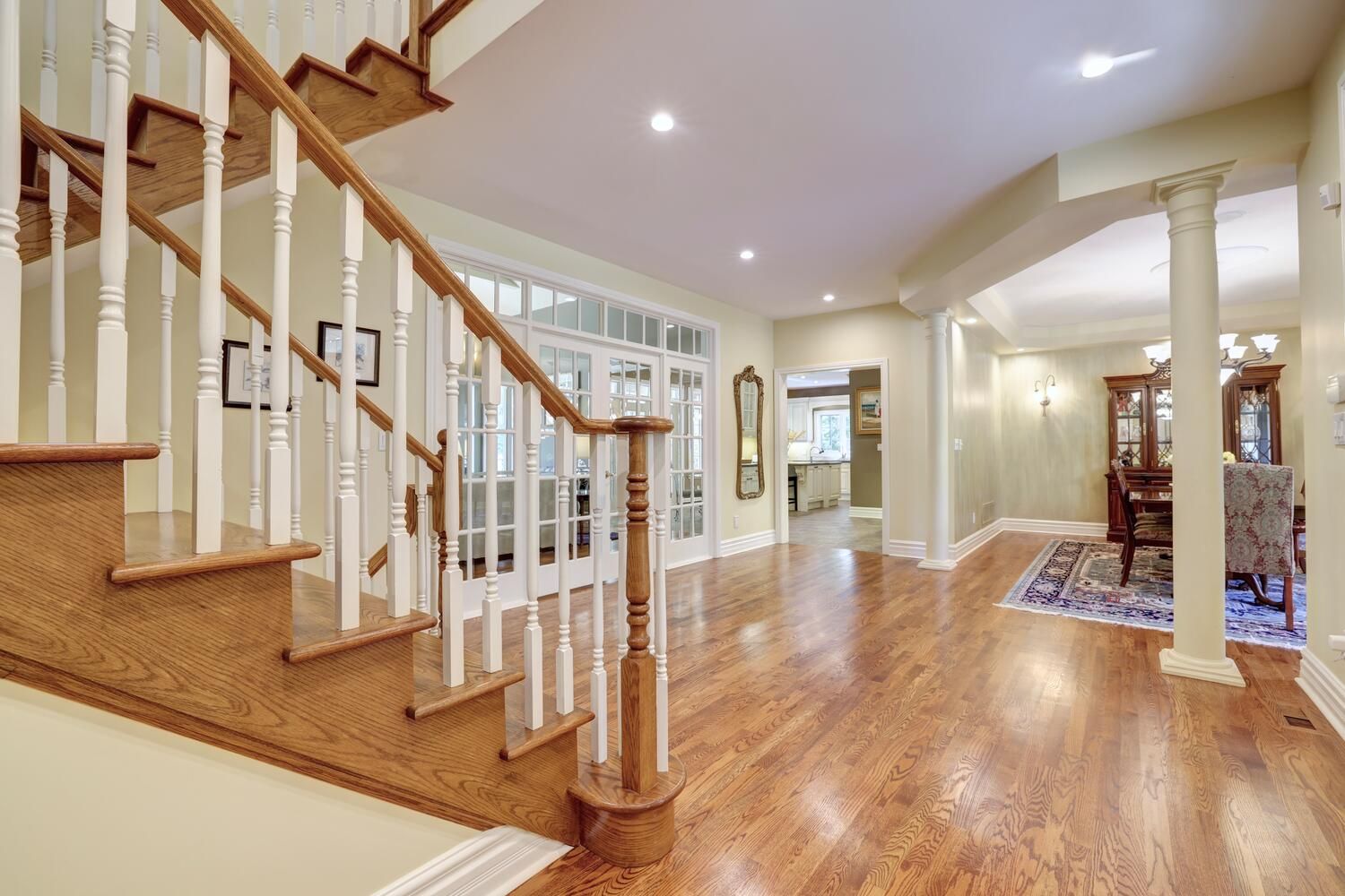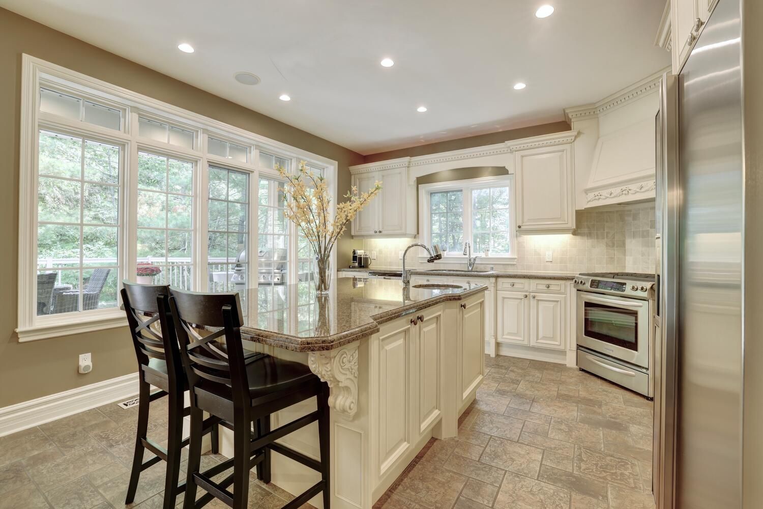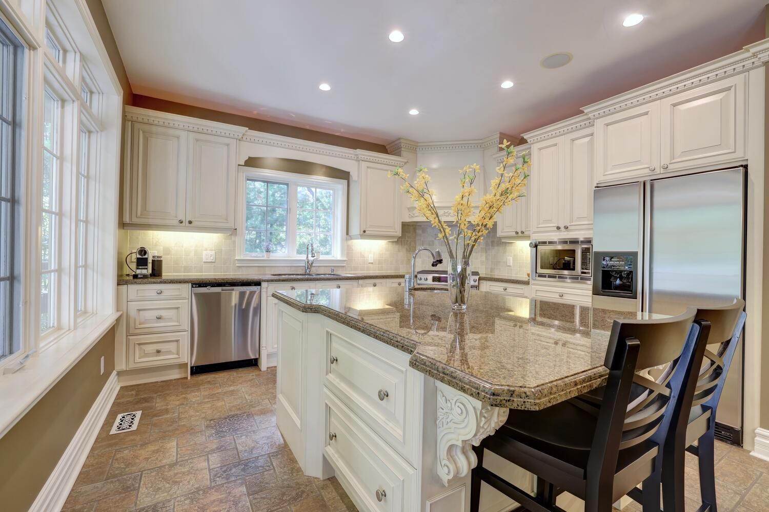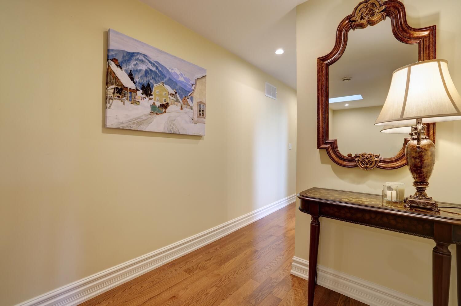 Architectural masterpiece in oakville - muskoka living on the ravine! Welcome to the exclusive enclave of riverbank way, where bespoke homes overlook lush wooded ravines & back onto sixteen mile creek conservation. At the very end of this quiet cul-de-sac, the trail ends & tranquil home life begins. This custom-built 6,160 sq. Ft. Residence blends elegance, functionality & luxury. Sun-filled interiors are framed by picturesque forest views through expansive custom windows w/transoms. Grand living room w/soaring 16' high open-beam ceilings & gas fp forms the heart of this home. Entertain in the dining room designed for 12 guests. Enjoy downsview kitchen featuring granite counters, marble backsplash, centre island w/2nd sink w/filtered water, gas stove, led pot lights, b/i speakers & walk-in pantry. The breakfast room opens to a composite deck with glass railings, perfect for morning coffee, or glass of wine. The main floor primary suite boasts 10' high vaulted ceilings, fp, w/o to the deck, w/i closet & spa-inspired bath w/5-jet jacuzzi, separate shower & stained-glass window. Convenient main floor laundry, inside garage entry & private staircase 2 ll complete this floor. Upstairs are 2 spacious bedrooms & a skylit bath. The walk-out lower level offers a separate entrance, billiards room, media room, office, 4th bedroom, large family room ideal for entertaining or multi-generational living. Granite rocks, multitier patios, lawn, stone benches in the amazing backyard. Dutch clean home. Updates: roof shingles (2018), 2nd floor hardwood (2018), finished lower-level rms (2018), furnace & ac (2023), epoxy garage flrs (2023). Lifestyle perks: miles of interconnected trails@ the doorstep, nearby lions valley with red cliffs, hospital, health science village, new regional courthouse, 16 mile sports complex, library, community centre, shopping, dining access hwy 407, qew&go train. The epitome of sophistication & elegance, set in oakville's most breathtaking natural landscape.