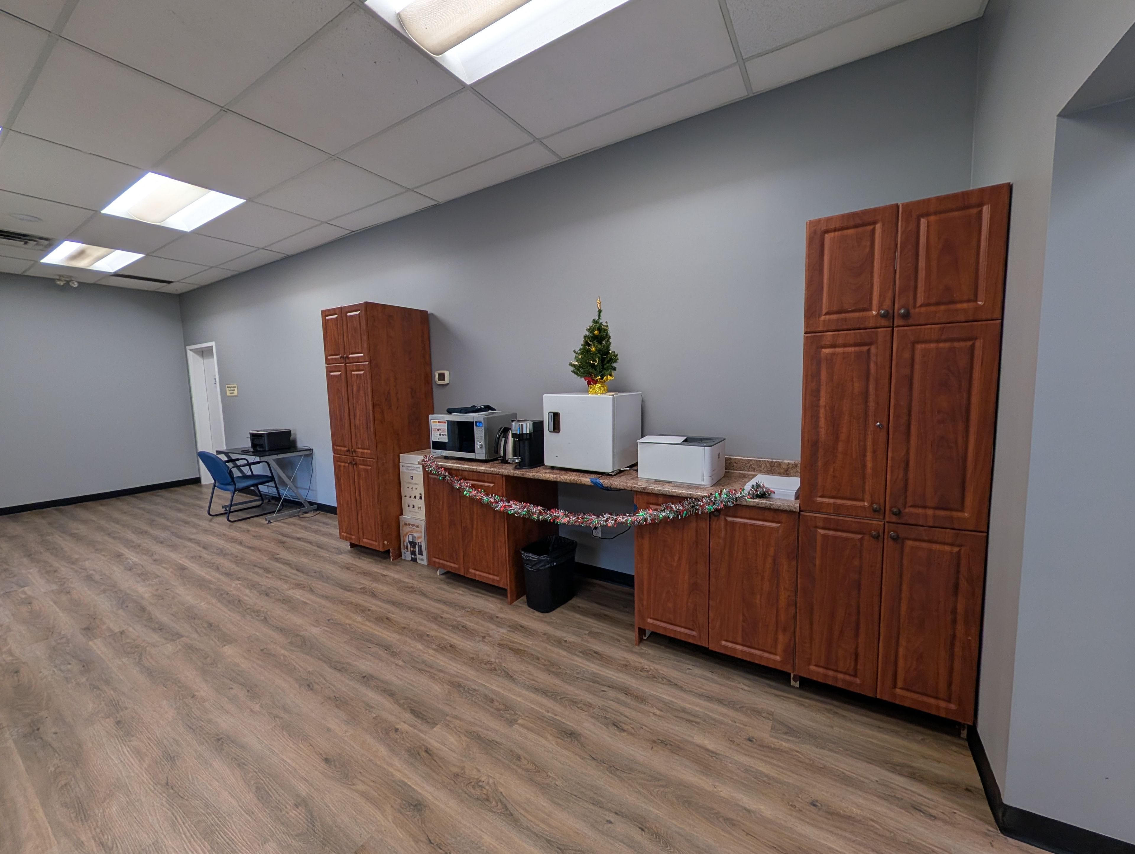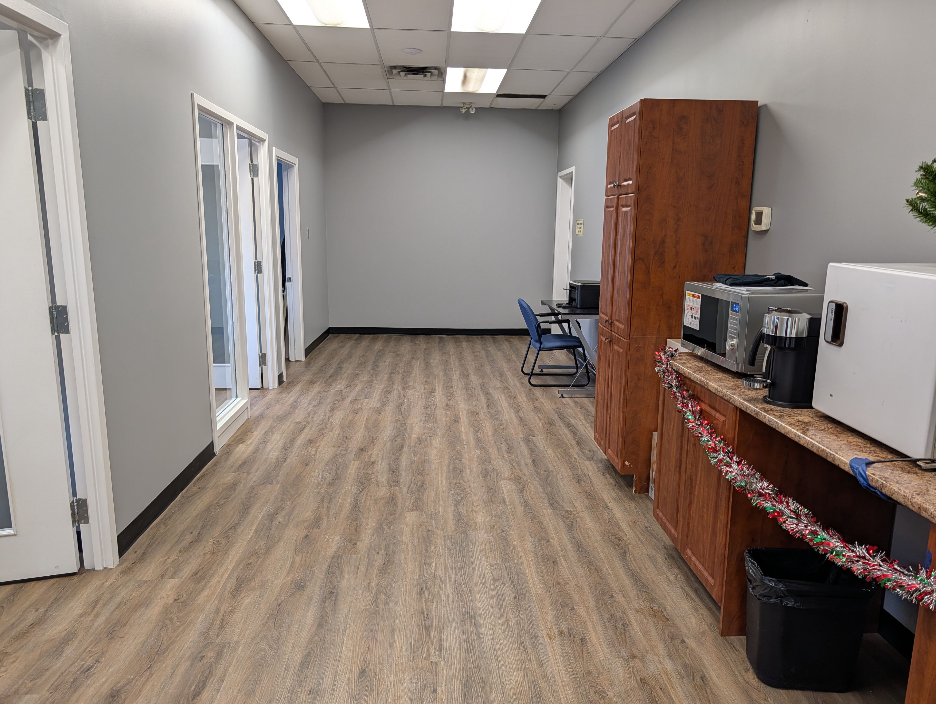 • Efficient layout with three enclosed offices and an open work area.
