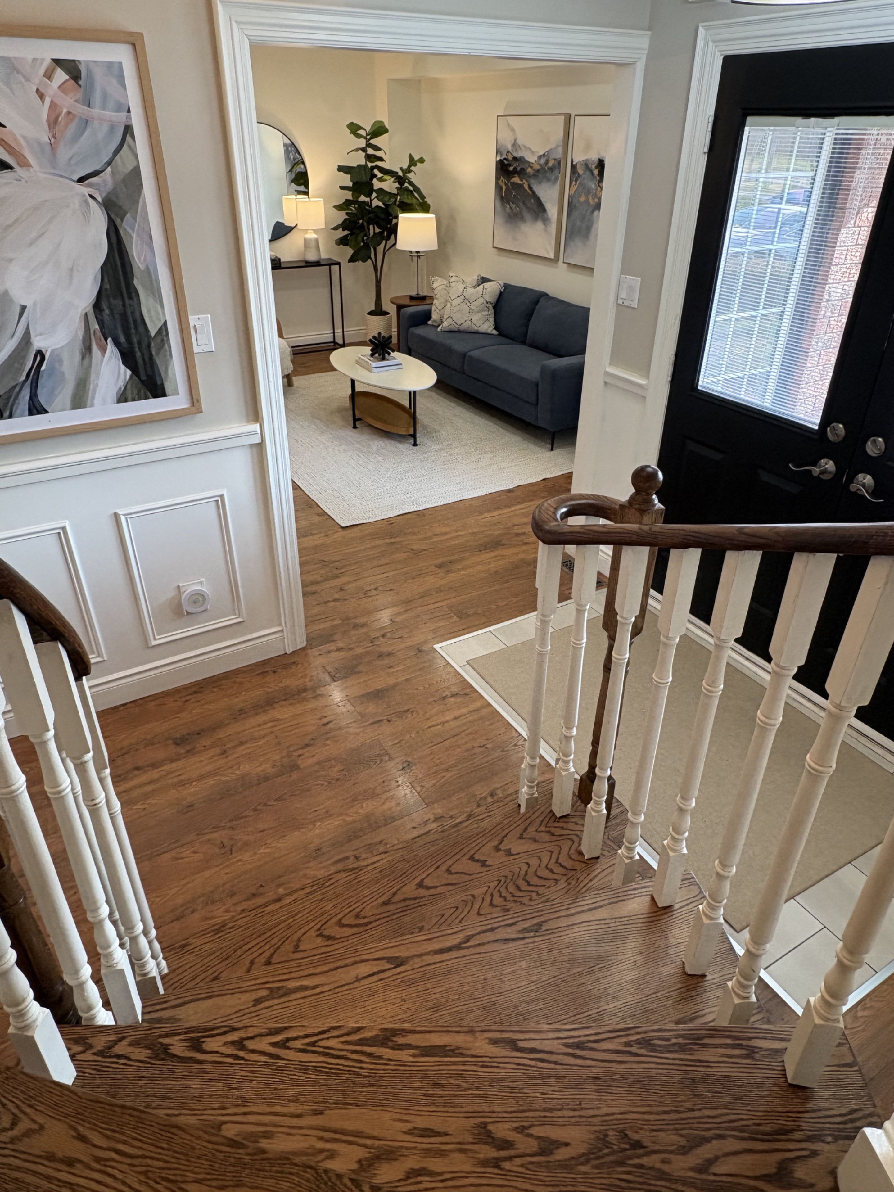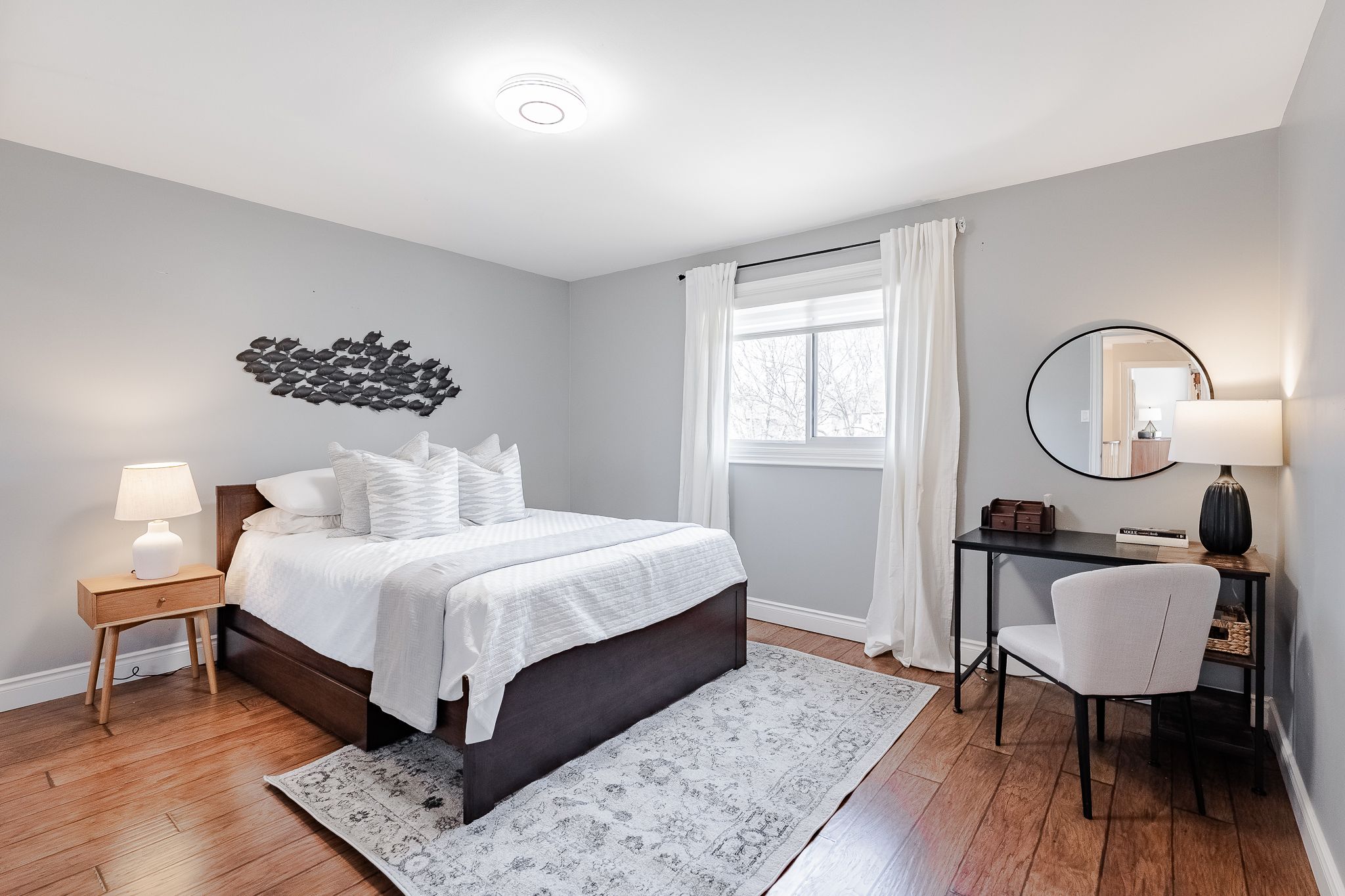 Welcome to 1229 freeman, a meticulously maintained home in the highly sought-after burlington core-offering exceptional value with 3+1 bedrooms, 4 bathrooms, over 2800 sq ft of living space, a fully finished basement, and a rare 1. 5 car garage with parking for two additional vehicles on the driveway. A landscaped walkway leads to a welcoming covered front porch-an ideal spot to enjoy a quiet morning coffee. Inside, a spacious foyer is complemented by a grand staircase, wainscoting, and a statement chandelier. The layout strikes a thoughtful balance, with an open-concept kitchen and family room at the rear, while still offering defined spaces for formal dining and an additional living area. The kitchen features stainless steel appliances, stone countertops, a breakfast bar, and generous storage including a walk-through pantry. It flows seamlessly into the family room and out to the covered rear porch, creating an effortless indoor-outdoor connection. The backyard is designed for both relaxation and entertaining, with a stone patio dining area and ample green space for children or pets. A laundry/mudroom with direct backyard access and a conveniently located powder room complete the level. Upstairs, the primary suite offers a peaceful retreat, complete with a renovated ensuite featuring a soaker tub, glass shower, and a walk-in closet with a window. Two additional bedrooms and an updated main bathroom complete the space. The fully finished basement provides excellent ceiling height and versatile living space, including a fourth bedroom with a large window, a full bathroom, a spacious recreation area ideal for movie nights, and an additional room suited for a home office or gym. Ideally located within walking distance to the lake, shops, restaurants, and schools, this home delivers an exceptional lifestyle in one of burlington's most desirable neighbourhoods.
