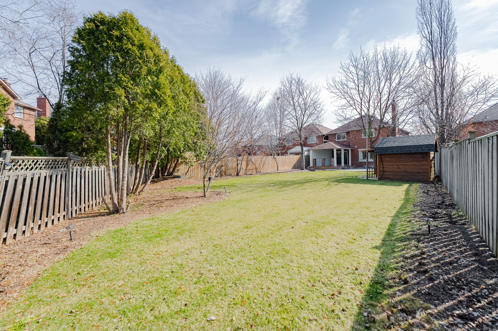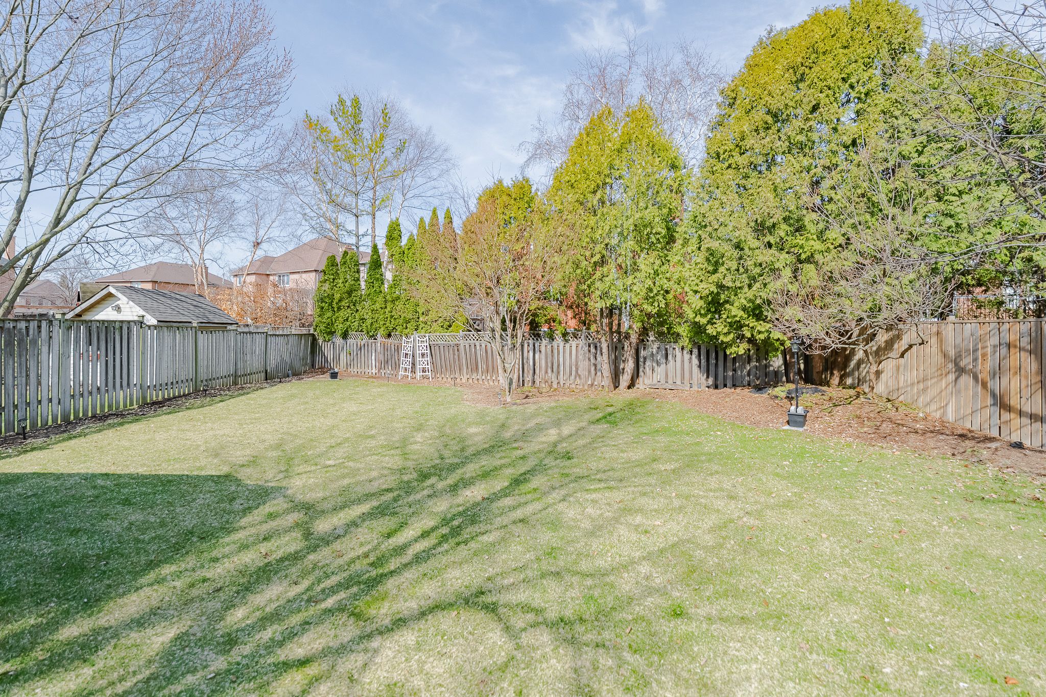 • Backyard features a stone patio and ample green space for outdoor fun.