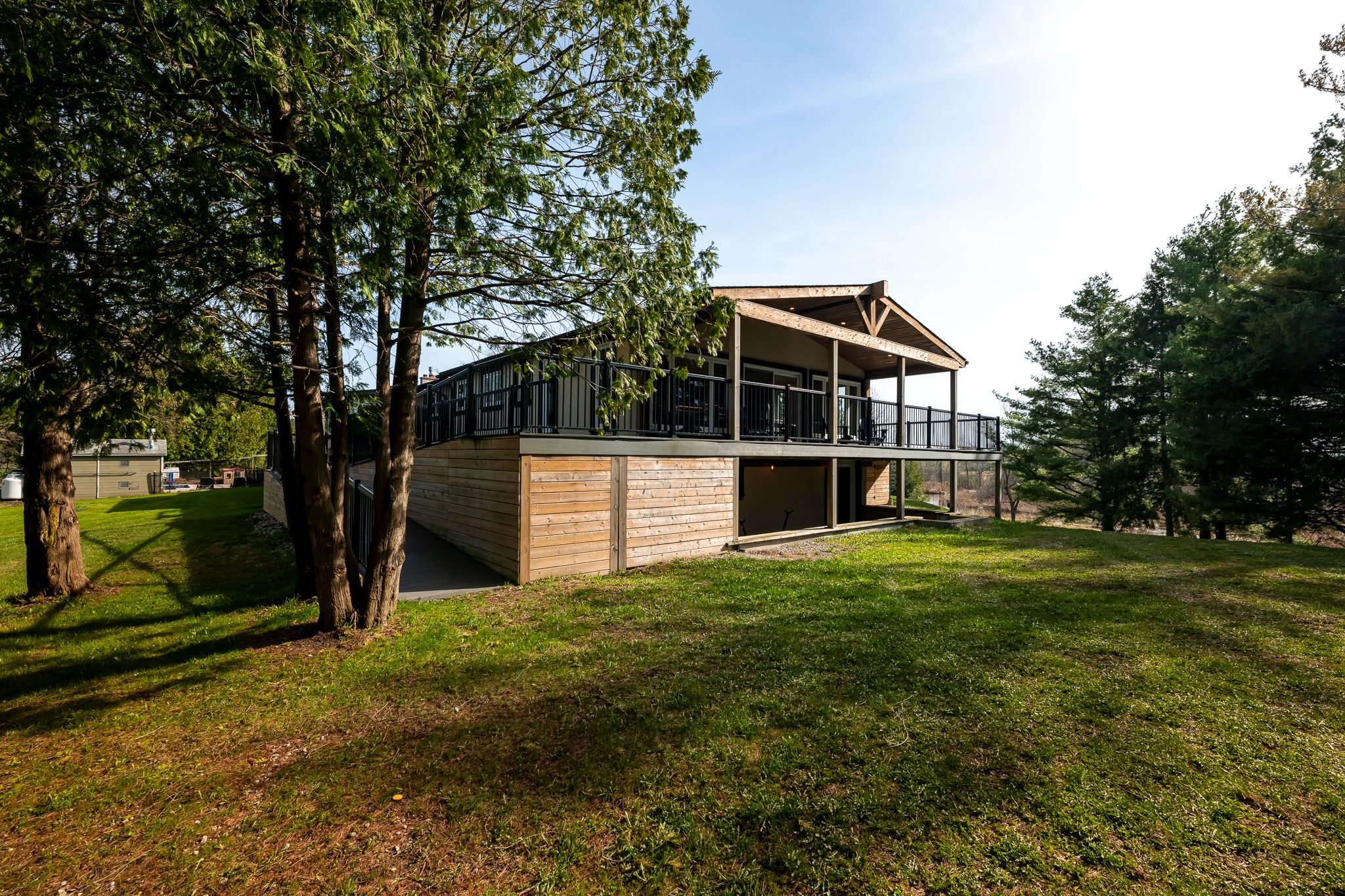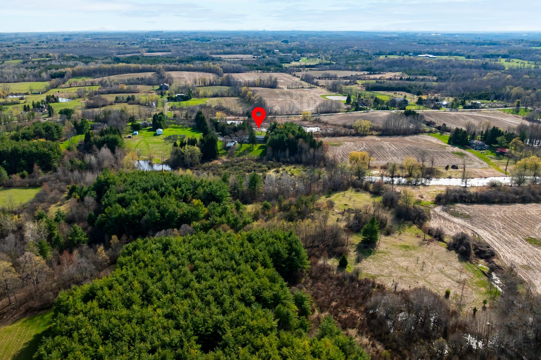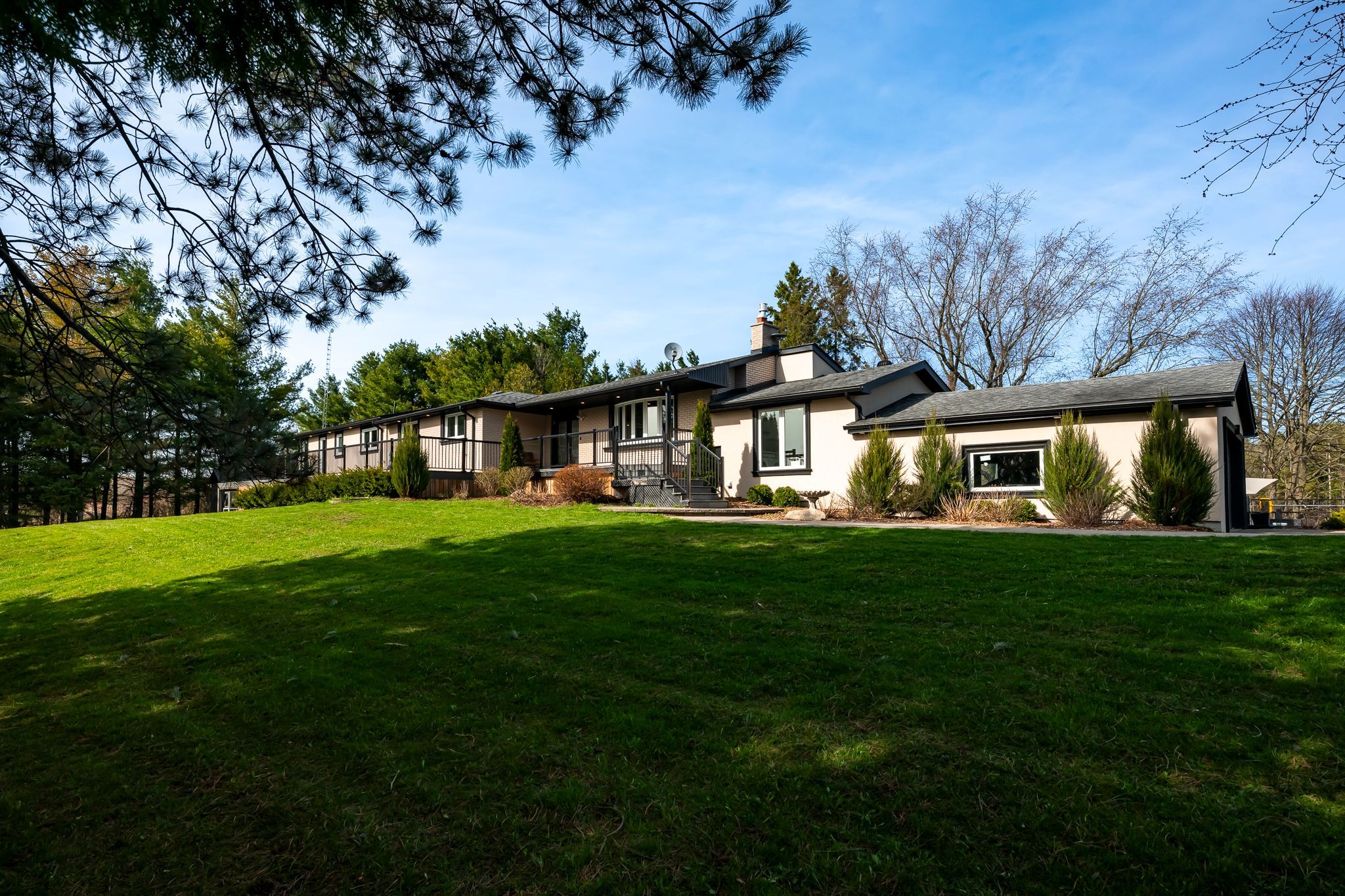 Set on a breathtaking 16-acre private estate, this fully renovated 3,000 sq ft bungalow is a rare offering where luxury, tranquility, and possibility converge. Designed for elevated living, the home features soaring cathedral ceilings, exposed beams, and expansive light-filled spaces that create an atmosphere of warmth and sophistication. Two full kitchens, including a beautifully appointed main floor in-law suite, offer seamless flexibility for multi-generational living or refined guest accommodations. A serene sunroom provides the perfect setting for slow mornings and peaceful views of the surrounding landscape. Outdoors, the experience is exceptional. Entertain or unwind beside the heated in-ground pool, enjoy the calm of a private pond with fountain, or explore scenic walking trails throughout the property. The heated and insulated 30x50 workshop offers endless potential for business, hobbies, or premium storage. The fully finished walkout basement adds further versatility, featuring a custom walk-in closet with island and a dedicated potting room with ventilation and drainage, thoughtfully designed for function and lifestyle. Wrapped in privacy yet designed for connection, this is more than a home, it is a legacy property offering space to live, create, and escape.