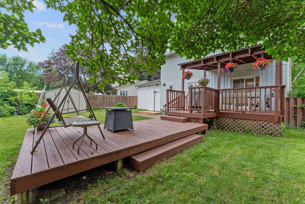 • Large backyard deck and fenced yard perfect for outdoor activities.