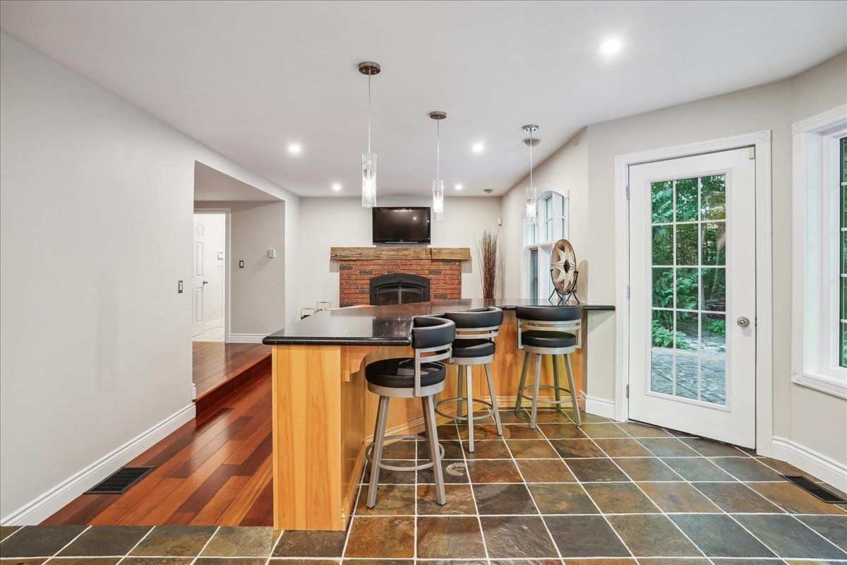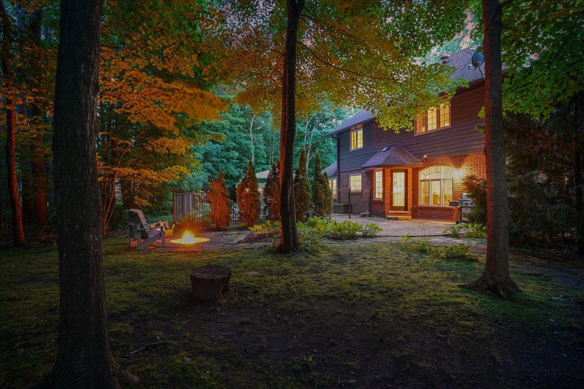 Discover a sophisticated retreat in the heart of pottawatomi village, just minutes from owen sound. This stunning two-storey brick home is a true labour of love, meticulously updated by owners who have infused every corner with warmth and high-end style. The main floor balances productivity and play, featuring a bright, dedicated office alongside a showstopping brubacher designed kitchen. With sleek quartz countertops and premium stainless steel appliances, the kitchen flows naturally into a fireside sitting room, the ultimate spot for slow mornings and cozy evenings. The luxury continues upstairs in the primary suite, a private sanctuary boasting a walk-in closet and a spa-like ensuite with a classic clawfoot tub. Two additional bedrooms and a finished basement, that's ready for movie marathons, a home gym, or even a fourth bedroom, there's plenty of room for your life to grow. Throughout the home, gleaming cherry hardwoods and slate tiles are bathed in natural light, creating an atmosphere that is both polished and incredibly inviting. The backyard is a private, ravine-backed resort designed for effortless entertaining. Spend your summers lounging by the heated inground pool or hosting alfresco dinners on the patio. As the sun sets, the pool's integrated lighting and the crackling firepit transform the yard into a chic, starlit lounge. Blending sophisticated design with a heartfelt touch, this rare gem offers an unparalleled lifestyle in one of the region's most sought-after communities.