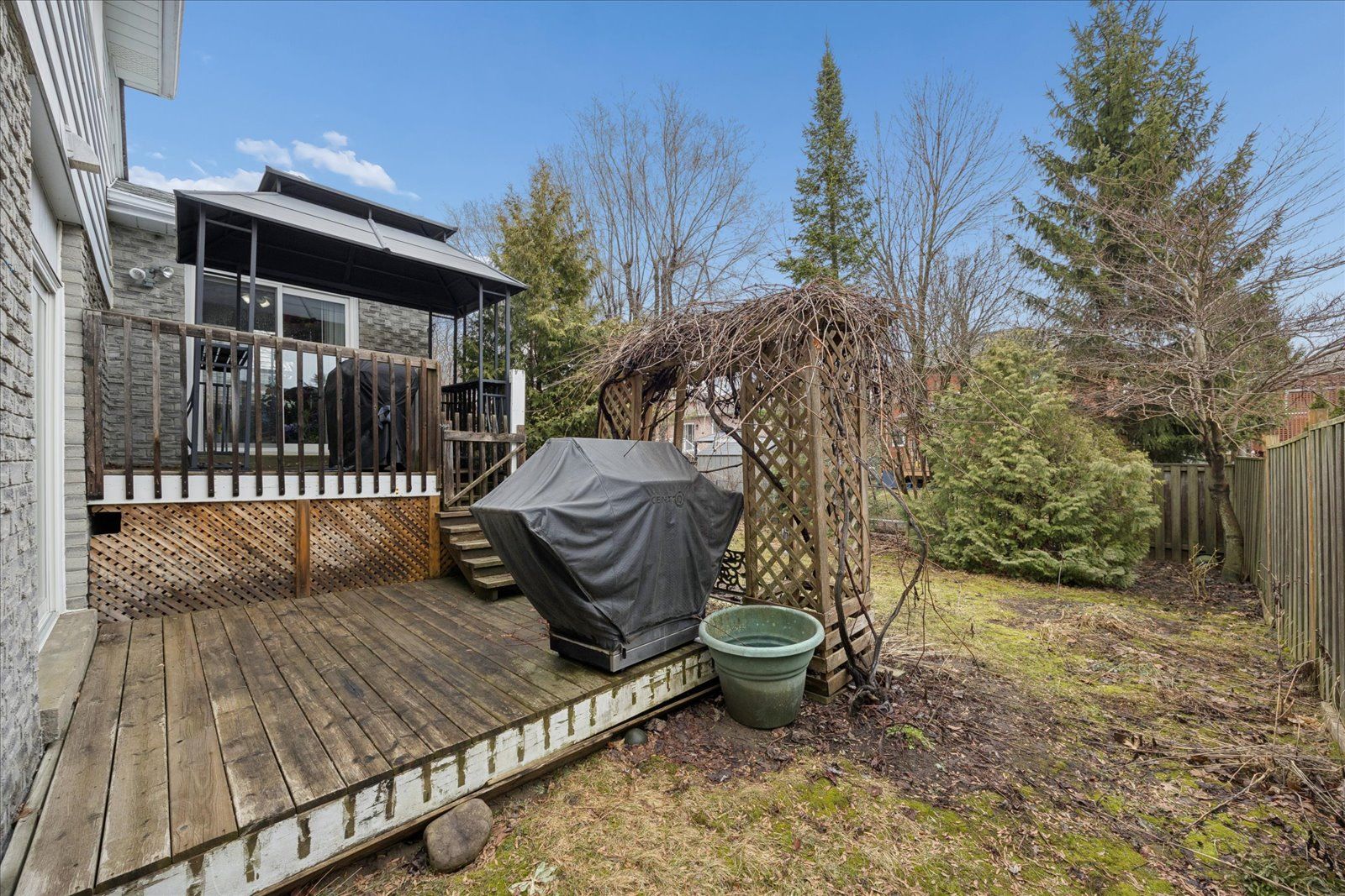 • Mature, fenced backyard with perennials and a large deck for entertaining.