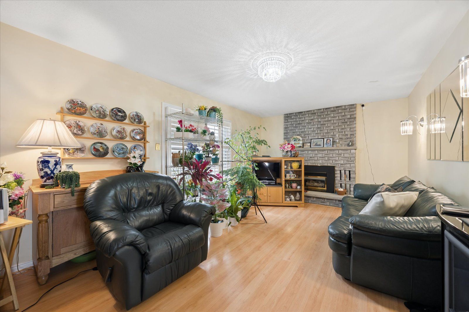 • Cozy family room featuring a classic gas fireplace for comfort.