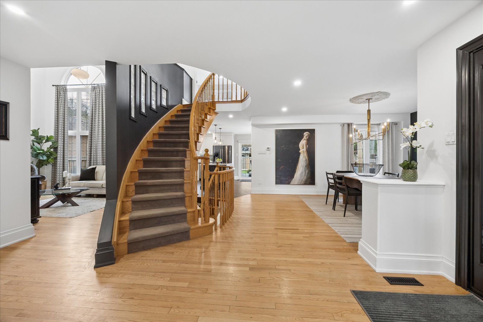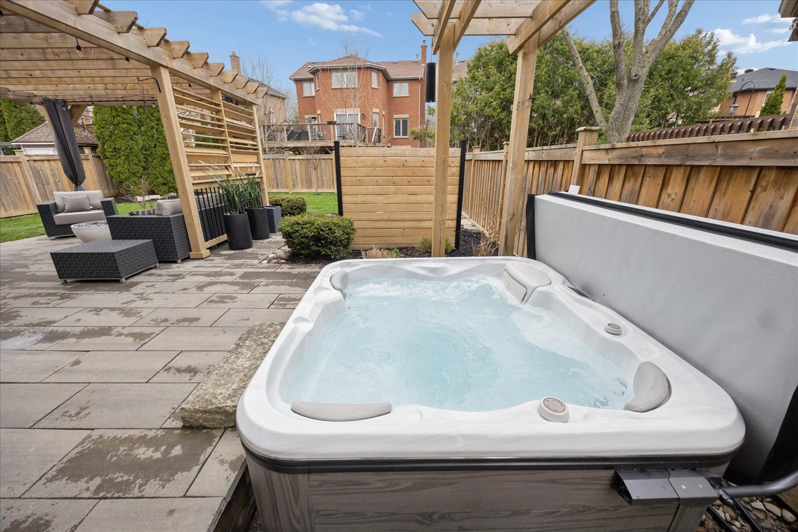 Welcome to this stunning executive home nestled on a quiet court in one of aurora's most desirable neighbourhoods. Showcasing true pride of ownership, this beautifully maintained 4-bedroom, 4-bathroom property offers an exceptional blend of space, style, and thoughtful upgrades throughout. The open-concept main floor is designed for both everyday living and entertaining, featuring a spacious living room and an impressive family room with soaring cathedral ceilings and a gorgeous custom gas fireplace. The updated kitchen offers modern finishes, a bright breakfast area with custom cabinetry, and a convenient walk-out to the patio-seamlessly connecting indoor and outdoor living. Upstairs, you'll find generously sized bedrooms, including a luxurious primary retreat complete with a newly renovated, spa-like ensuite bath complete with heated floors. Additional updates include a renovated main floor powder room with custom vanity, main floor mud room with garage access, side door access and california closets built-ins, updated doors and trim work throughout and renovated laundry room. The fully finished basement provides additional living space with a rough-in for a wet bar-perfect for future customization and three piece bathroom. Step outside to your professionally landscaped backyard oasis, complete with a pergola and new hot tub-ideal for relaxing or entertaining. The property also features a repaved four-car driveway (2023) with no sidewalk, an in-ground sprinkler system, upgraded r60 attic insulation, and a recently replaced air conditioner (2025). Located on a quiet cul-de-sac just steps to walking trails, parks, schools, and transit, this exceptional home offers the perfect combination of luxury, comfort, and convenience. A rare opportunity not to be missed!