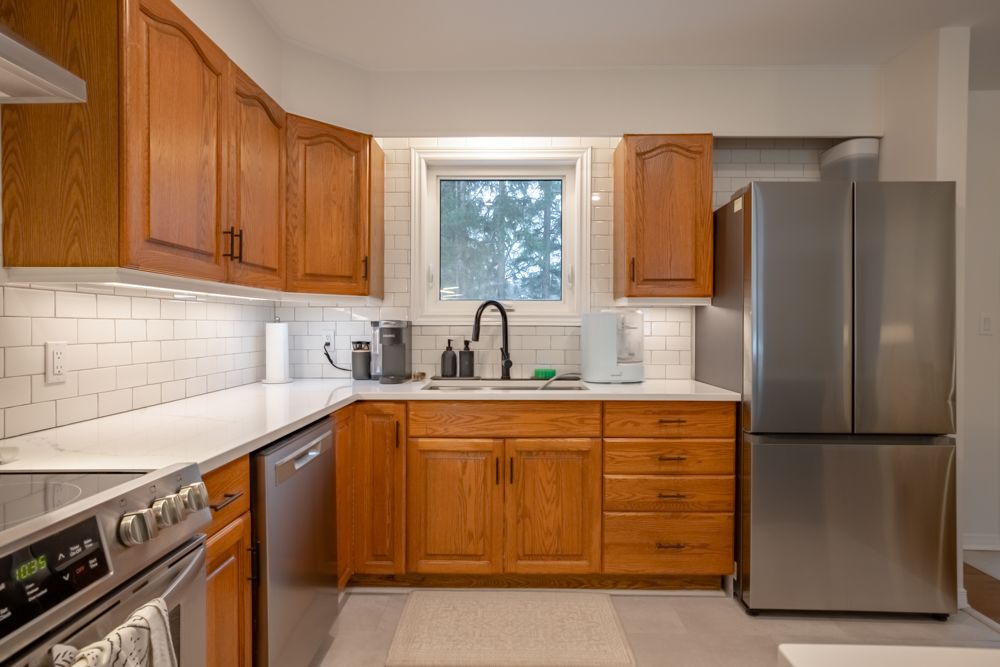 123 burleigh rd, ridgeway. Where nature, tranquility, and modern comfort meet. Surrounded by the peace and quiet of life near the lake, this radiant ridgeway raised bungalow invites you to enjoy a lifestyle wrapped in nature. Just steps from the shoreline, this home is ideal for those who crave the outdoors without sacrificing comfort or convenience. Solid raised bungalow with 2 bedrooms on the main level and a 3rd bedroom in the walk-up lower level, two beautifully updated full bathrooms, one on each level - perfect for families or guests. Massive recreation room offering endless possibilities for entertaining or cozy nights in covered back deck to enjoy breathtaking views all year round. Spring blooms, summer sun, fall colours, and winter serenity. Private, fully fenced backyard featuring towering mature trees and a charming stone fire pit, walk-up lower level providing convenience, natural light, and potential for separate access. Step into a yard designed for relaxation and connection with nature - from quiet mornings with coffee on the deck to evenings around the fire. With the lake only moments away, you'll love the blend of fresh air, greenery, and peaceful ambiance. Major updates & investments. This home has been thoughtfully upgraded with over $70,000 in improvements, including: brand-new kitchen - $30,000 , new fridge & dishwasher - $2,500 new bathroom countertops (both bathrooms) - $2,00 fresh paint throughout (upstairs & downstairs bedroom, foyer, bathroom) - $5,000 new blinds - $1,000 new furnace & ac - $10,000 front landscaping overhaul - $23,000 every update has been completed to offer you comfort, confidence, and stylish modern living. Your nature-inspired lifestyle awaits at 123 burleigh rd. Homes like this- combining location, upgrades, and warmth - don't come often. Book your private showing today