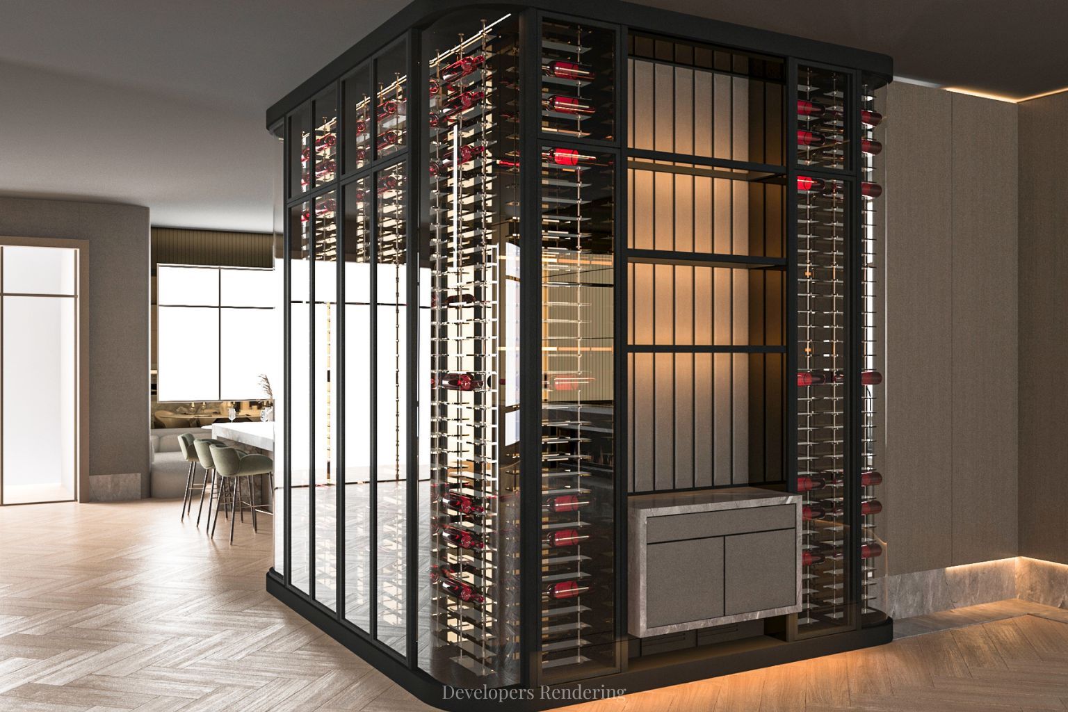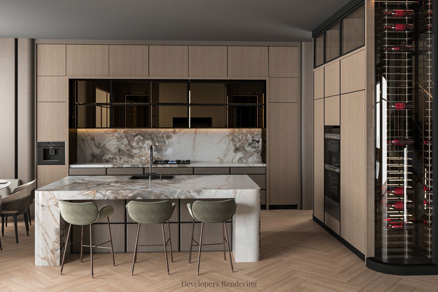 • Chef's kitchen and butler's kitchen with premium Miele appliances.