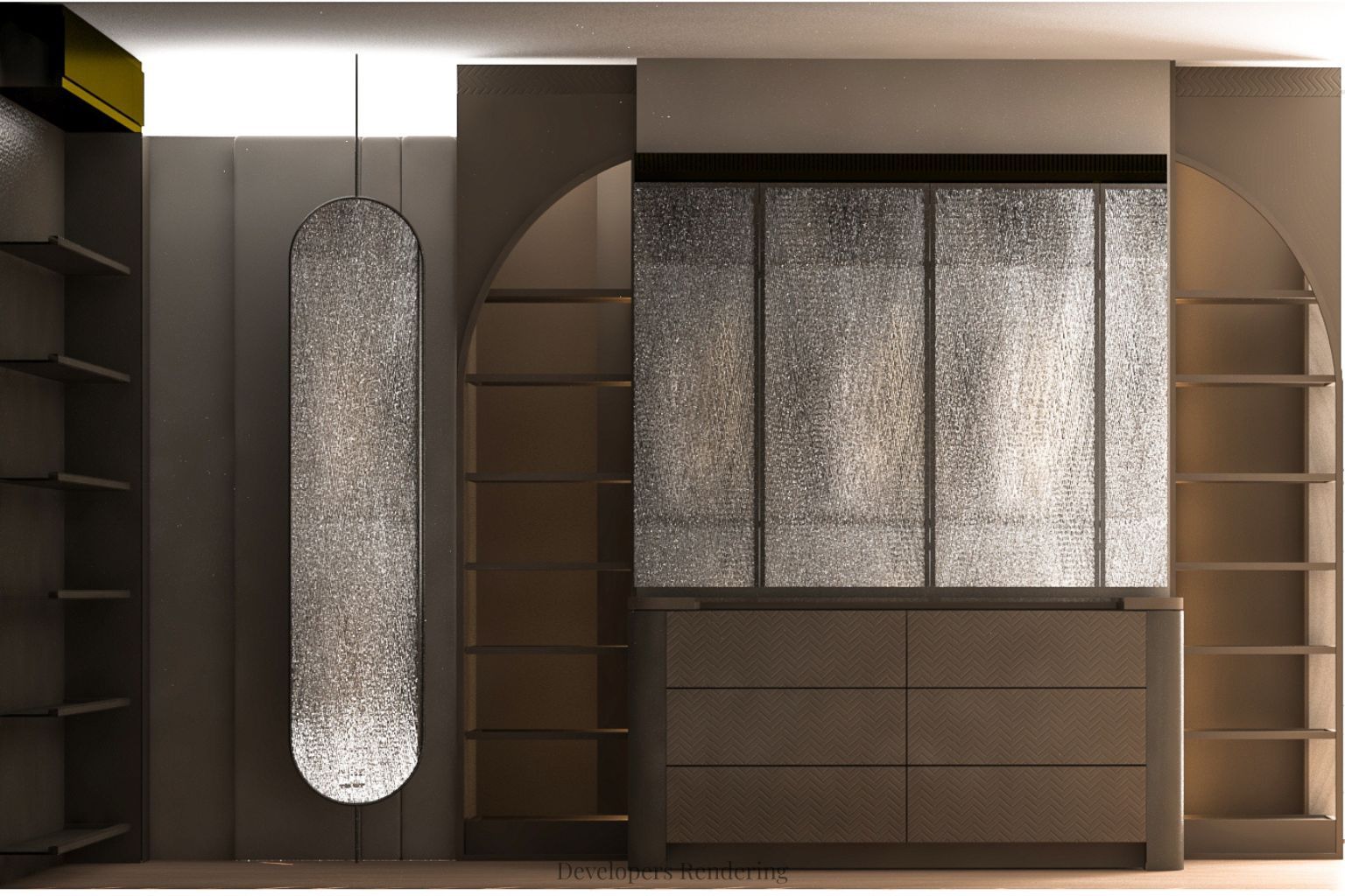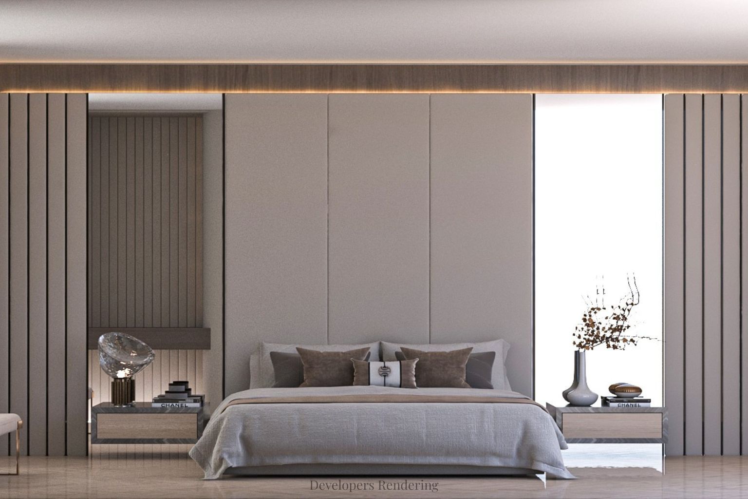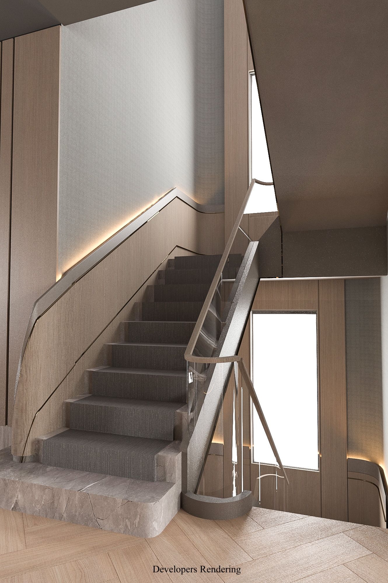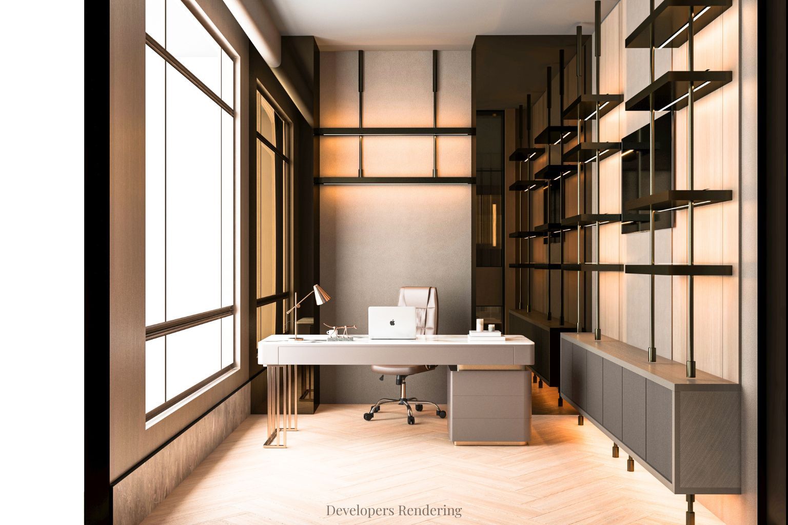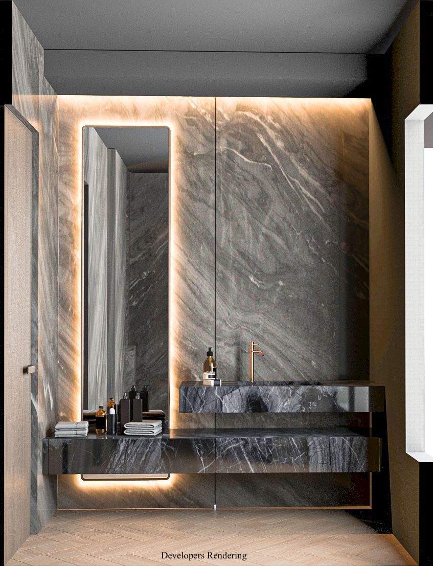 • Elevator access and 12-foot ceilings enhance the home's spacious feel.
