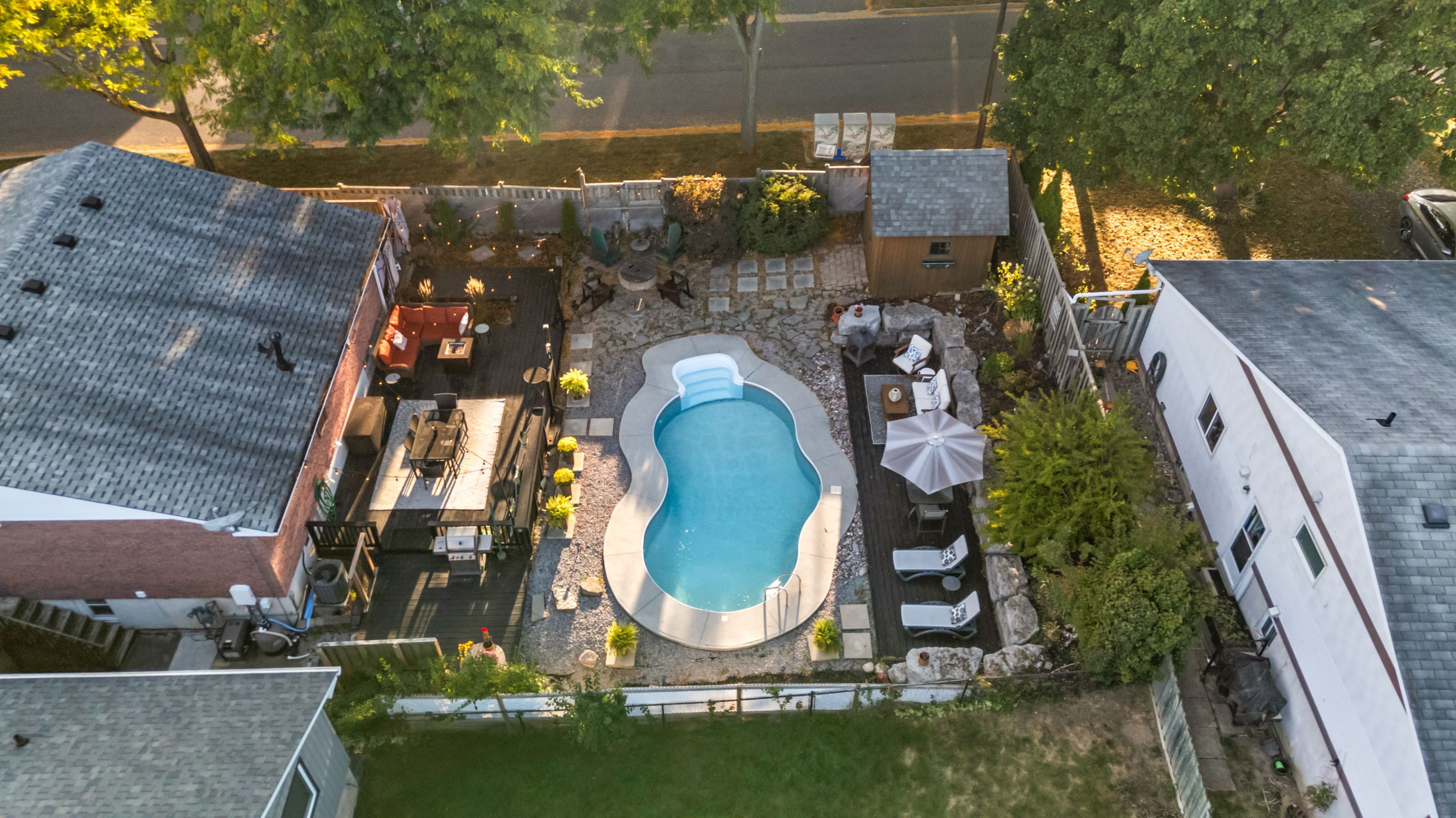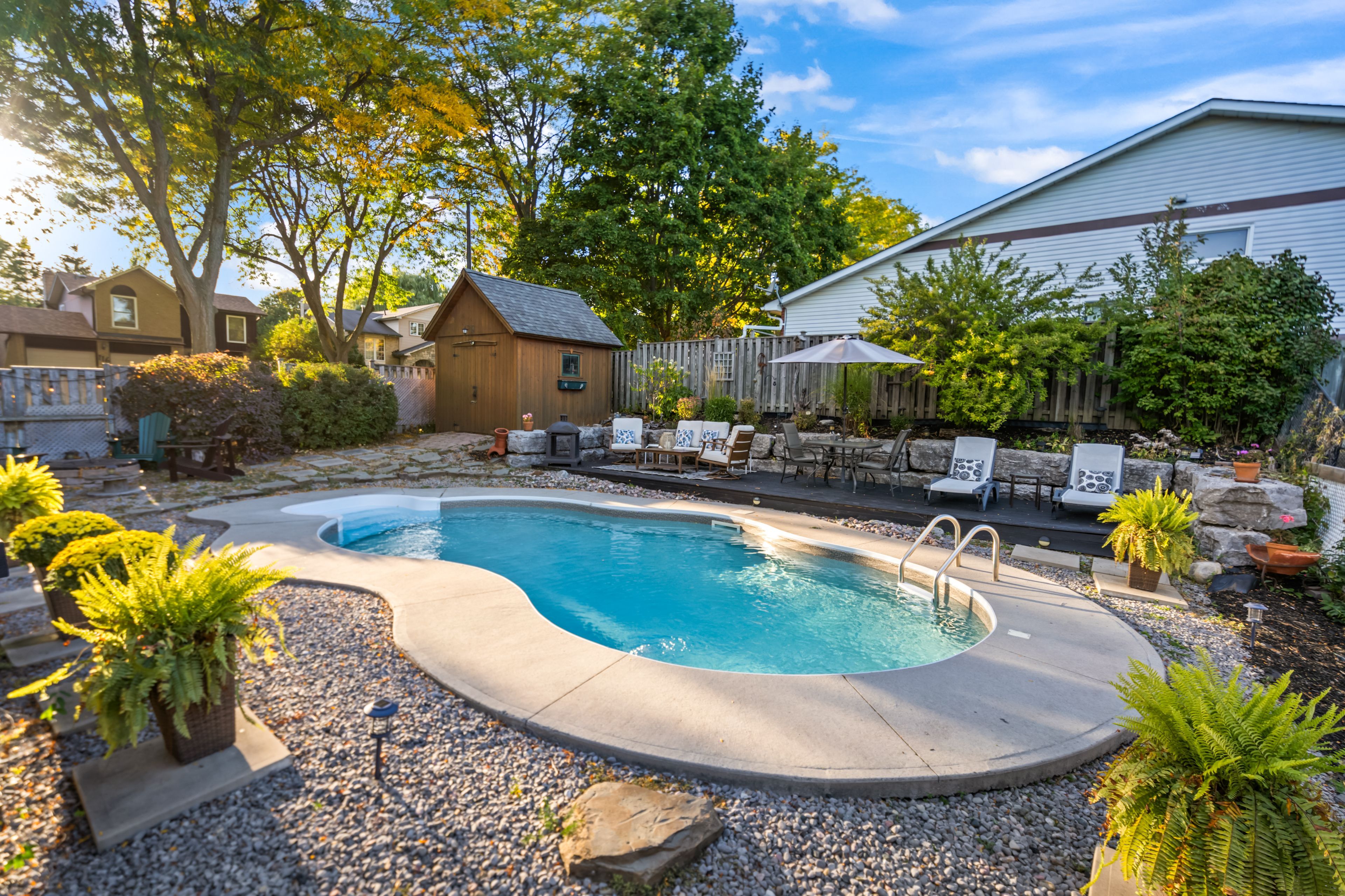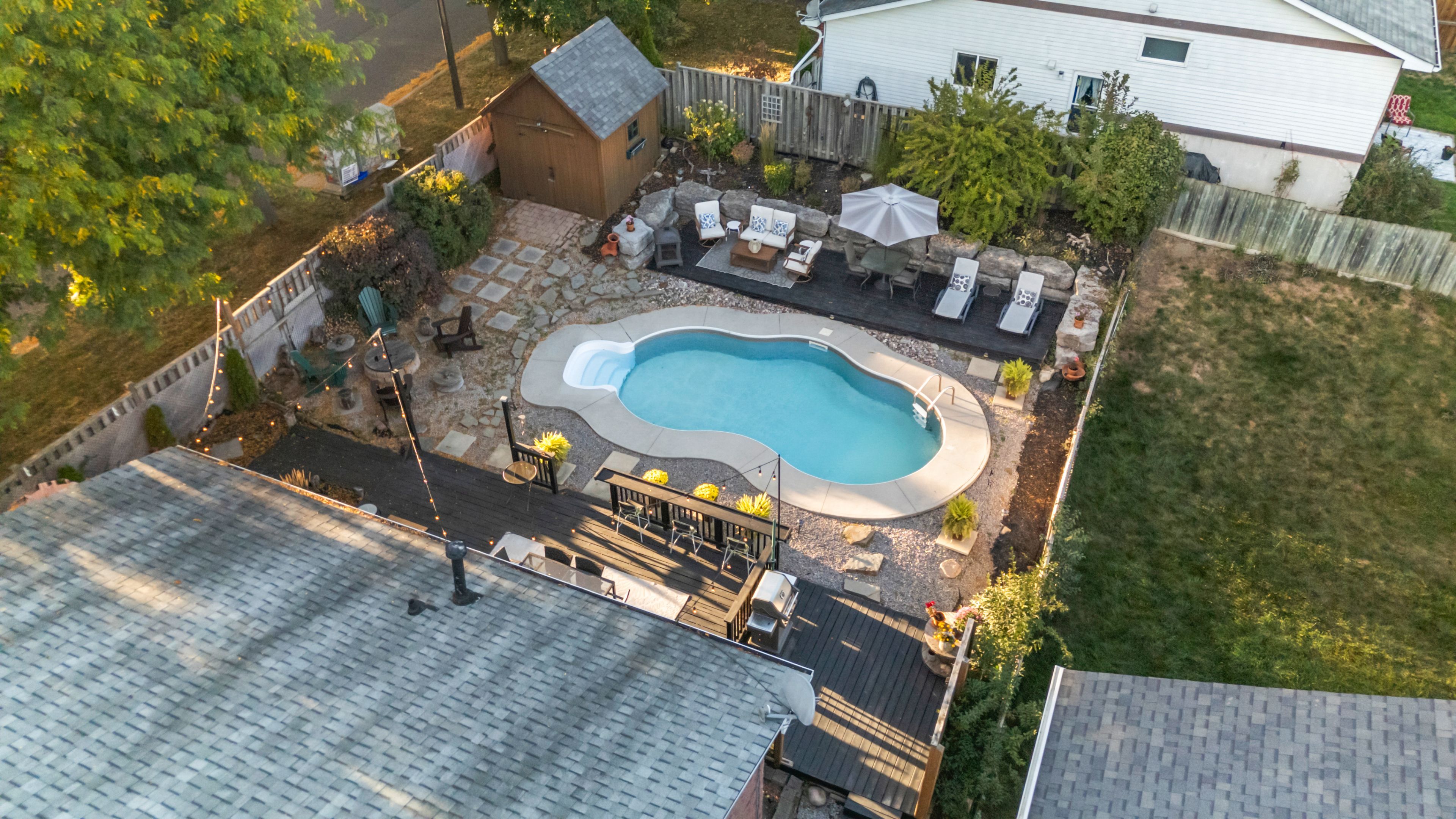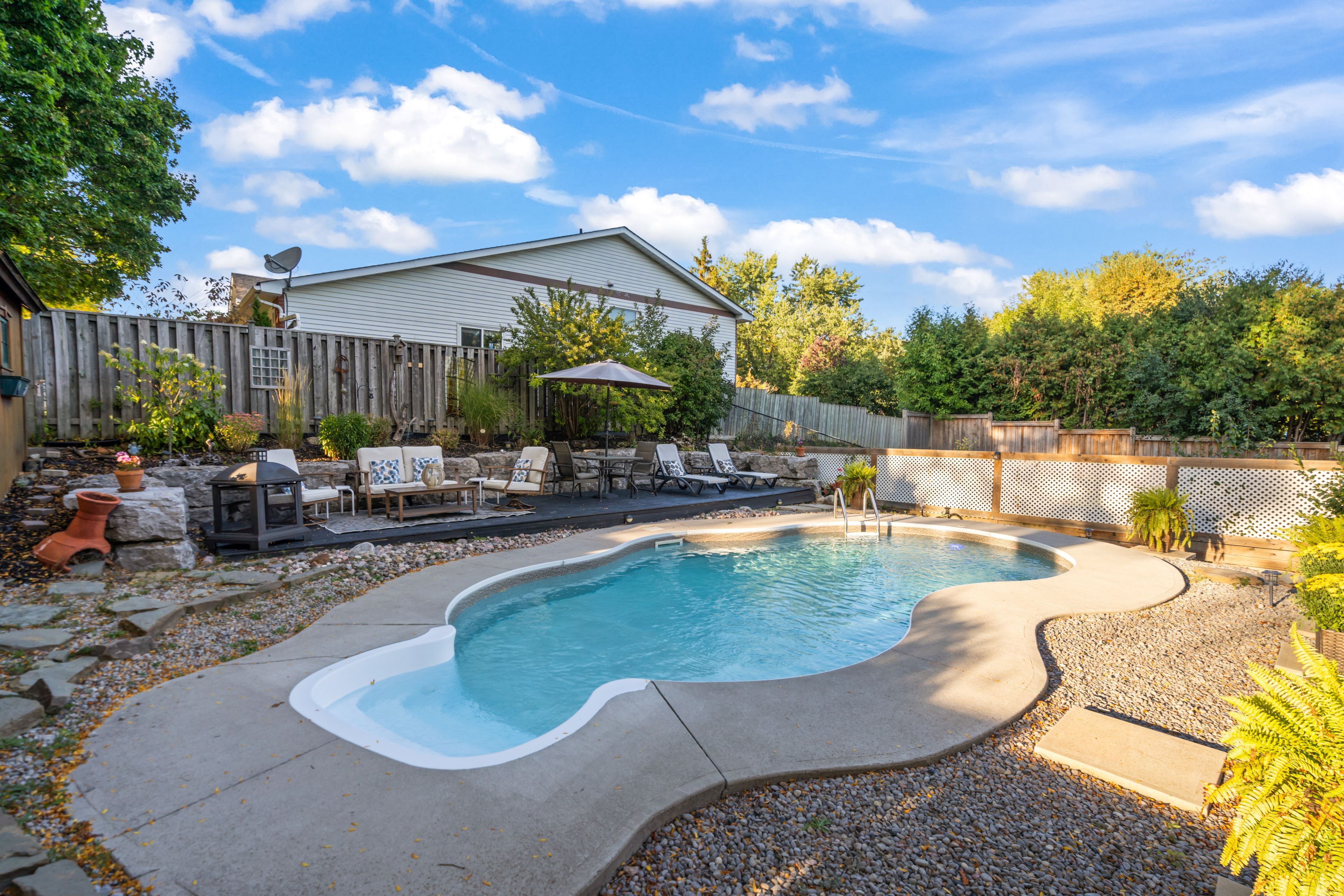 Location, location, location! This stunning three-bedroom raised bungalow is perfectly situated in whitby's sought-after lynde creek neighbourhood, offering style, comfort, and thoughtful upgrades throughout. The beautifully renovated kitchen showcases beechwood cabinetry, marble backsplash, quartz countertops, pantry with pullouts, and convenient pots-and-pans drawers, with a walkout to the deck for effortless entertaining. Gleaming hardwood floors flow across the main level, while the finished lower level features a welcoming recreation room with fireplace, a fourth bedroom, updated bath, large workshop, and direct garage access. Step outside and discover an entertainer's dream backyard - a private oasis designed for year-round enjoyment. The professionally landscaped yard boasts an inground heated (natural gas) saltwater pool, expansive decking with multiple seating areas, a natural gas bbq, cozy fire table, and a soft tub plug-and-play hot tub, creating the perfect retreat for relaxing or hosting family and friends. This home has been meticulously maintained with an array of impressive improvements: an owned tankless water heater (2019/20), the saltwater pool installed in 2019 by scovie pools with a new pump (2024) and heat exchanger (2025), gemstone programmable led exterior lights (2023), and a new central vacuum system (2024). Additional upgrades include a direct gas line for the bbq, professional attic remediation with certificate (2024) completed prior to a full bathroom renovation, refreshed front steps (2025), and a durable roof, furnace, and air conditioner (all 2016). With its exceptional features, modern comforts, and beautifully landscaped surroundings, this move-in-ready home truly offers a slice of heaven on earth.