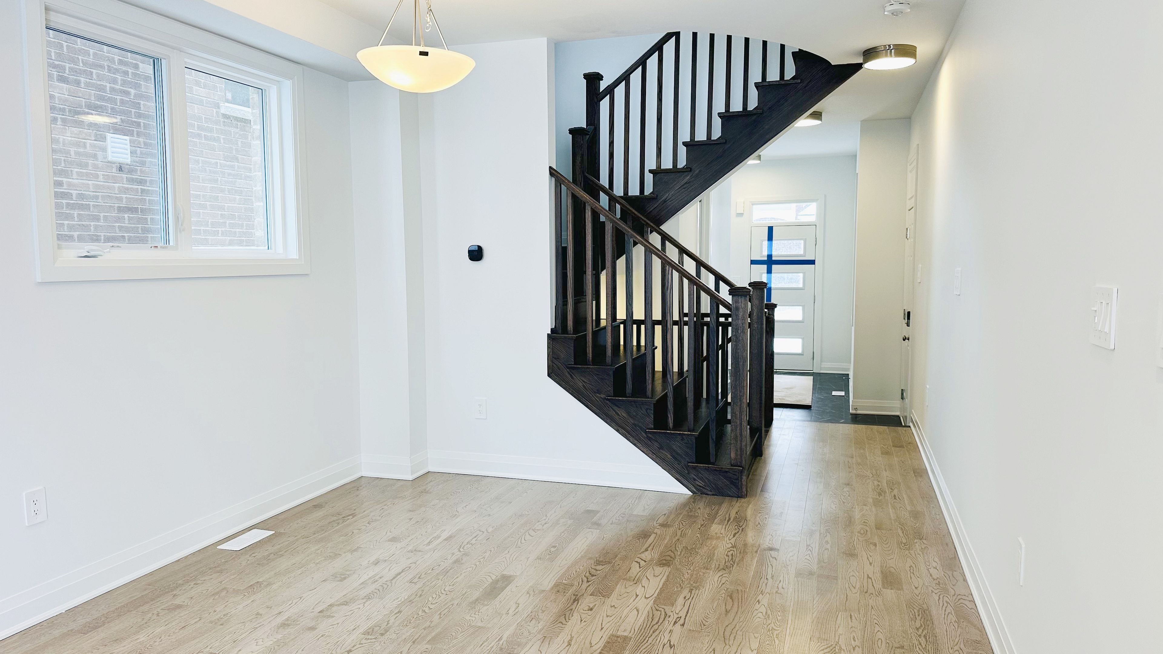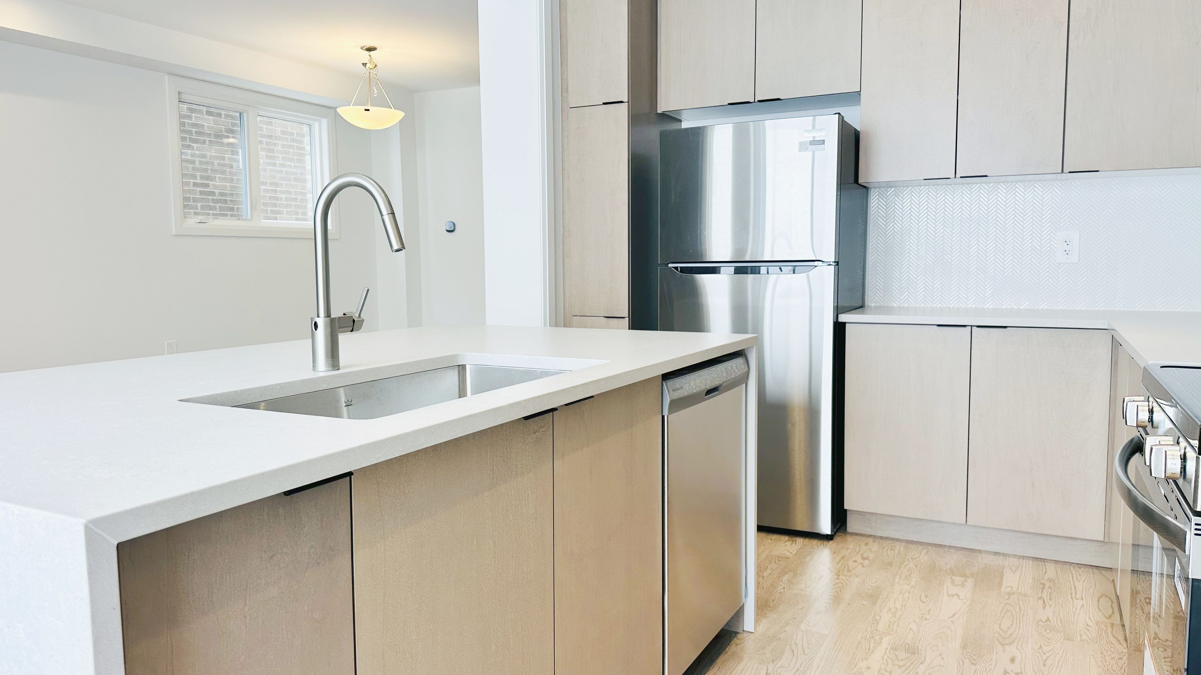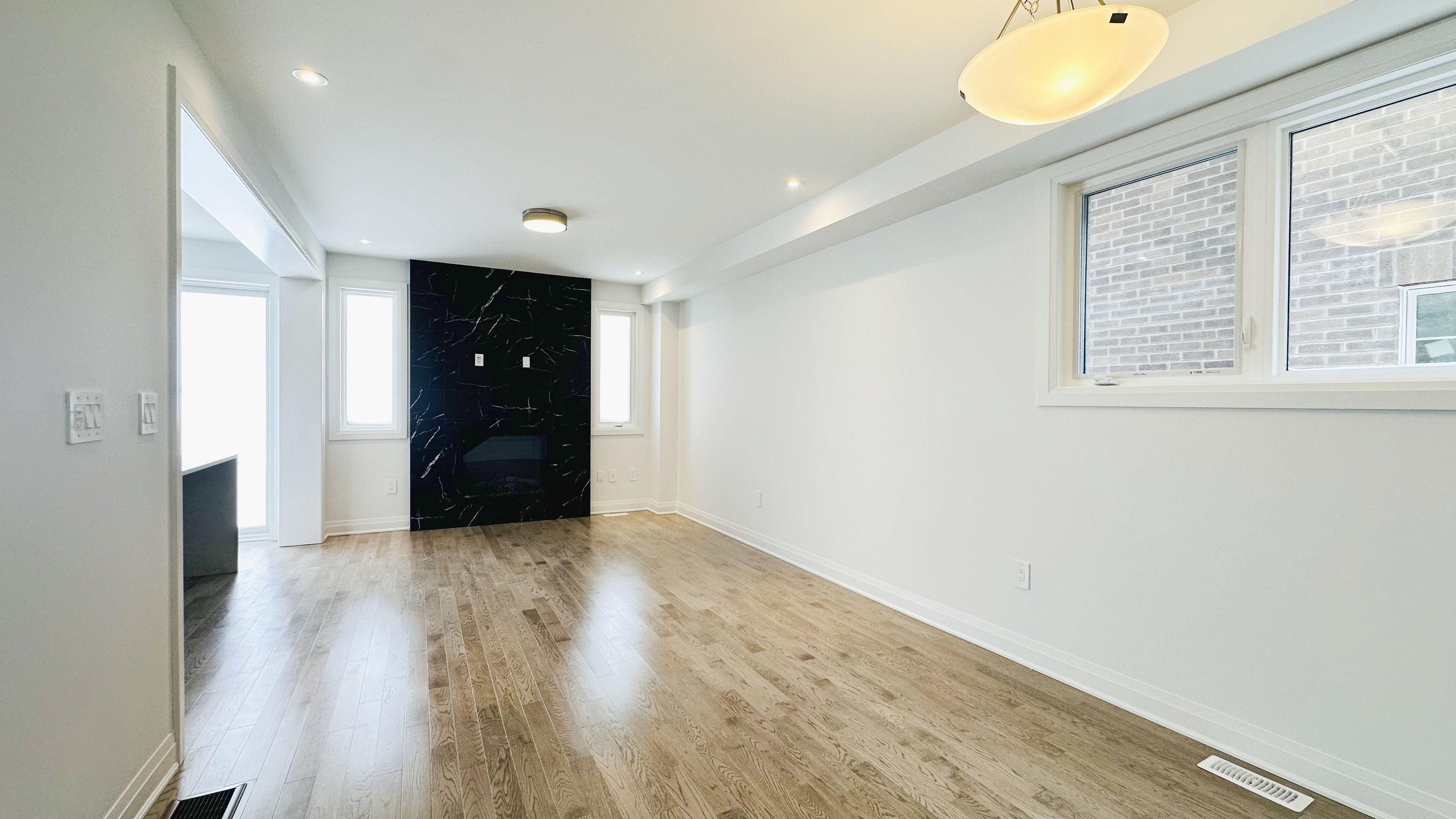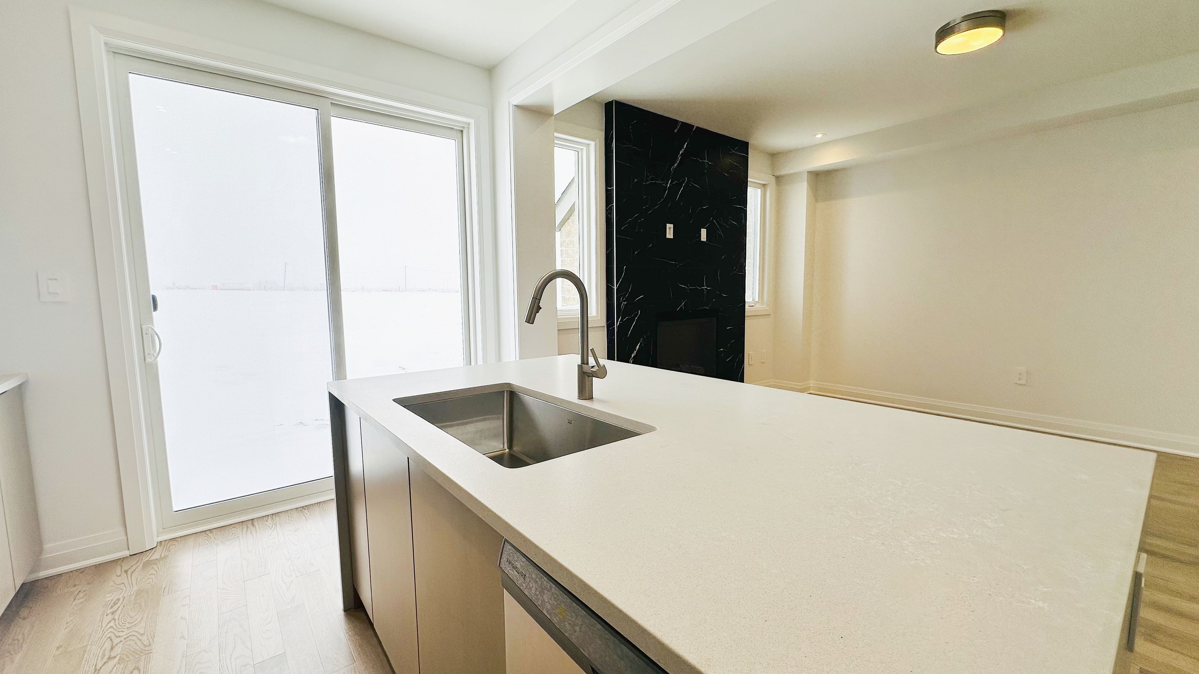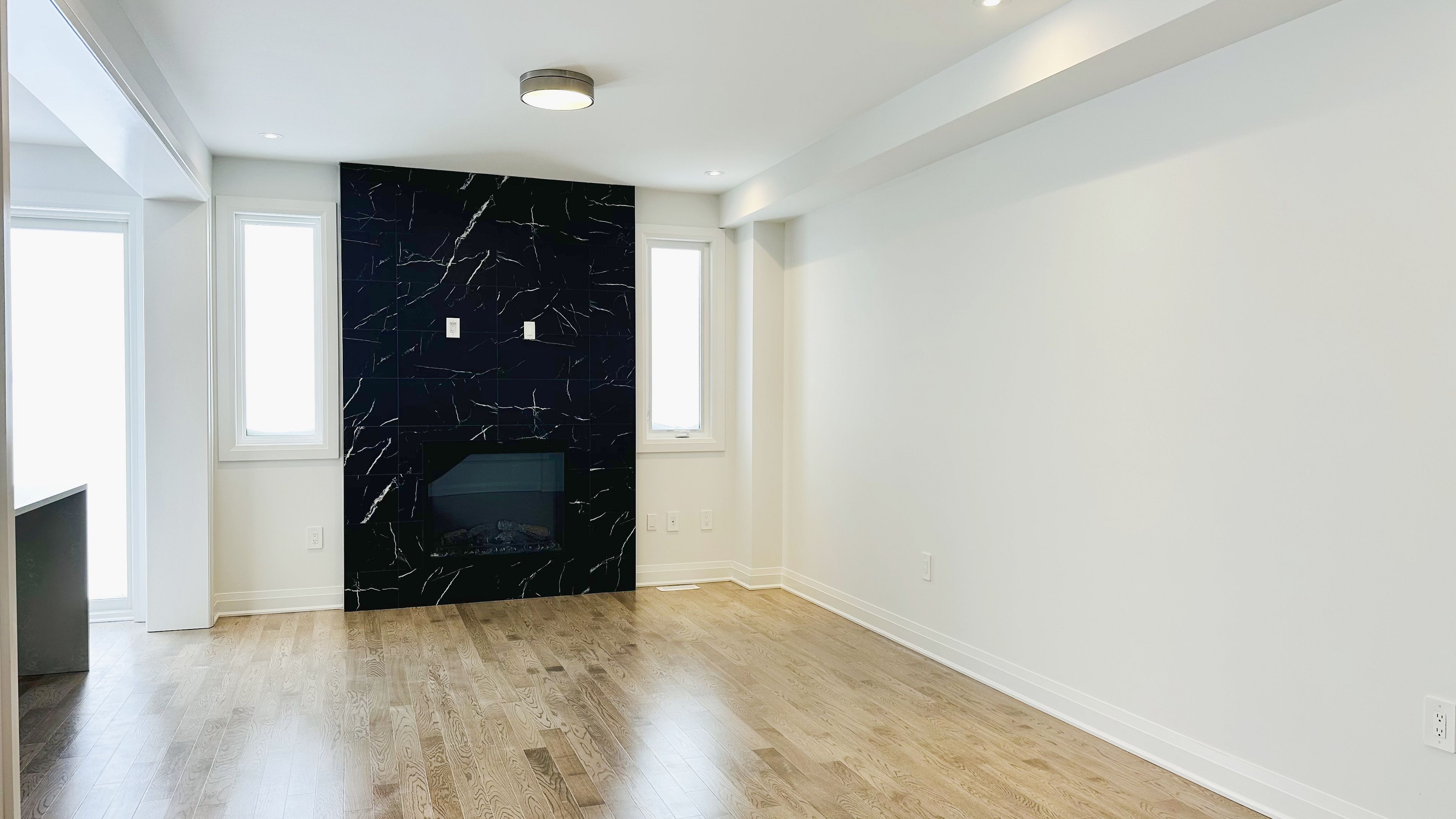 Fully upgraded 4 bed, 3 bath end-unit brand new townhome for lease. Open-concept main level with 9-ft ceilings. Modern kitchen with huge central island, stunning waterfall quartz countertops, upgraded backsplash, stainless appliances, and sleek led pot lights. Spacious family room features a dramatic black marble surround electric fireplace as the focal point. Premium finishes throughout: stained hardwood floors and stairs (no carpet), elegant primary suite with walk-in closet and ensuite featuring double sinks. Second floor offers 9-ft ceilings and 4 generously sized bedrooms. Minutes to hwy 404, top schools, shopping, parks, and transit. Move-in ready - modern luxury living awaits!