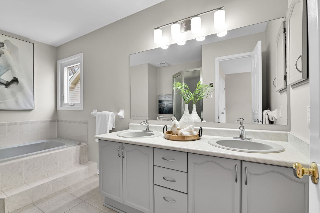• Finished basement includes fifth bedroom, ample storage, and cheater ensuite access.