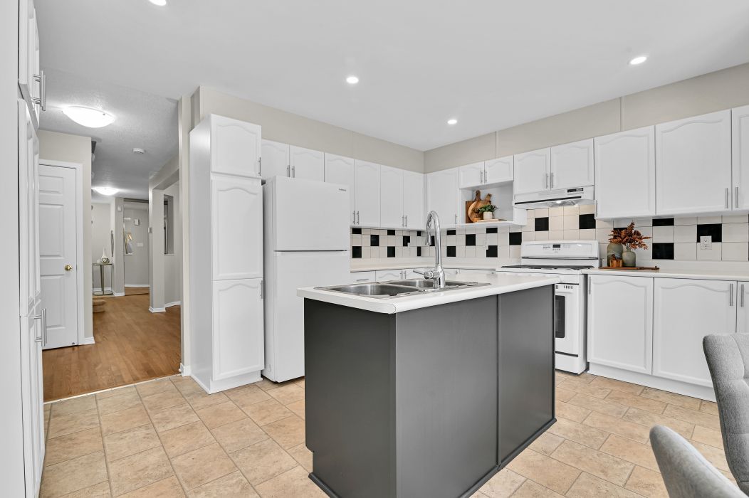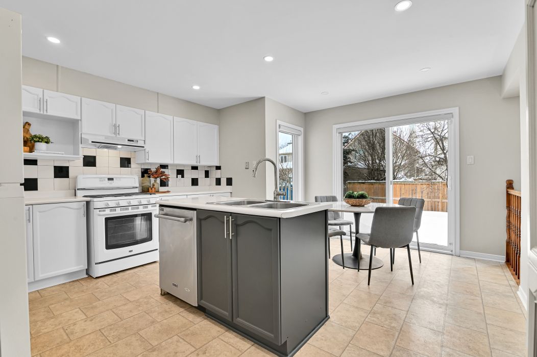 • Extended eat-in kitchen featuring a spacious island and patio doors.