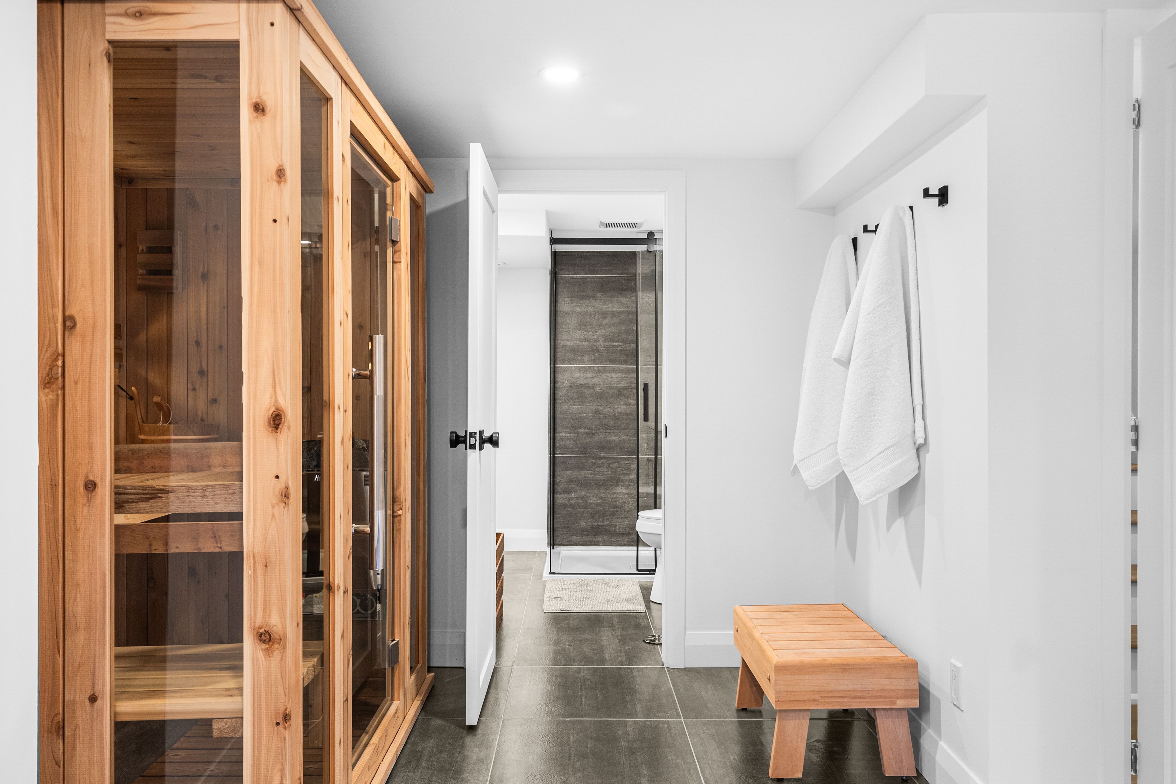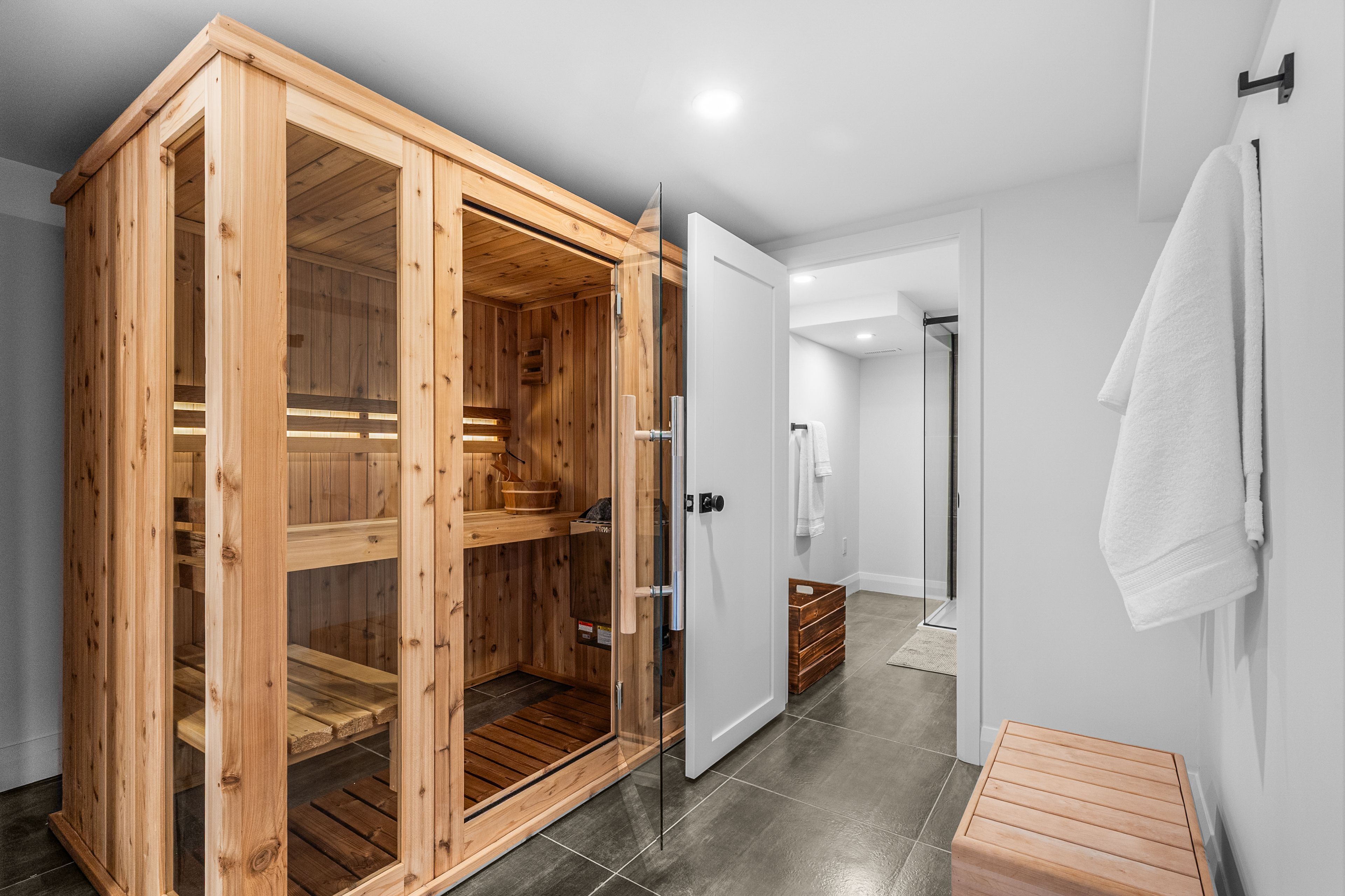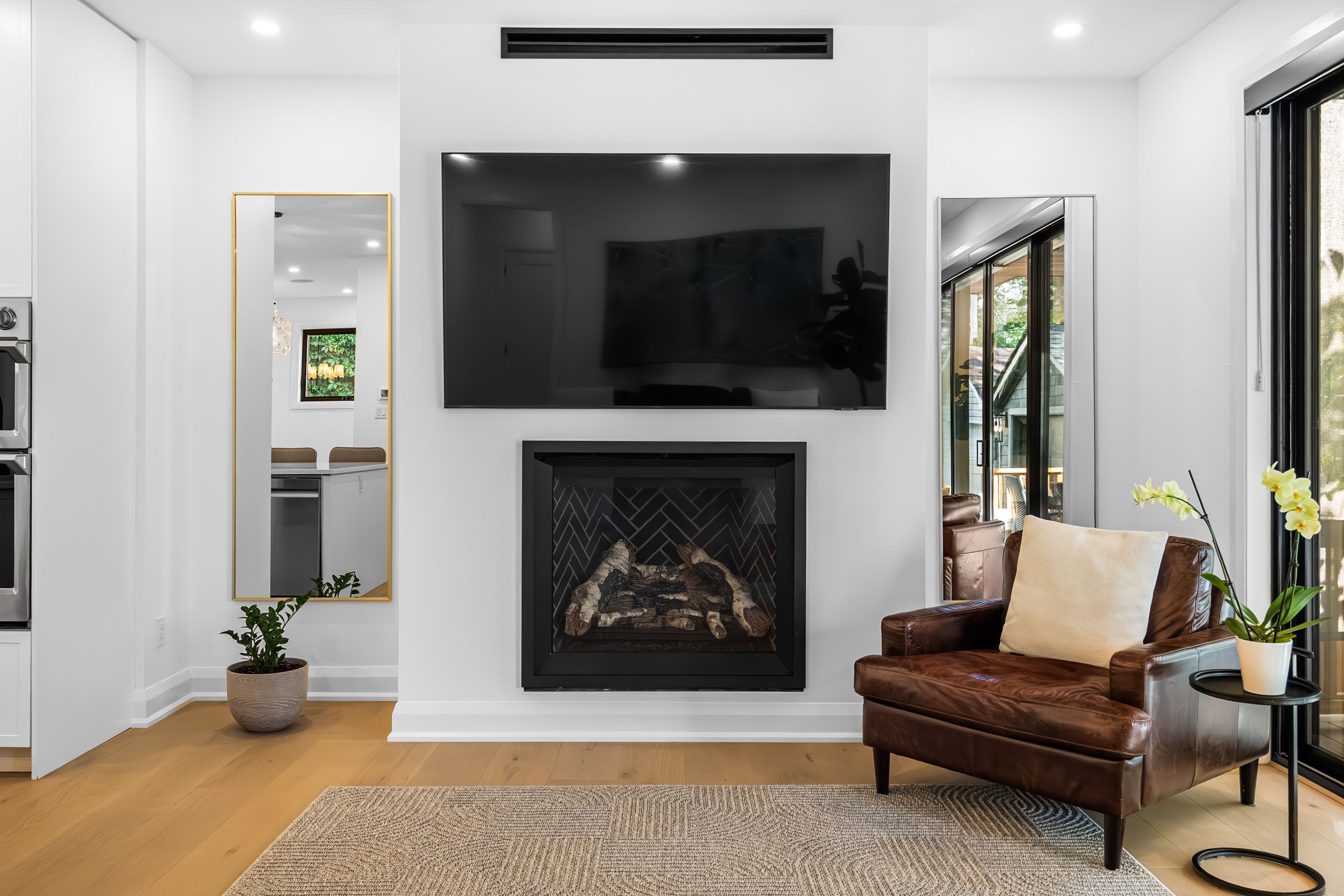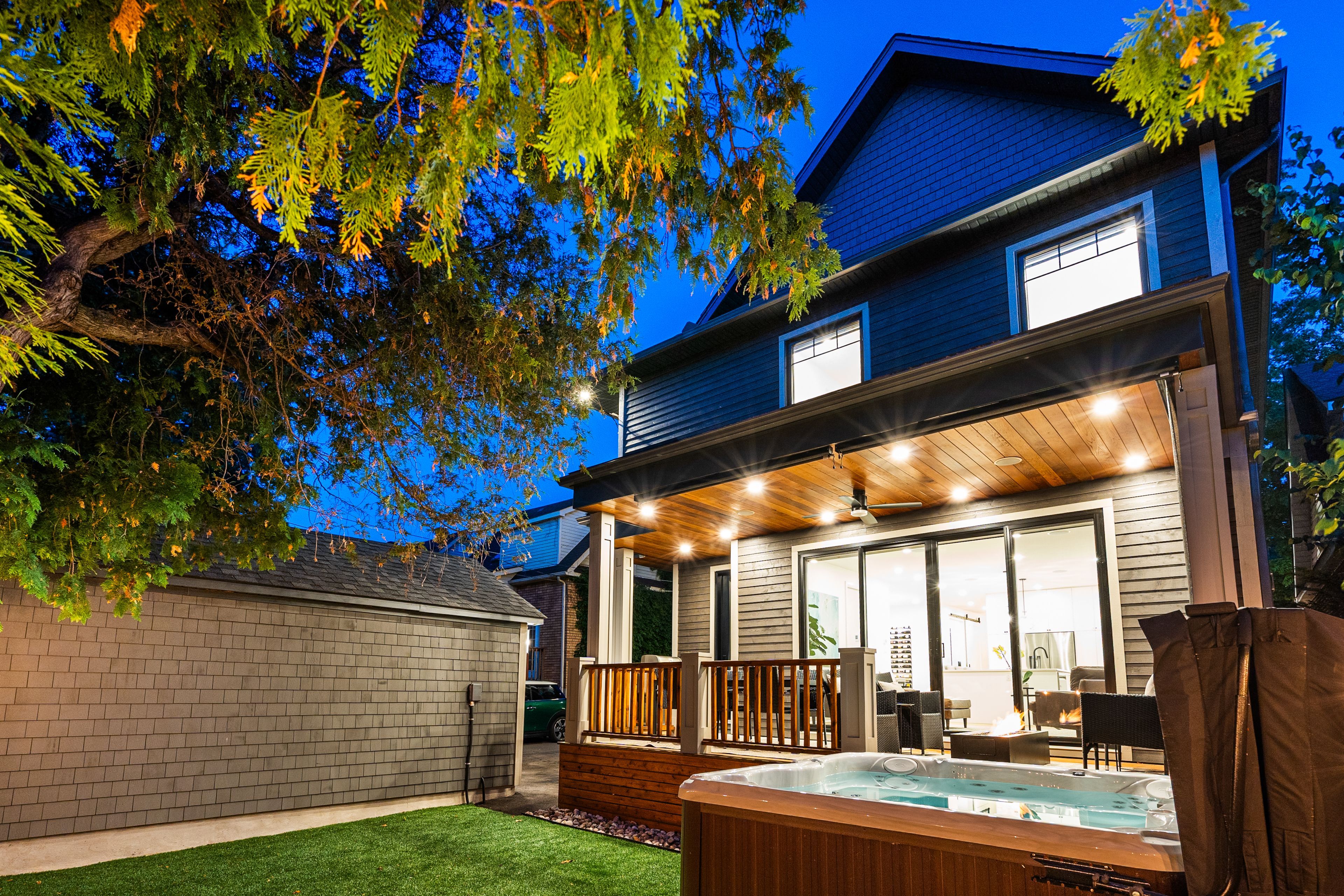 Step inside 123 mason terrace, where modern minimalism and warm scandinavian influences transform urban living into a daily retreat. Nine-foot ceilings and wide-plank white oak floors set the tone for a home that feels both expansive and grounded. The heart of the home - a custom brodie + brown kitchen - blends clean lines with thoughtful storage and premium samsung appliances, all tied together by a striking herringbone backsplash mirrored in the living room fireplace. Slide open the oversized patio doors and discover your private backyard oasis. A covered cedar deck with integrated speakers, pot lights, and solar shades for perfect summer evenings, leading to a maintenance-free yard and a luxurious hot tub under the stars. Upstairs, spa-inspired bathrooms invite you to unwind with heated floors, warm towel racks, and water closets that elevate daily rituals. Downstairs, a fully finished basement offers a flexible wellness retreat - complete with sauna, extra living space, and abundant storage. Finally a large single garage and parking for 5 vehicles and a mudroom with heated floors makes indoor to outdoor transitions effortless. Every detail at 123 mason terrace has been crafted for serene, sophisticated living - a place where quality whispers and tranquility reigns. Welcome home.