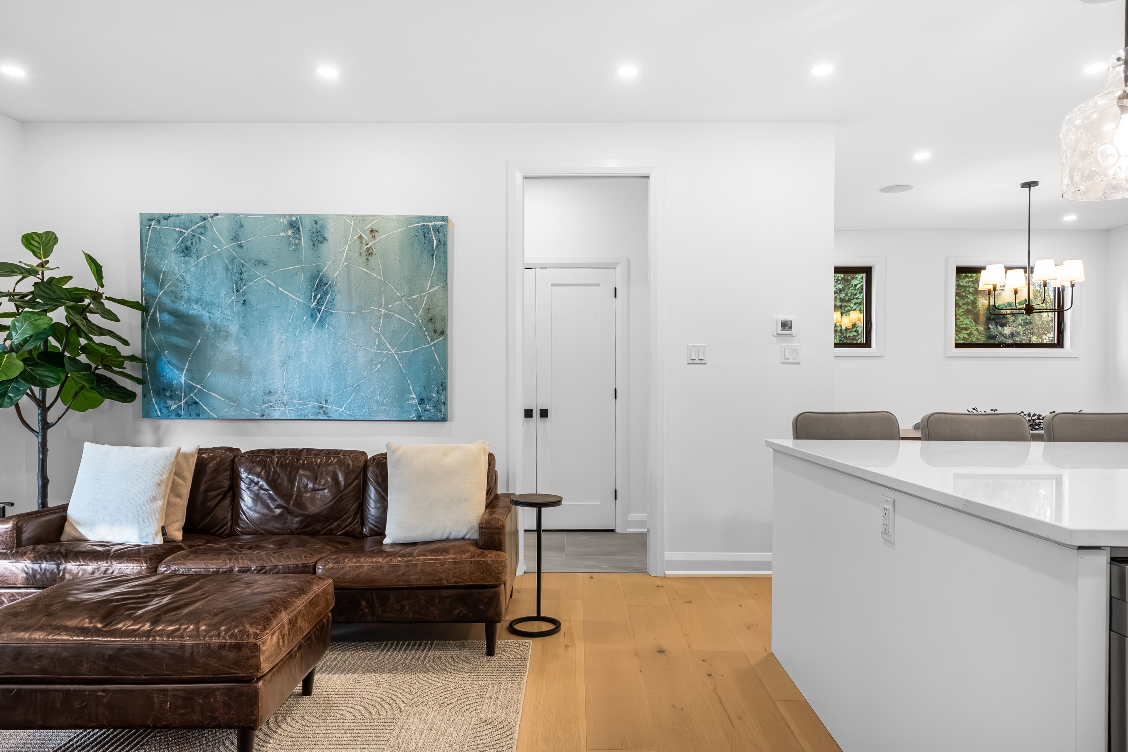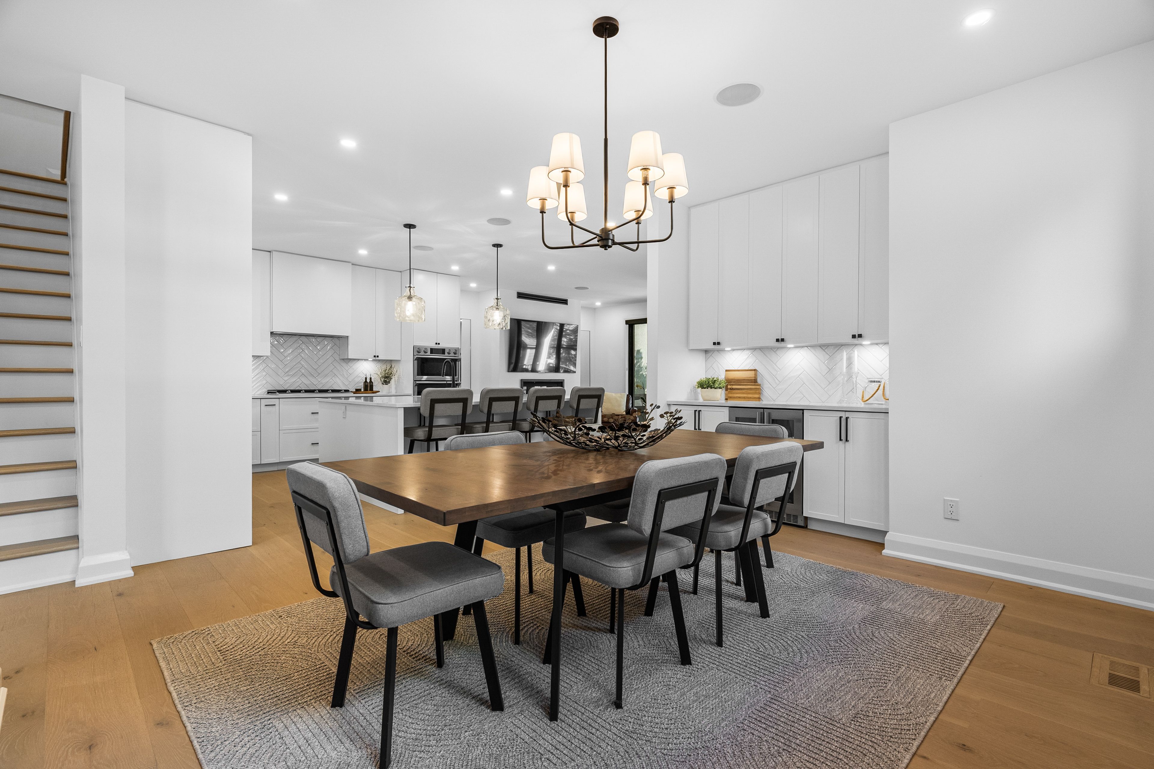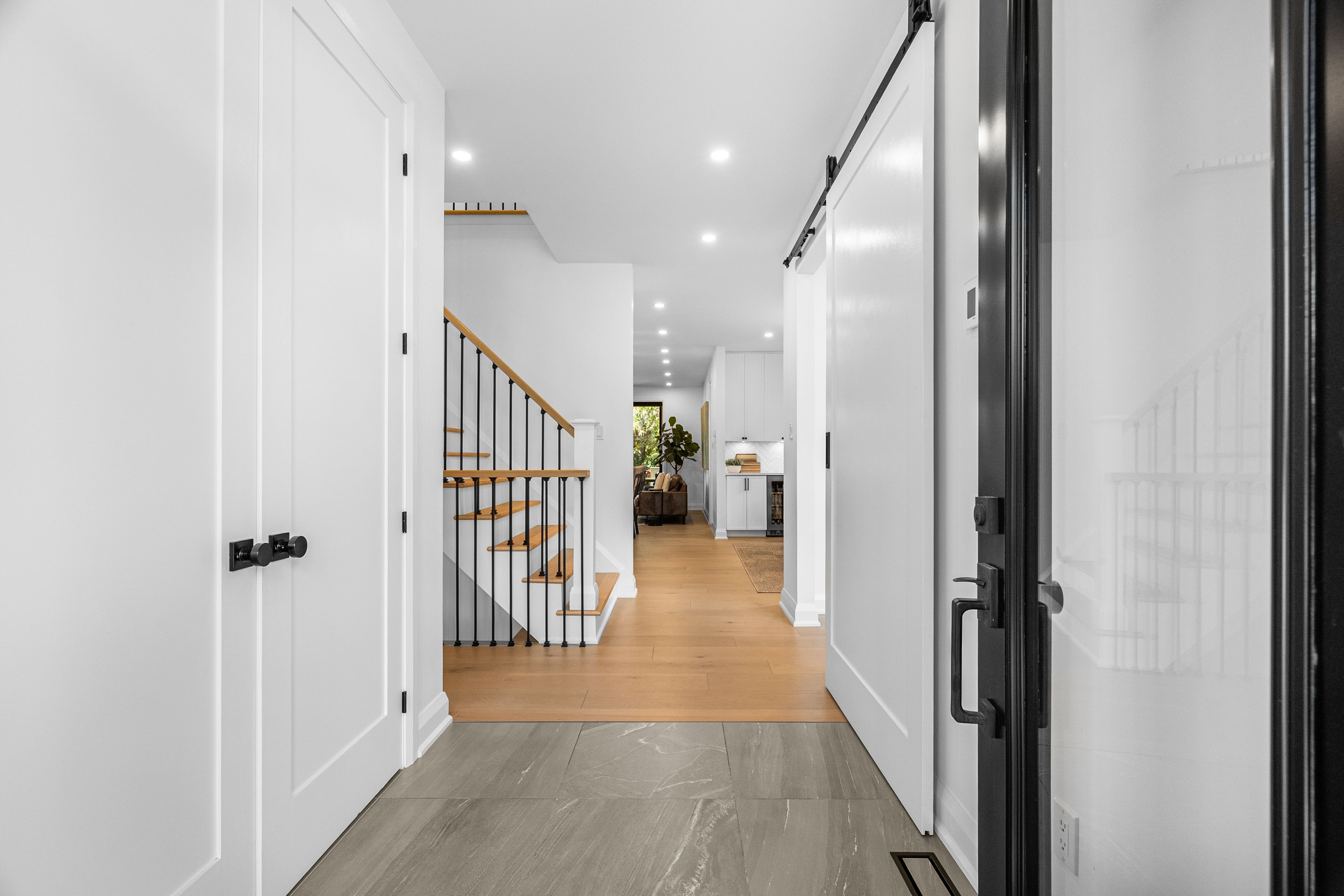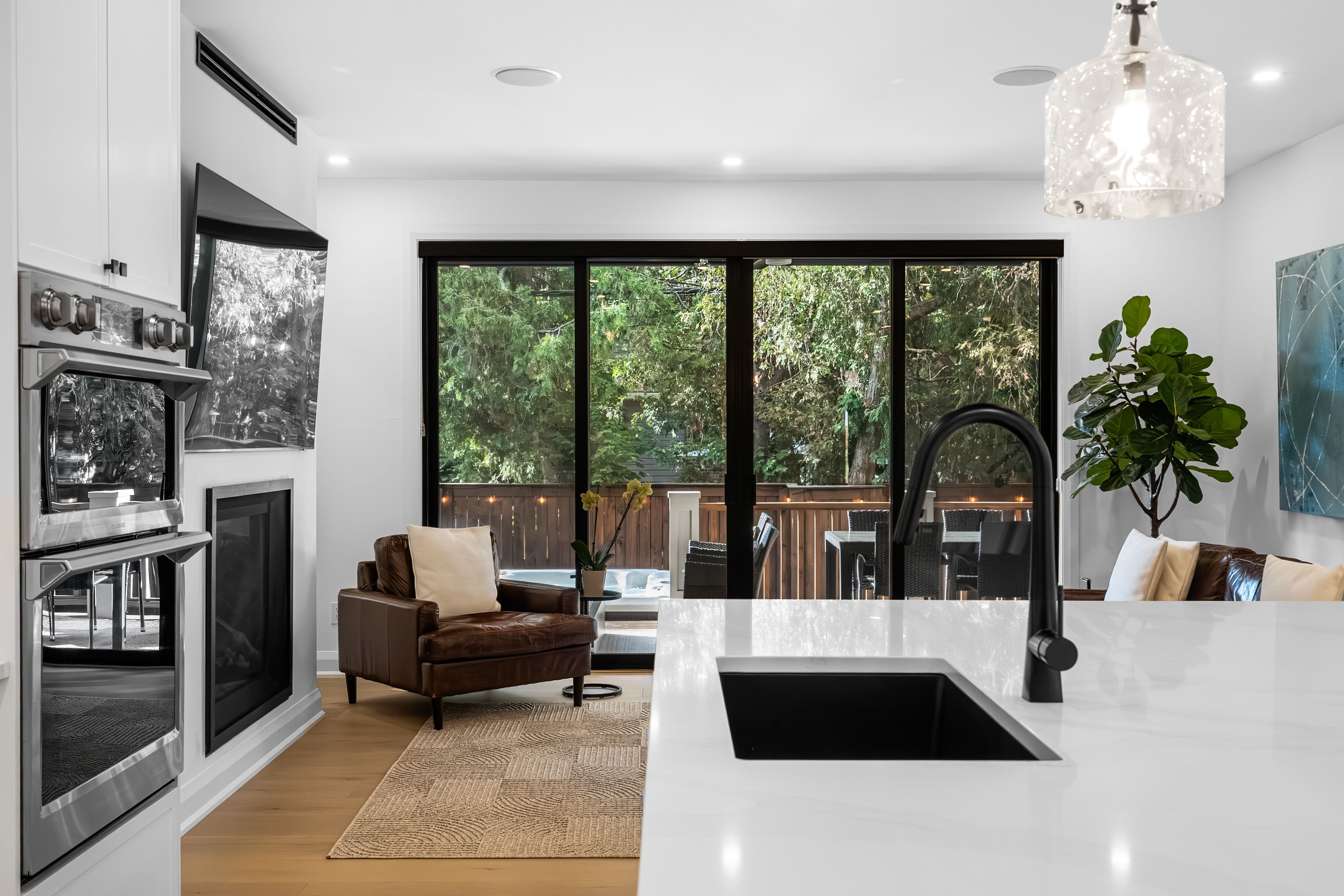 Step inside 123 mason terrace, where modern minimalism and warm scandinavian influences transform urban living into a daily retreat. Nine-foot ceilings and wide-plank white oak floors set the tone for a home that feels both expansive and grounded. The heart of the home - a custom brodie + brown kitchen - blends clean lines with thoughtful storage and premium samsung appliances, all tied together by a striking herringbone backsplash mirrored in the living room fireplace. Slide open the oversized patio doors and discover your private backyard oasis. A covered cedar deck with integrated speakers, pot lights, and solar shades for perfect summer evenings, leading to a maintenance-free yard and a luxurious hot tub under the stars. Upstairs, spa-inspired bathrooms invite you to unwind with heated floors, warm towel racks, and water closets that elevate daily rituals. Downstairs, a fully finished basement offers a flexible wellness retreat - complete with sauna, extra living space, and abundant storage. Finally a large single garage and parking for 5 vehicles and a mudroom with heated floors makes indoor to outdoor transitions effortless. Every detail at 123 mason terrace has been crafted for serene, sophisticated living - a place where quality whispers and tranquility reigns. Welcome home.