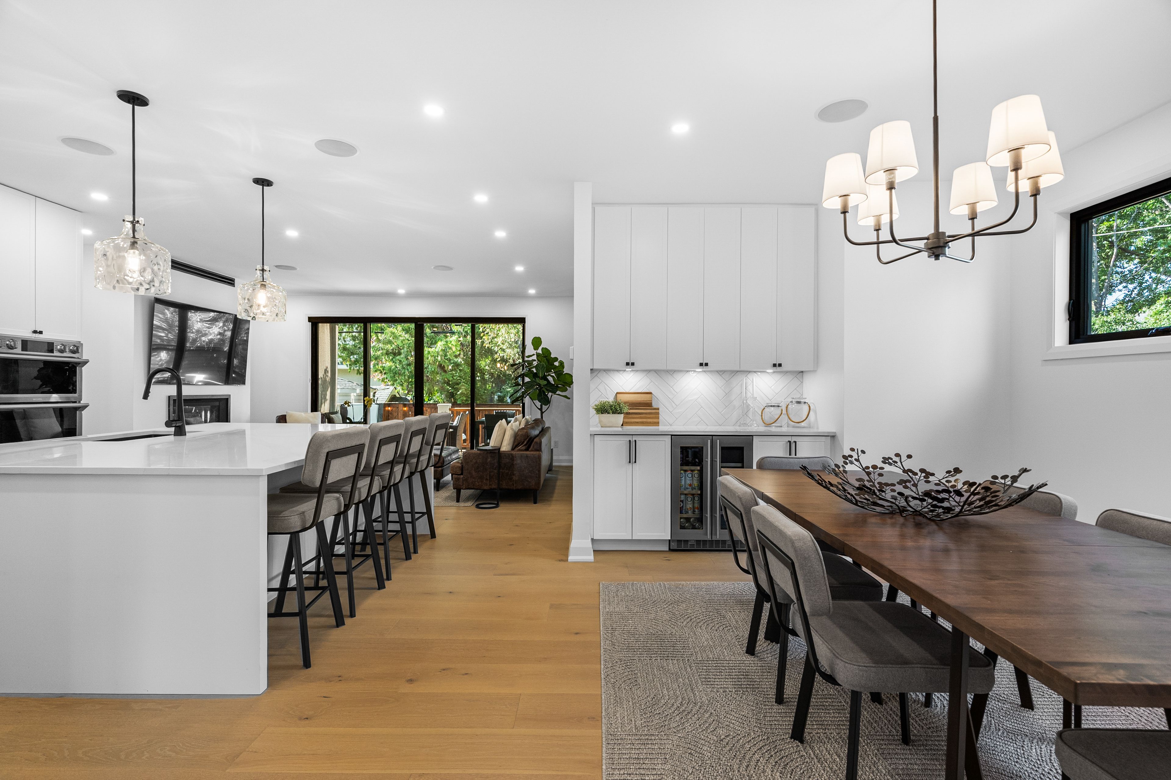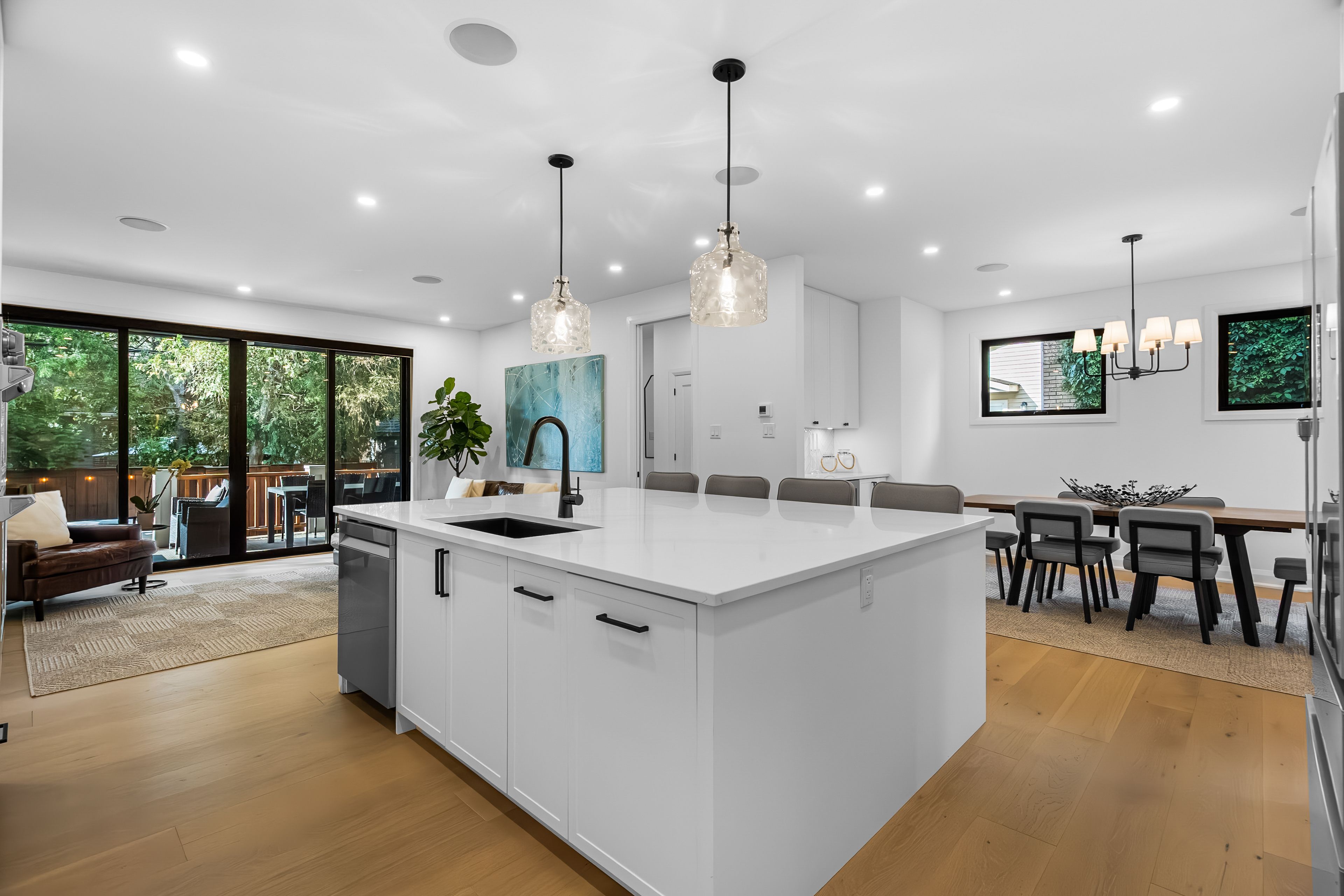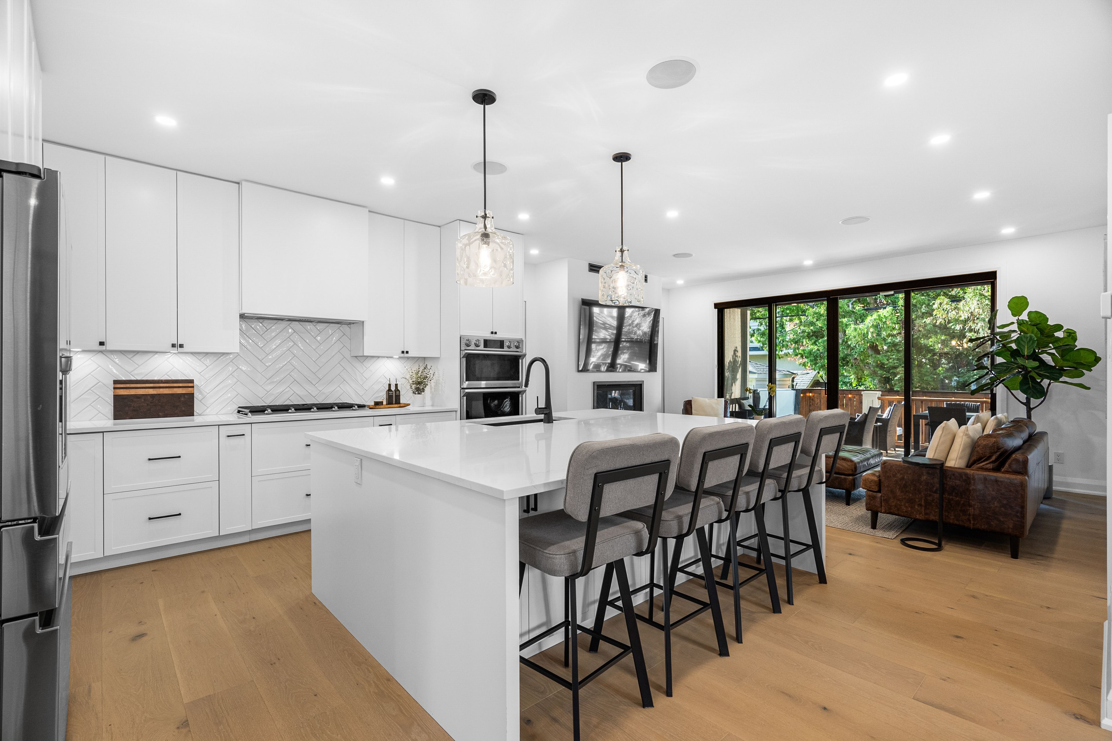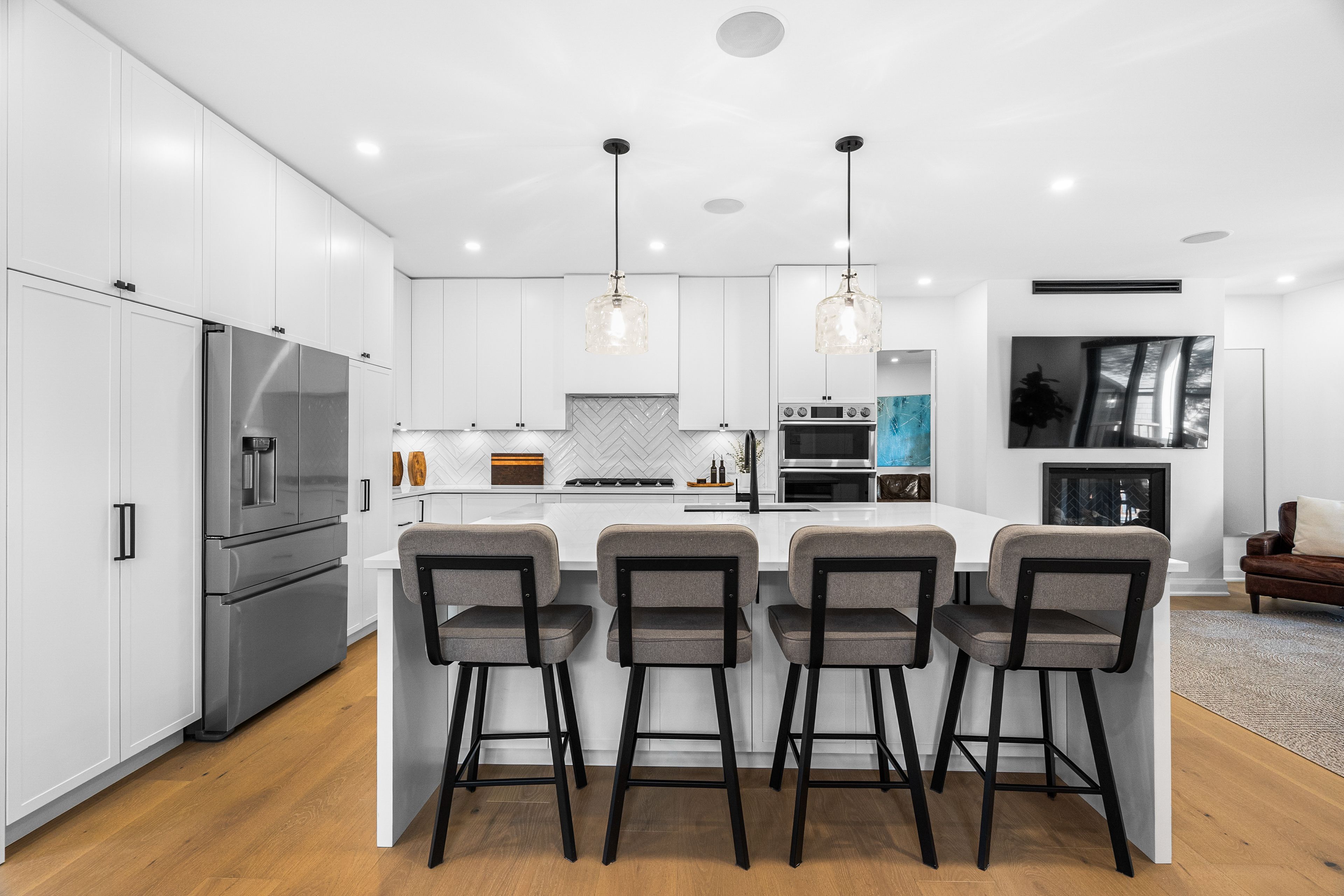 Step inside 123 mason terrace, where modern minimalism and warm scandinavian influences transform urban living into a daily retreat. Nine-foot ceilings and wide-plank white oak floors set the tone for a home that feels both expansive and grounded. The heart of the home - a custom brodie + brown kitchen - blends clean lines with thoughtful storage and premium samsung appliances, all tied together by a striking herringbone backsplash mirrored in the living room fireplace. Slide open the oversized patio doors and discover your private backyard oasis. A covered cedar deck with integrated speakers, pot lights, and solar shades for perfect summer evenings, leading to a maintenance-free yard and a luxurious hot tub under the stars. Upstairs, spa-inspired bathrooms invite you to unwind with heated floors, warm towel racks, and water closets that elevate daily rituals. Downstairs, a fully finished basement offers a flexible wellness retreat - complete with sauna, extra living space, and abundant storage. Finally a large single garage and parking for 5 vehicles and a mudroom with heated floors makes indoor to outdoor transitions effortless. Every detail at 123 mason terrace has been crafted for serene, sophisticated living - a place where quality whispers and tranquility reigns. Welcome home.