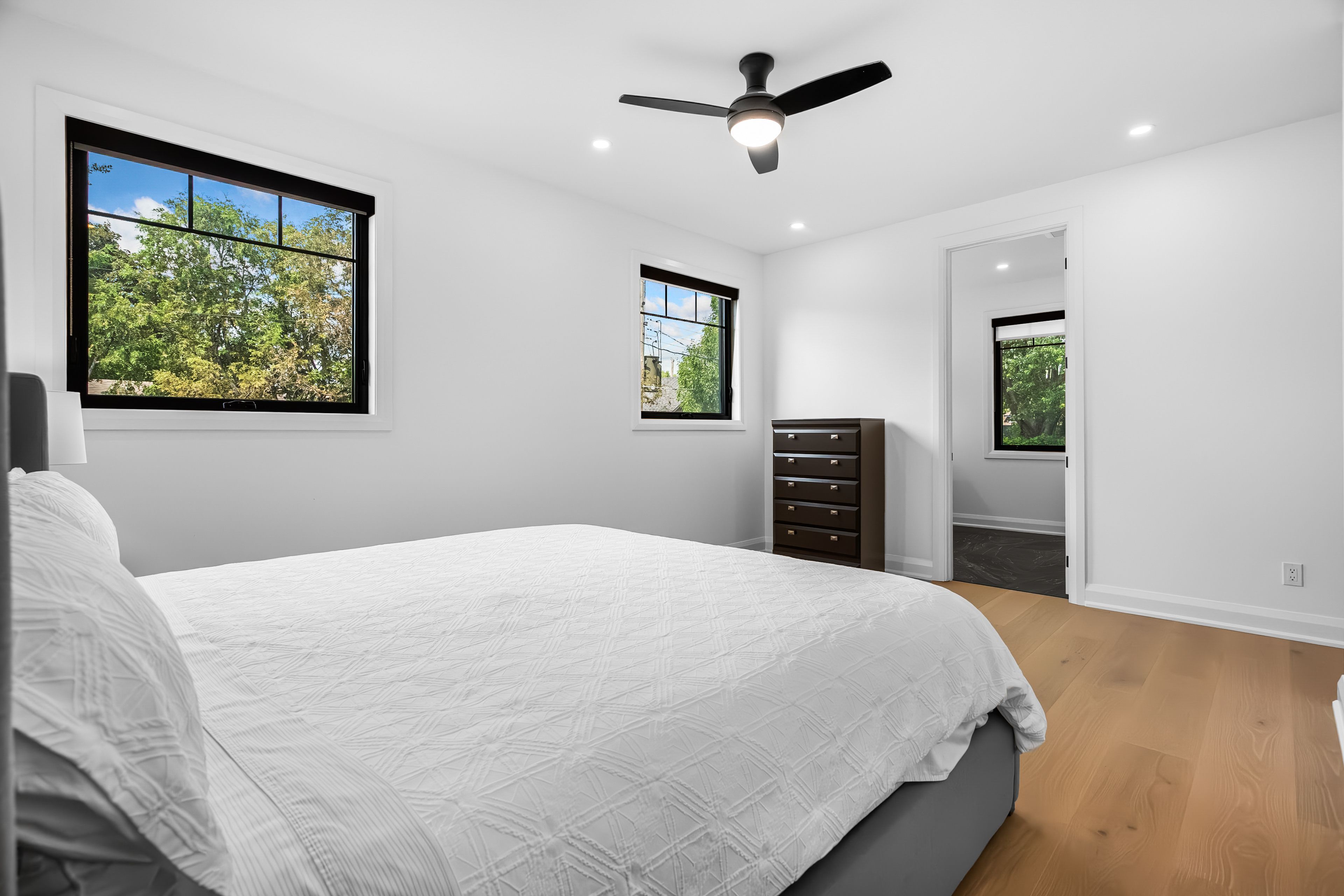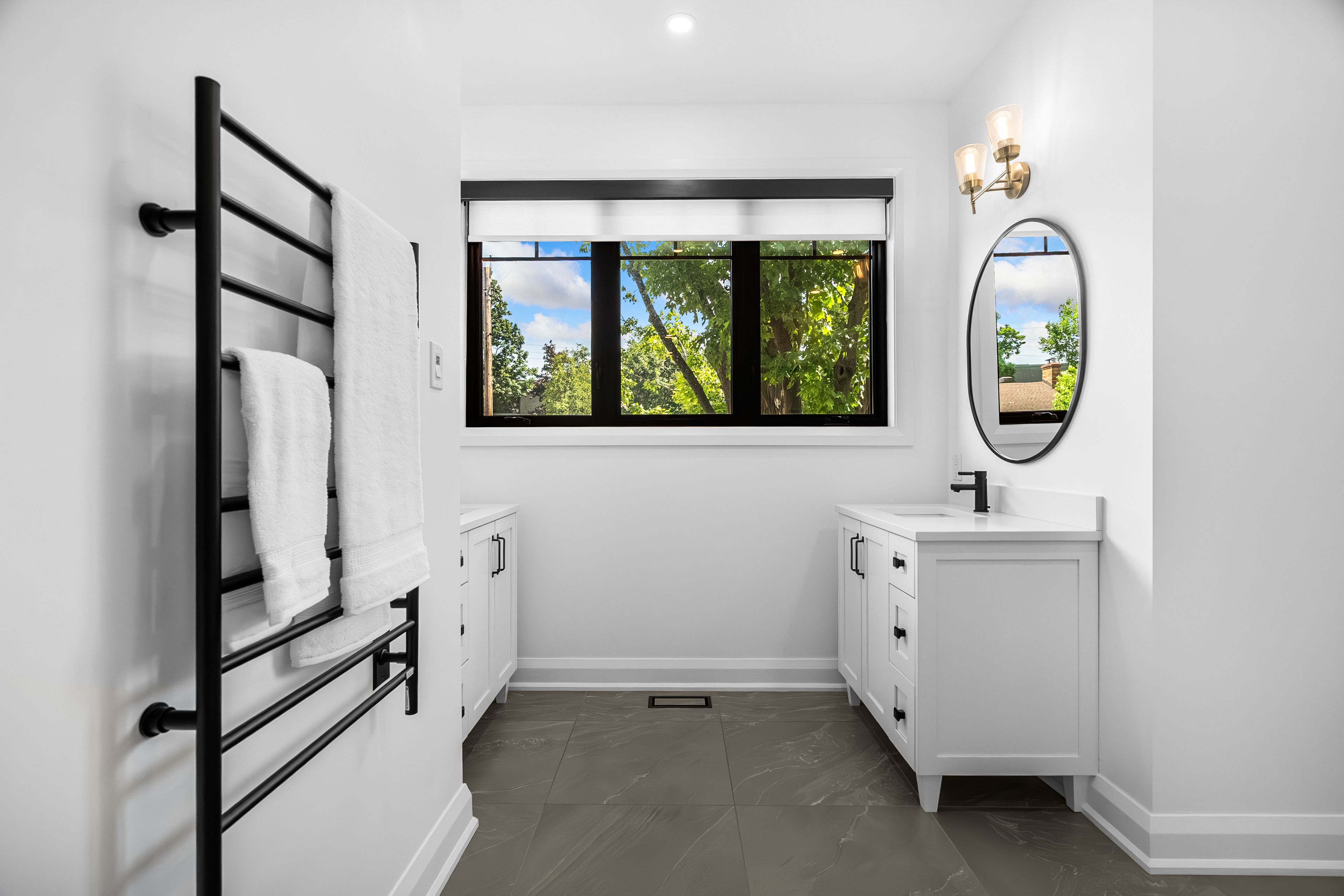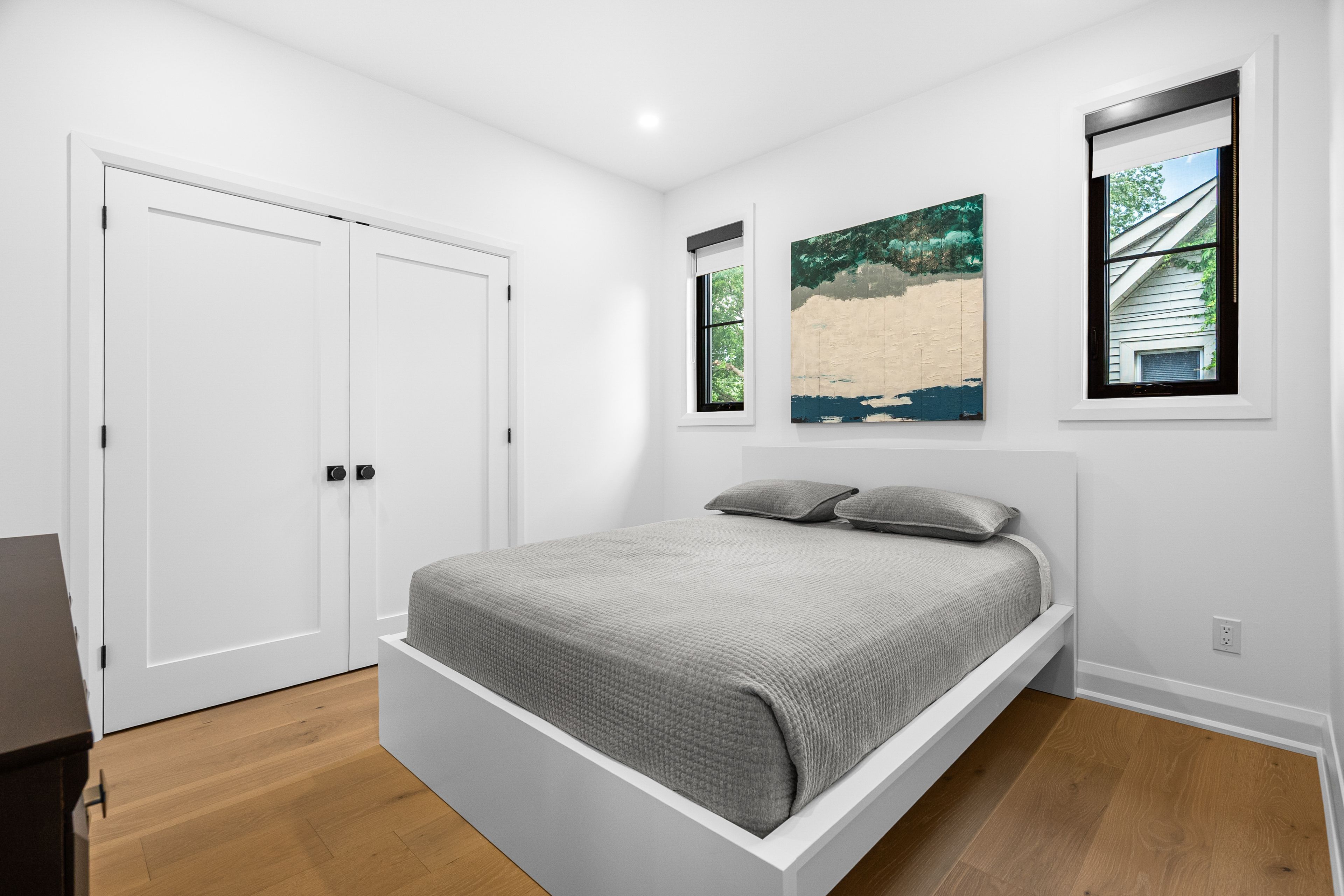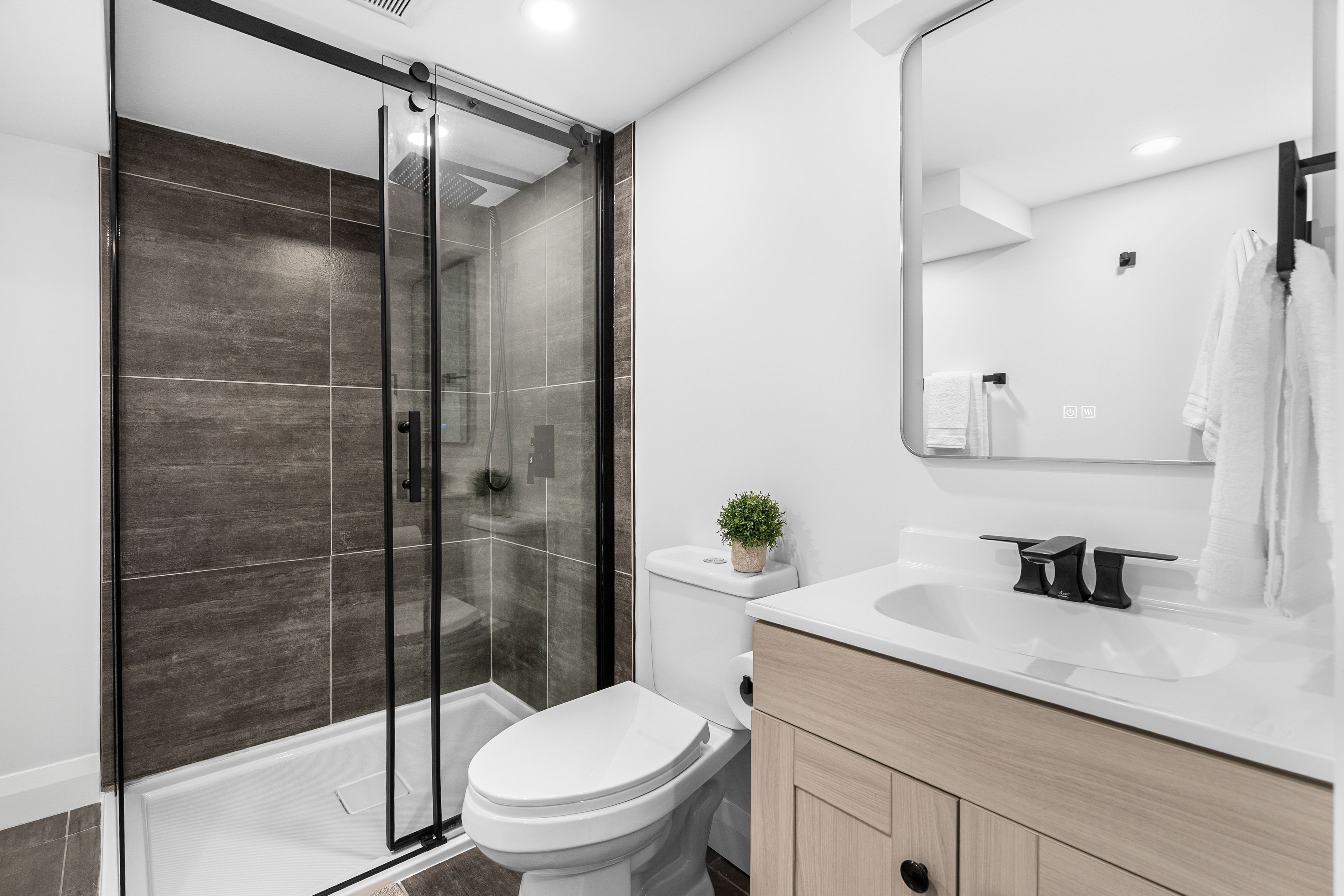 Step inside 123 mason terrace, where modern minimalism and warm scandinavian influences transform urban living into a daily retreat. Nine-foot ceilings and wide-plank white oak floors set the tone for a home that feels both expansive and grounded. The heart of the home - a custom brodie + brown kitchen - blends clean lines with thoughtful storage and premium samsung appliances, all tied together by a striking herringbone backsplash mirrored in the living room fireplace. Slide open the oversized patio doors and discover your private backyard oasis. A covered cedar deck with integrated speakers, pot lights, and solar shades for perfect summer evenings, leading to a maintenance-free yard and a luxurious hot tub under the stars. Upstairs, spa-inspired bathrooms invite you to unwind with heated floors, warm towel racks, and water closets that elevate daily rituals. Downstairs, a fully finished basement offers a flexible wellness retreat - complete with sauna, extra living space, and abundant storage. Finally a large single garage and parking for 5 vehicles and a mudroom with heated floors makes indoor to outdoor transitions effortless. Every detail at 123 mason terrace has been crafted for serene, sophisticated living - a place where quality whispers and tranquility reigns. Welcome home.