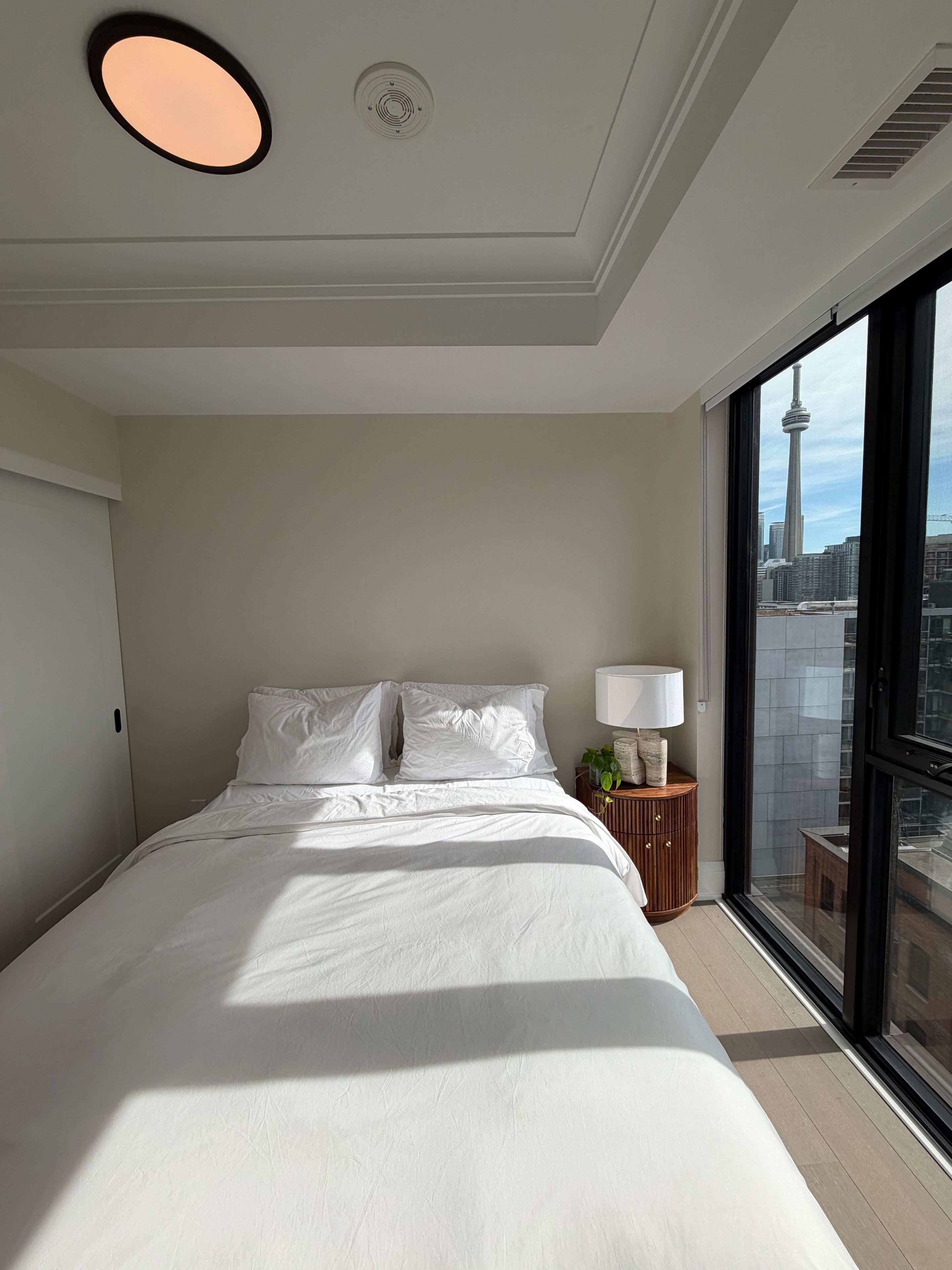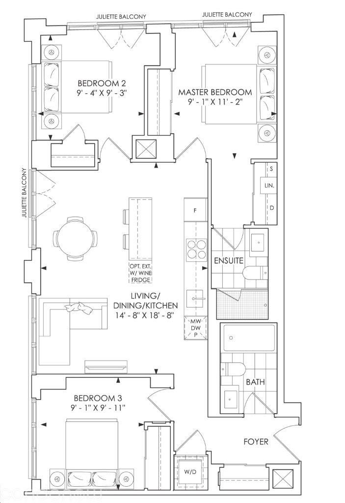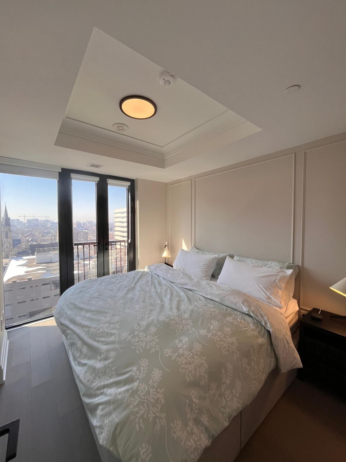Experience refined urban luxury living at 123 portland, a parisian-inspired boutique residence by mintos in the heart of the king west fashion district. This exquisitely furnished 3-bedroom, 2-bathroom corner suite showcases 9-foot ceilings, wide-plank hardwood flooring, custom lighting, and thoughtfully curated designer finishes throughout. The chef-inspired kitchen is anchored by an oversized island and integrated miele appliances, seamlessly flowing into a bright open-concept living and dining space with captivating city views from three separate juliette balconies. The primary suite offers three custom built-in closets and a private 3-piece ensuite, creating a serene and functional retreat. Enjoy smart home technology with digital entry and thermostat control, just steps from the premier dining, shopping, and vibrant nightlife along king street west.