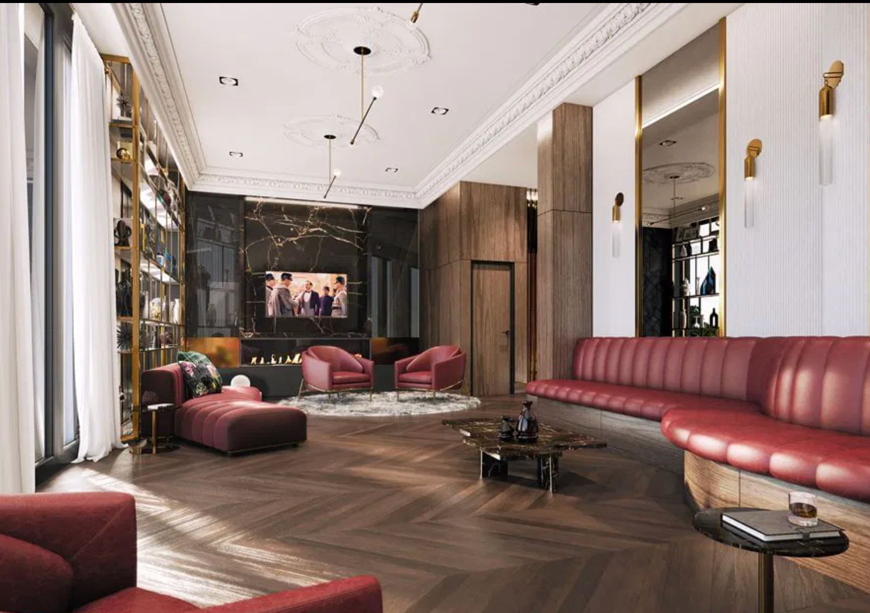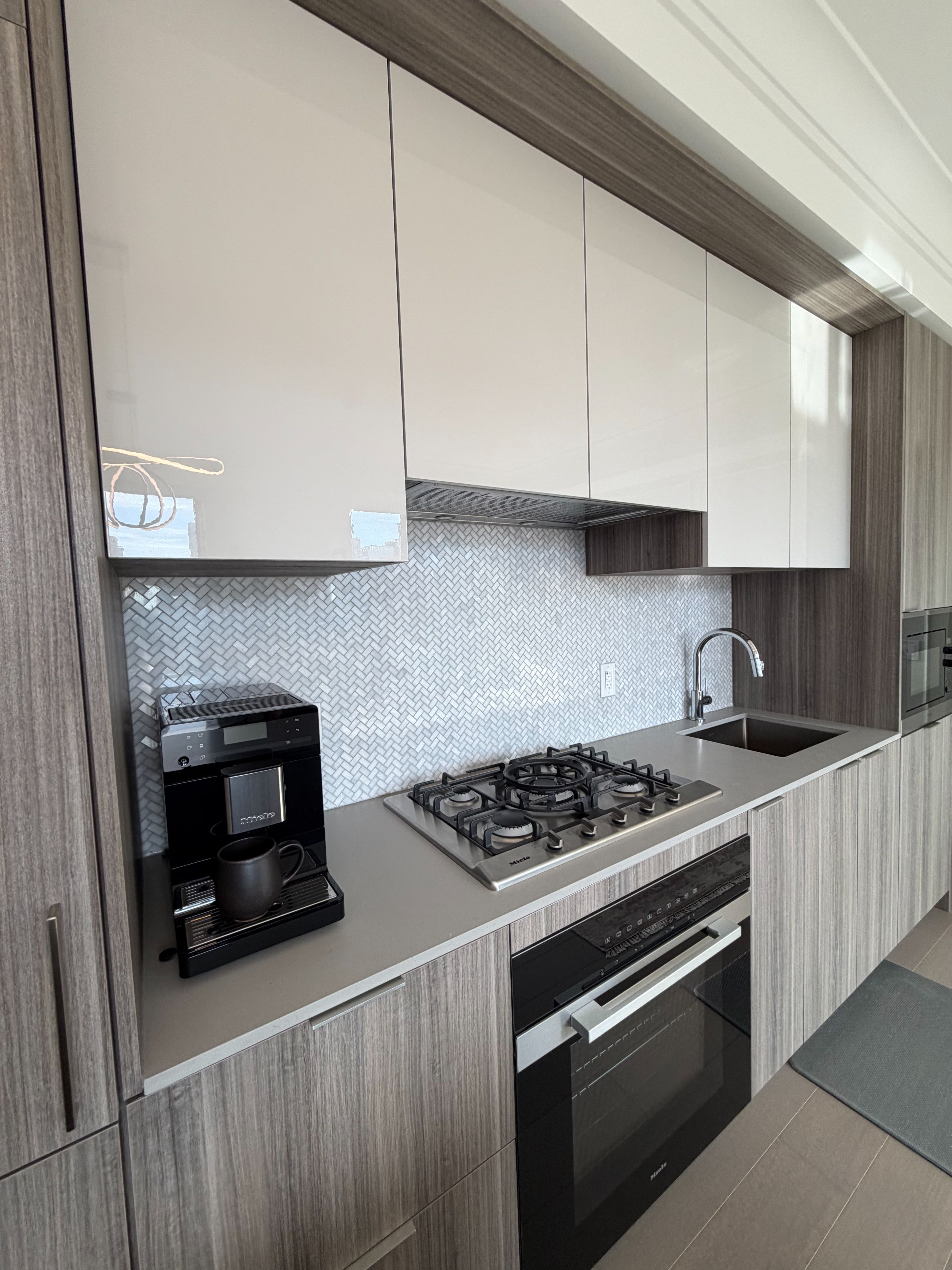 • Chef-inspired kitchen with oversized island and integrated Miele appliances.