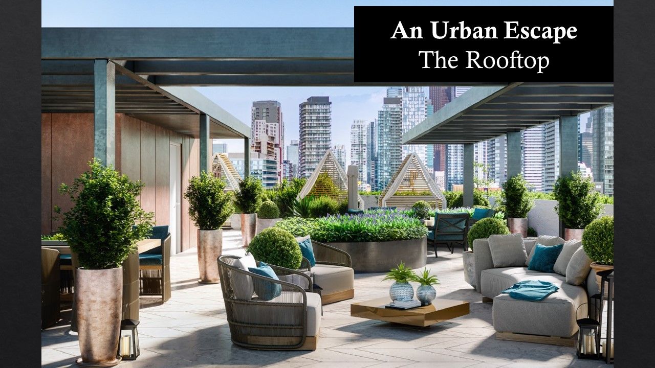 • Rooftop terrace featuring city views, greenery, fire-pits, and yoga space.