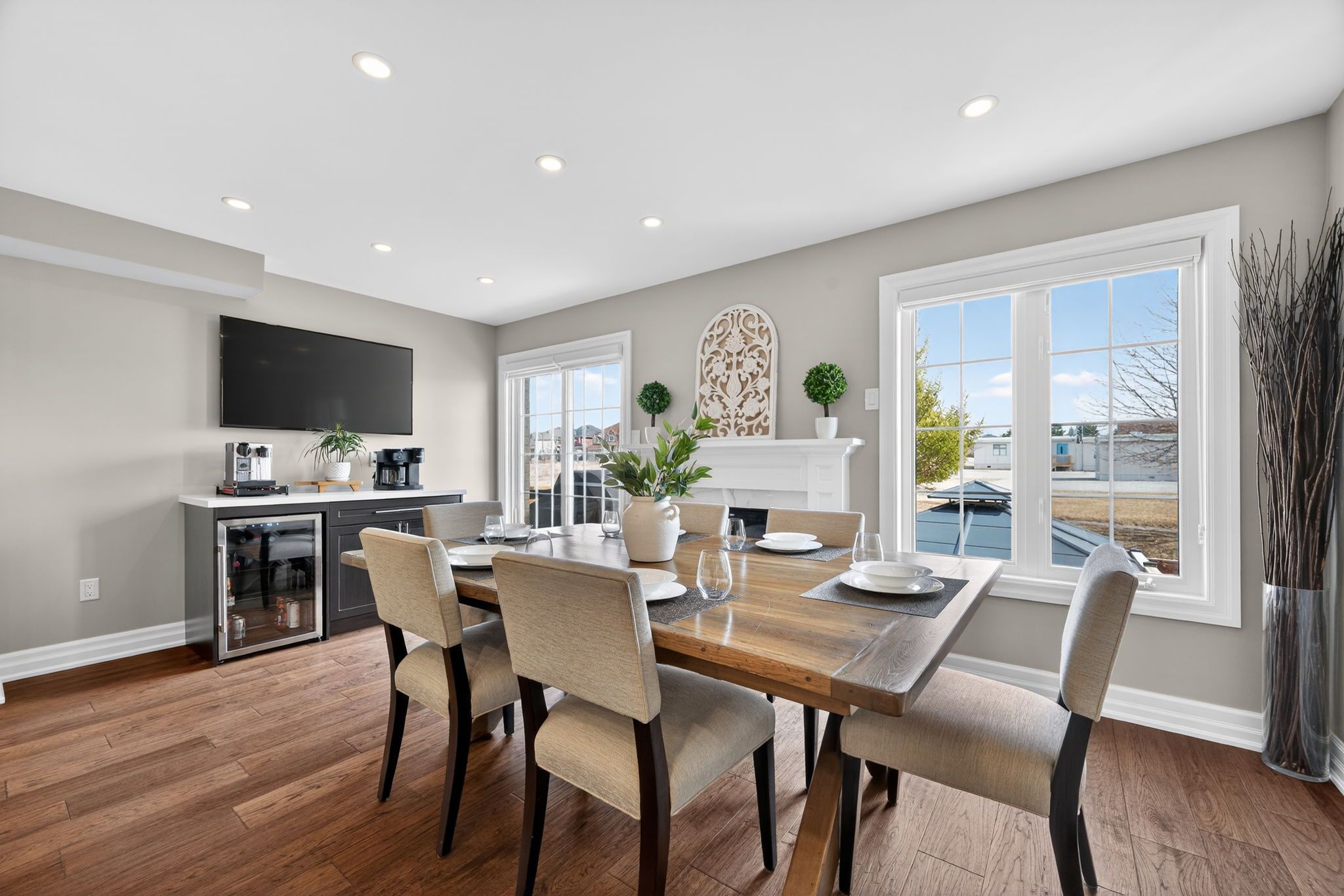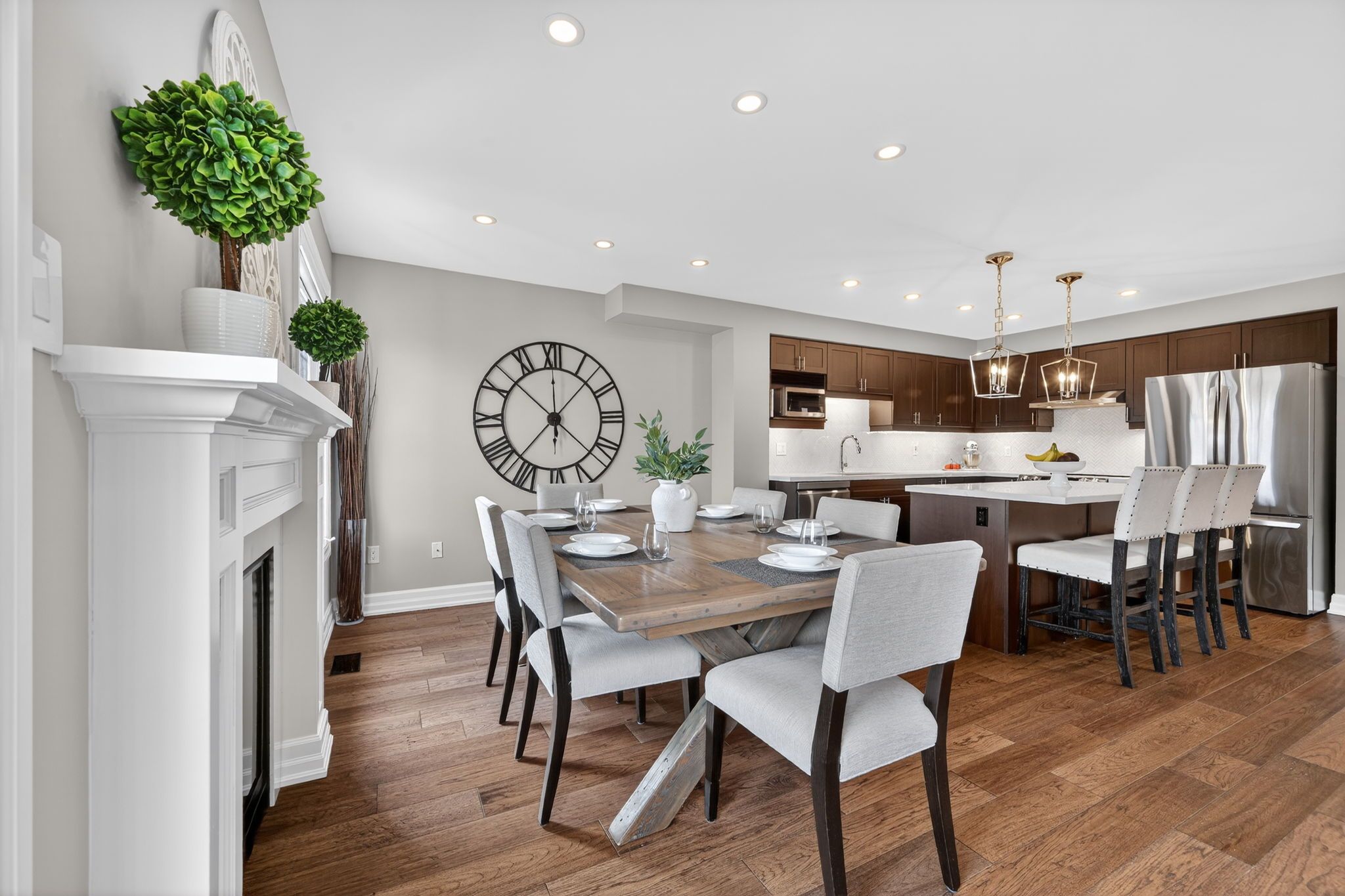Step inside this beautifully renovated home where timeless finishes meet modern comfort. The main level showcases rich 6 3/4" engineered hardwood floors and freshly updated 5 1/2" trim that sets a welcoming tone throughout. The stylish open concept kitchen is a true highlight of the home featuring sleek quartz countertops, stainless steel appliances, a dedicated coffee bar with a built-in wine fridge, and seamless access to the backyard, making it perfect for entertaining or relaxing mornings. Upstairs, you'll find the engineered hardwood floors carrying through four carpet free bedrooms, including a stunning primary suite complete with two walk-in closets and a 4-piece ensuite. Downstairs, the newly finished basement (2025) awaits you. The basement showcases a large rec room, a den with water access (currently used as an at home salon) and another 2-pc bathroom. Outside, enjoy a fully hardscaped backyard designed for low maintenance living, complete with a charming gazebo and the added privacy of backing onto a school. This move-in-ready home blends elegance, practicality, and comfort in one exceptional package.
