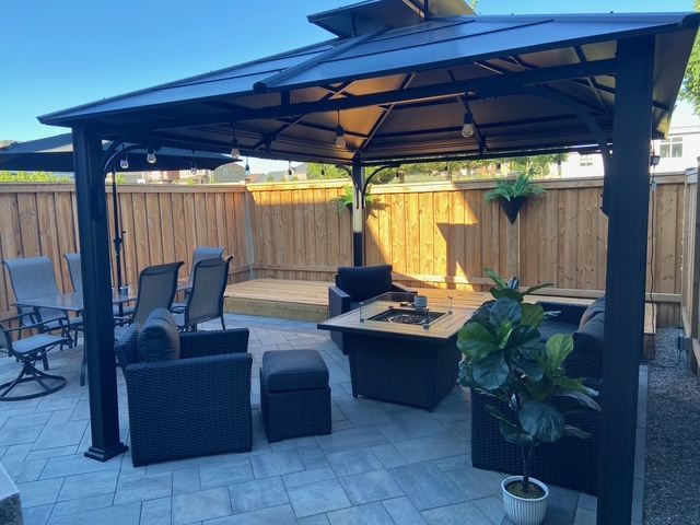 • Low maintenance hardscaped backyard featuring a gazebo and privacy from the school.