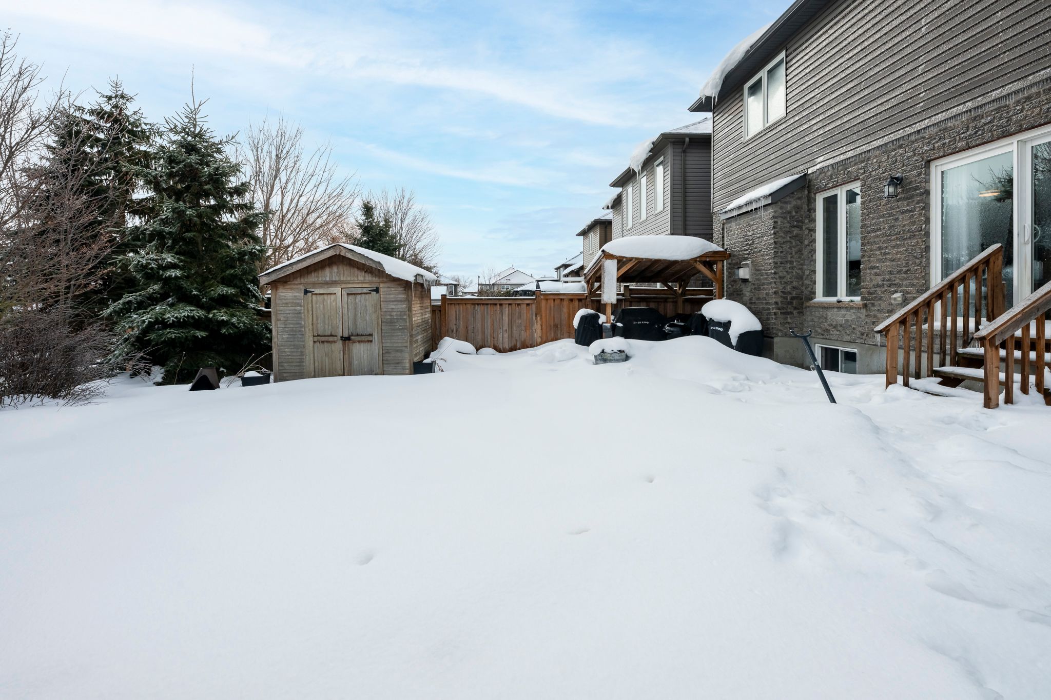 Welcome to 123 taylor drive in grand valley, a detached thomasfield built home in the mayberry hill community. You get a quiet, family friendly street, a 40 foot lot, a two car garage, and a private fully fenced backyard framed by mature trees. With a gazebo and shed already in place, the yard is ready for summer dinners with family, friends, and dogs... Or weekend projects. Inside, you have 2,181 square feet (per mpac) above grade and a layout that keeps life simple. Large windows bring in natural light, the living room centres around a gas fireplace, and the kitchen offers stainless steel appliances, plenty of counter space, a large pantry, and generous cabinet storage. Main-floor laundry and direct access to the garage make day-to-day routines easier. Upstairs, three bedrooms plus a skylit den or flex space fit first-time buyers, growing families, and downsizers who still want room for work or guests. The primary suite includes two walk-in closets and a five-piece ensuite with double vanities, a spacious walk-in shower, and a soaker tub. Downstairs, the basement stays open and unfinished, ready for your plans, whether that's a rec room, home gym, extra bedroom, or a play space. You also get a bathroom rough-in and a cold room, so the practical pieces are already in place. Grand valley offers small-town living, with multiple parks and trails nearby for a quick hike, plus countryside routes for longer rides and snowmobiling in-season. You also stay within easy reach of orangeville, fergus, and the gta for commuting and bigger city errands.