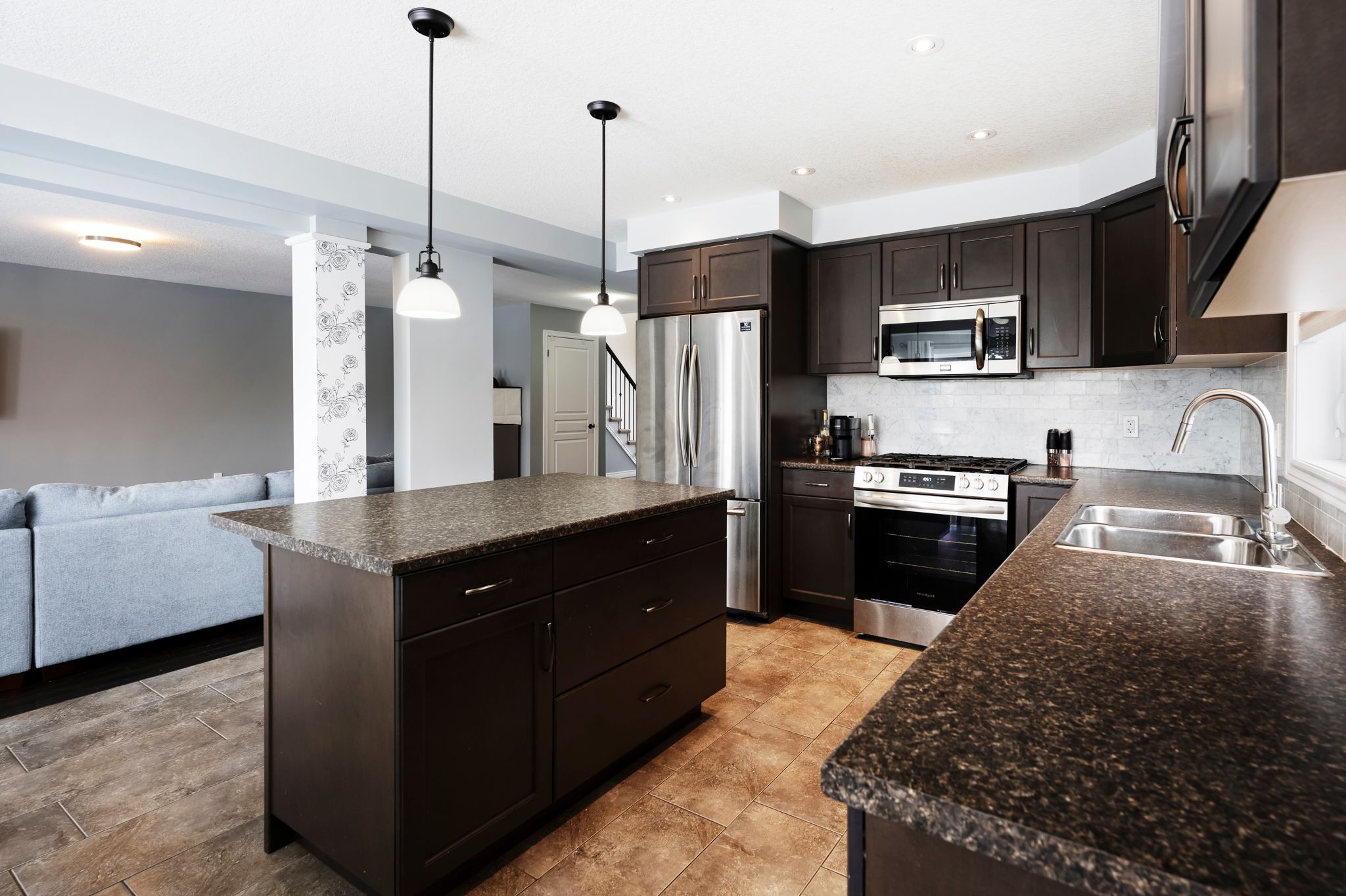 • Well-appointed kitchen with stainless steel appliances and ample storage.