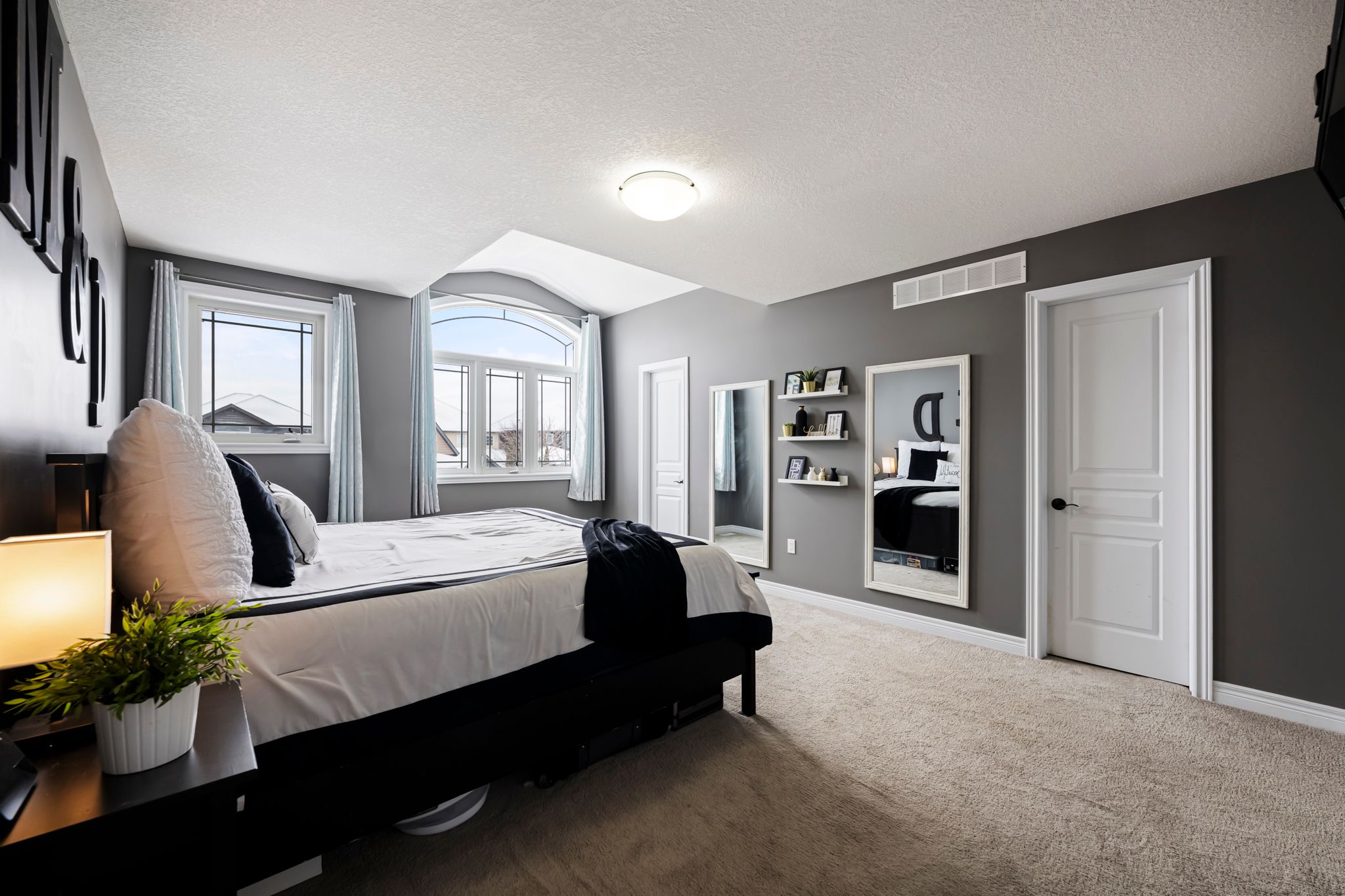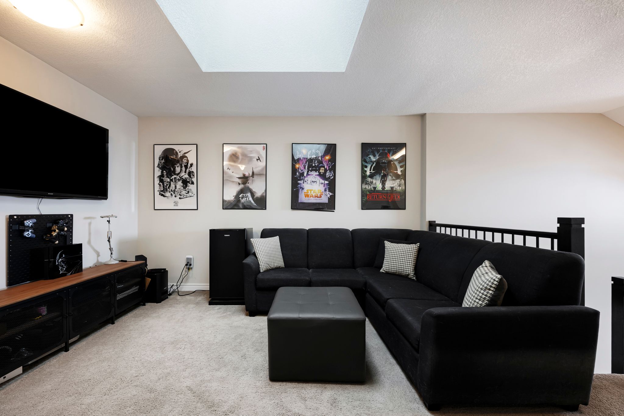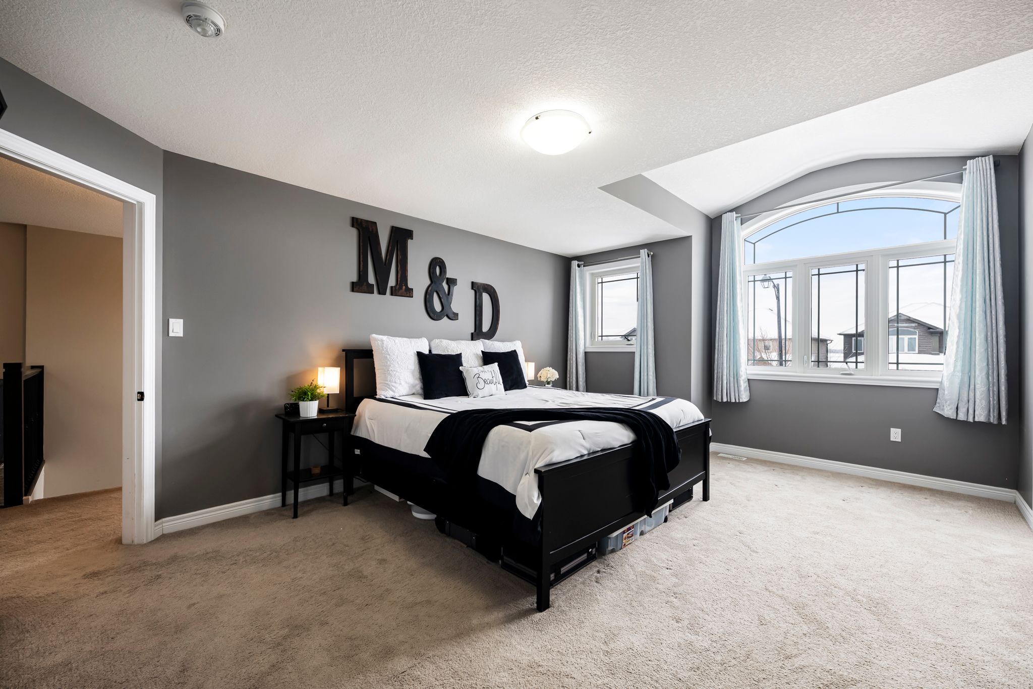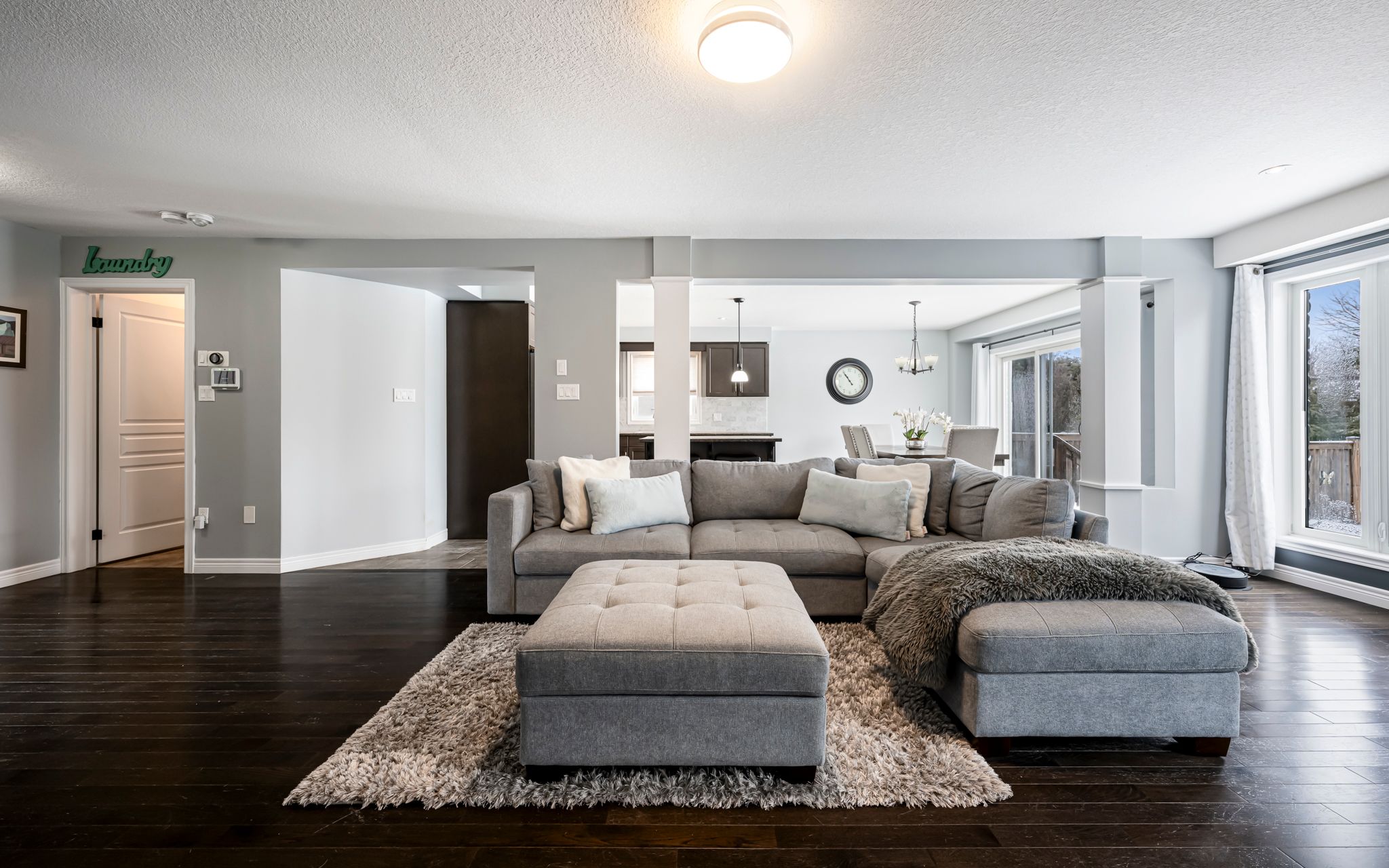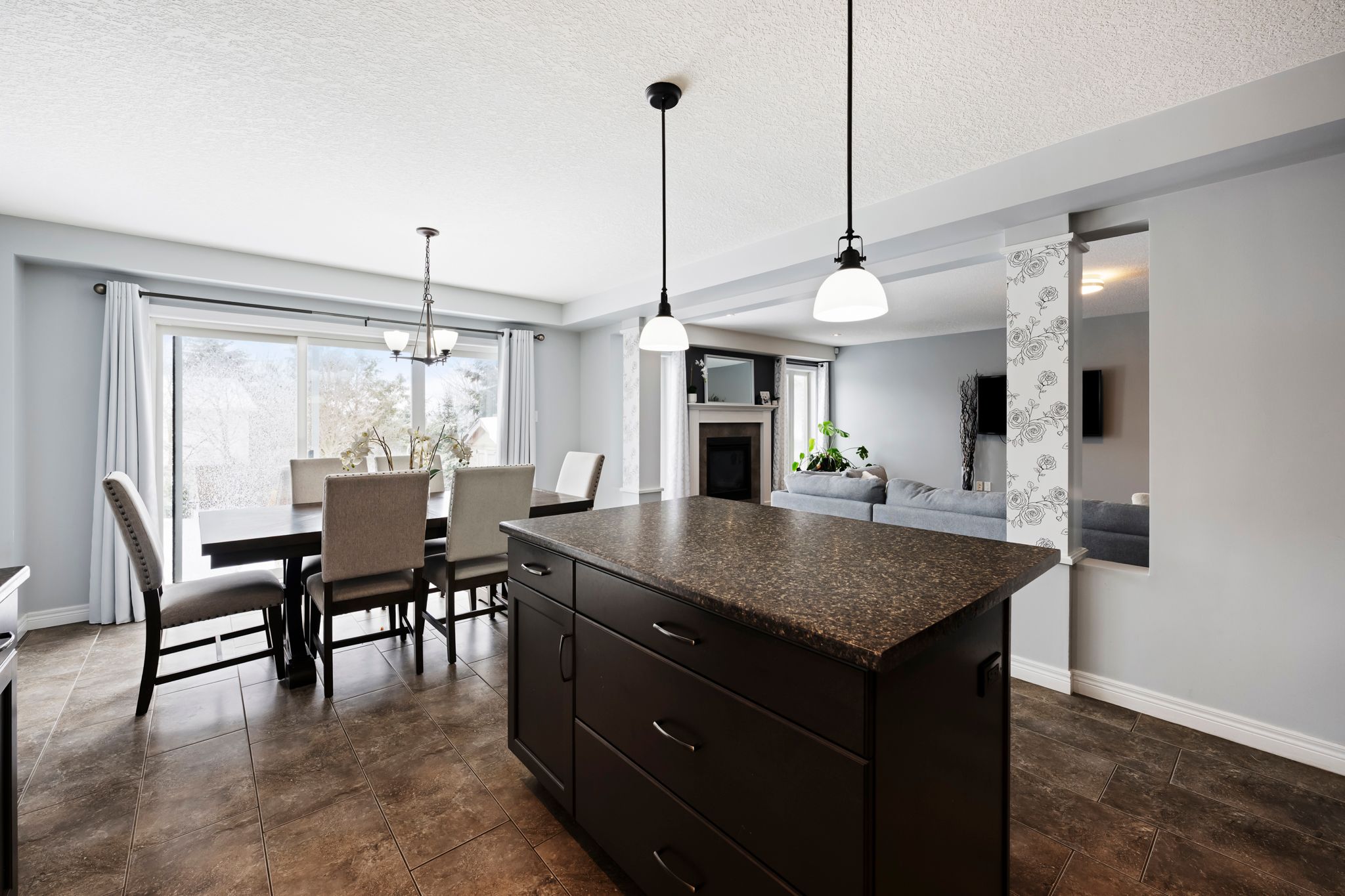 • Spacious layout with large windows and cozy gas fireplace for natural light.