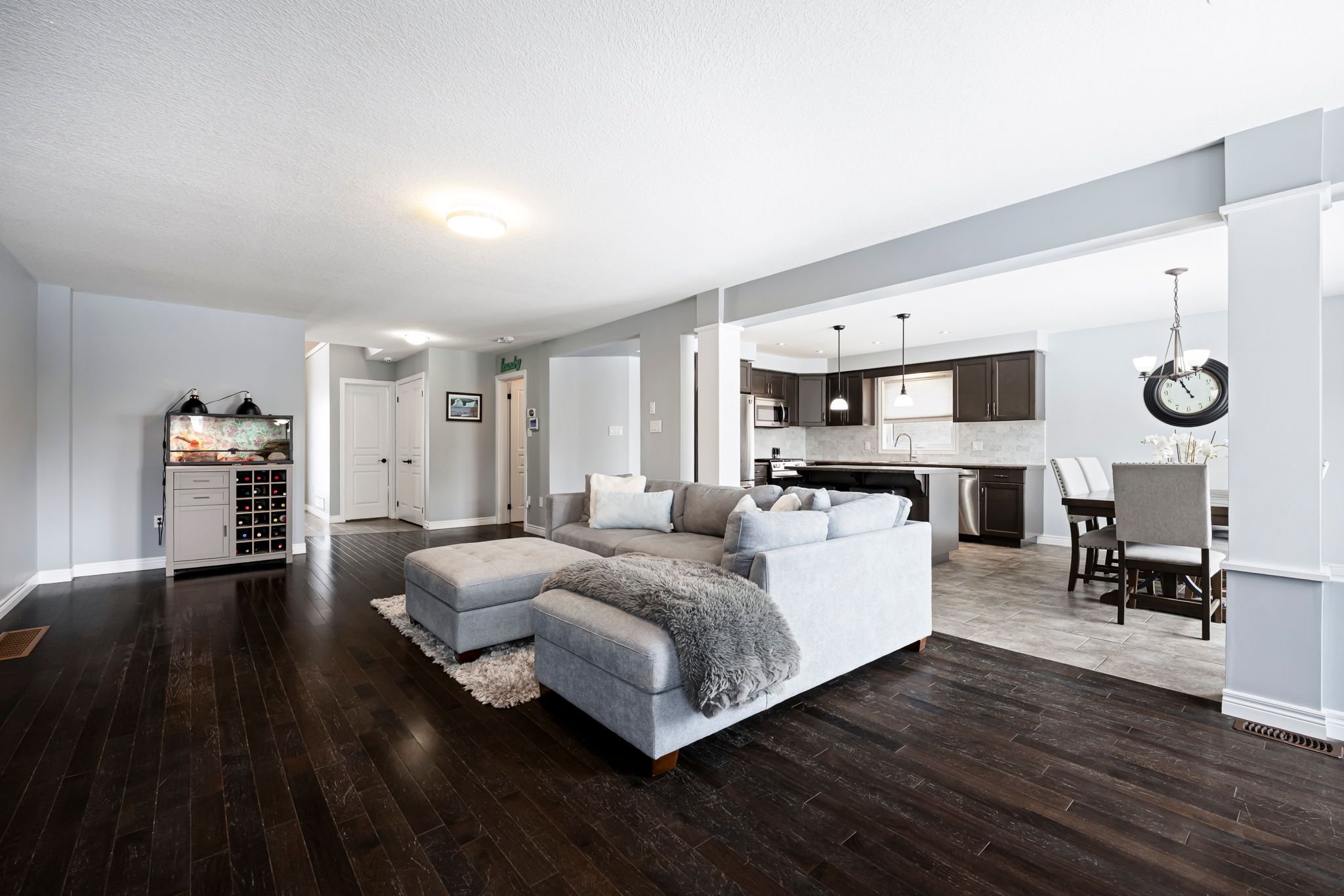 Welcome to 123 taylor drive in grand valley, ontario, a detached thomasfield-built home in the mayberry hill community. Set on a quiet, family-friendly street, this 3-bedroom home sits on a 40-foot lot with a two-car garage and a private, fully fenced backyard that stands out for its mature trees and more secluded feel. With a gazebo and shed already in place, the outdoor space is ready for summer dinners, kids, dogs, weekend projects, or simply enjoying a backyard that feels more established than the typical newer subdivision lot. Inside, you have 2,181 square feet above grade as per mpac and a layout that works well for everyday living. Large windows bring in natural light, dark hardwood adds warmth to the main living area, and the living room centres around a gas fireplace. The kitchen offers stainless steel appliances, plenty of counter space, a large pantry, and generous cabinet storage. Main floor laundry and direct access to the garage make daily routines easier. Upstairs, three bedrooms plus a skylit den or flex space give you options for a home office, kids' zone, reading area, or play space. The primary suite includes two walk-in closets and a five-piece ensuite with double vanities, a spacious walk-in shower, and a soaker tub. Downstairs, the basement stays open and unfinished, giving you a clean blank canvas for a rec room, home gym, extra bedroom, or additional family space. A bathroom rough-in and cold room add useful function from the start. Living in grand valley means you get small-town ontario living with multiple parks and trails nearby, easy access to outdoor recreation, and convenient reach to orangeville, fergus, and the gta for commuting and day-to-day errands.